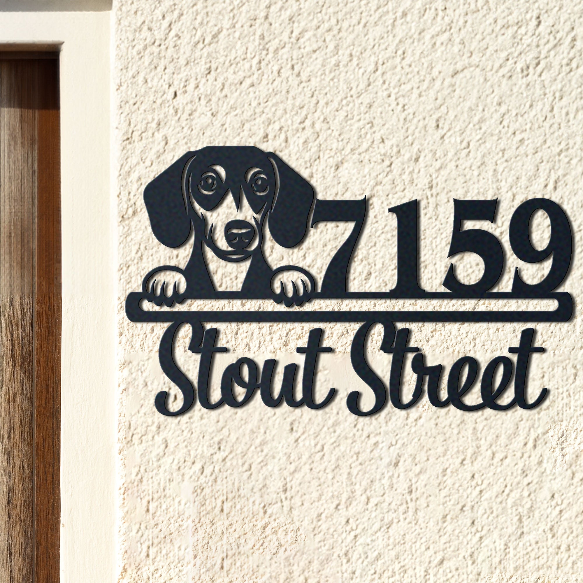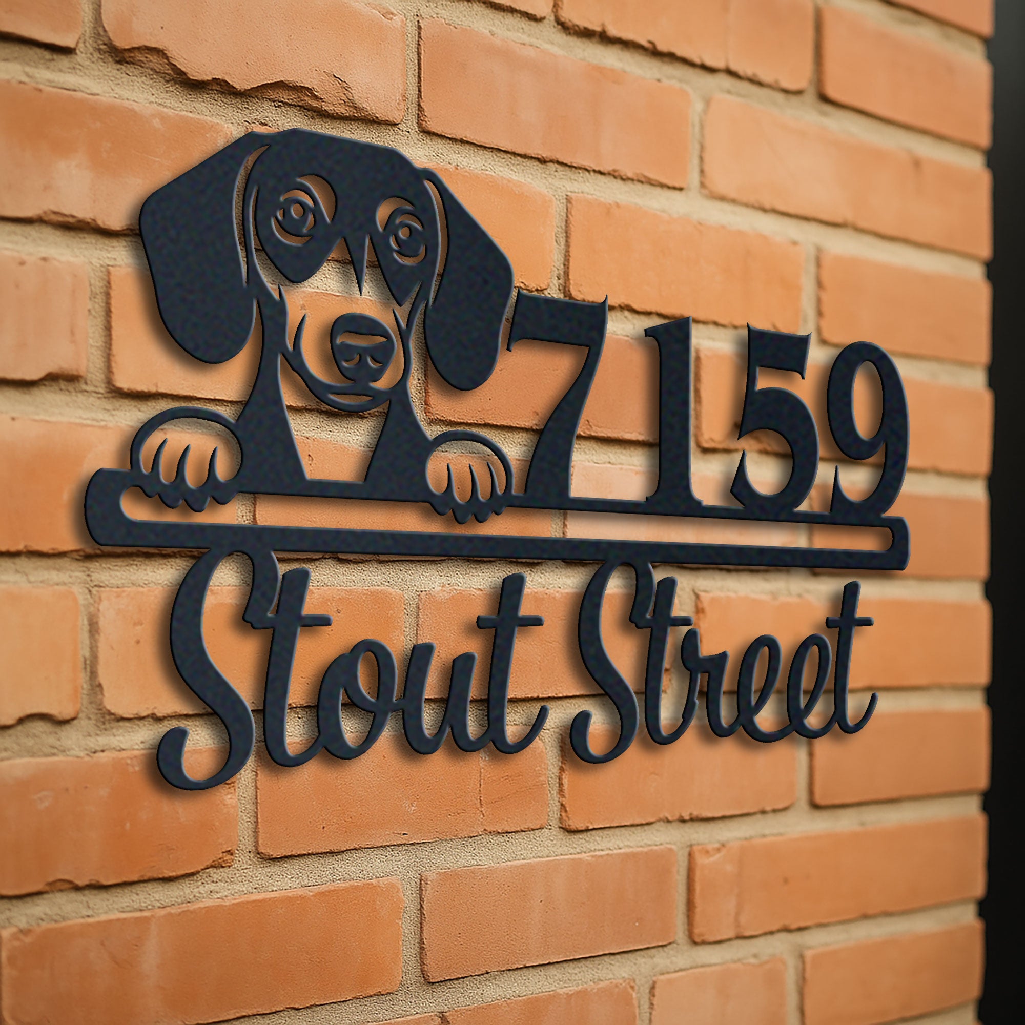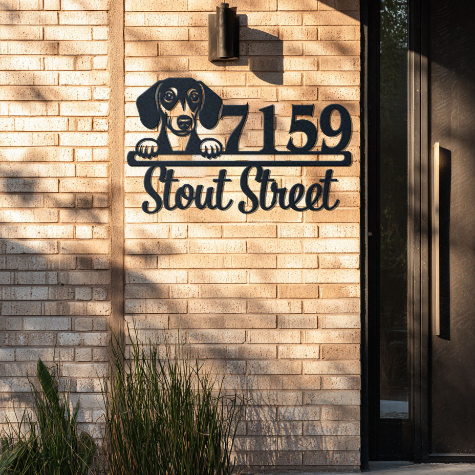Dachshund Address Sign | Personalized Metal House Number Plaque | Dog Lover Gift | Outdoor Decor