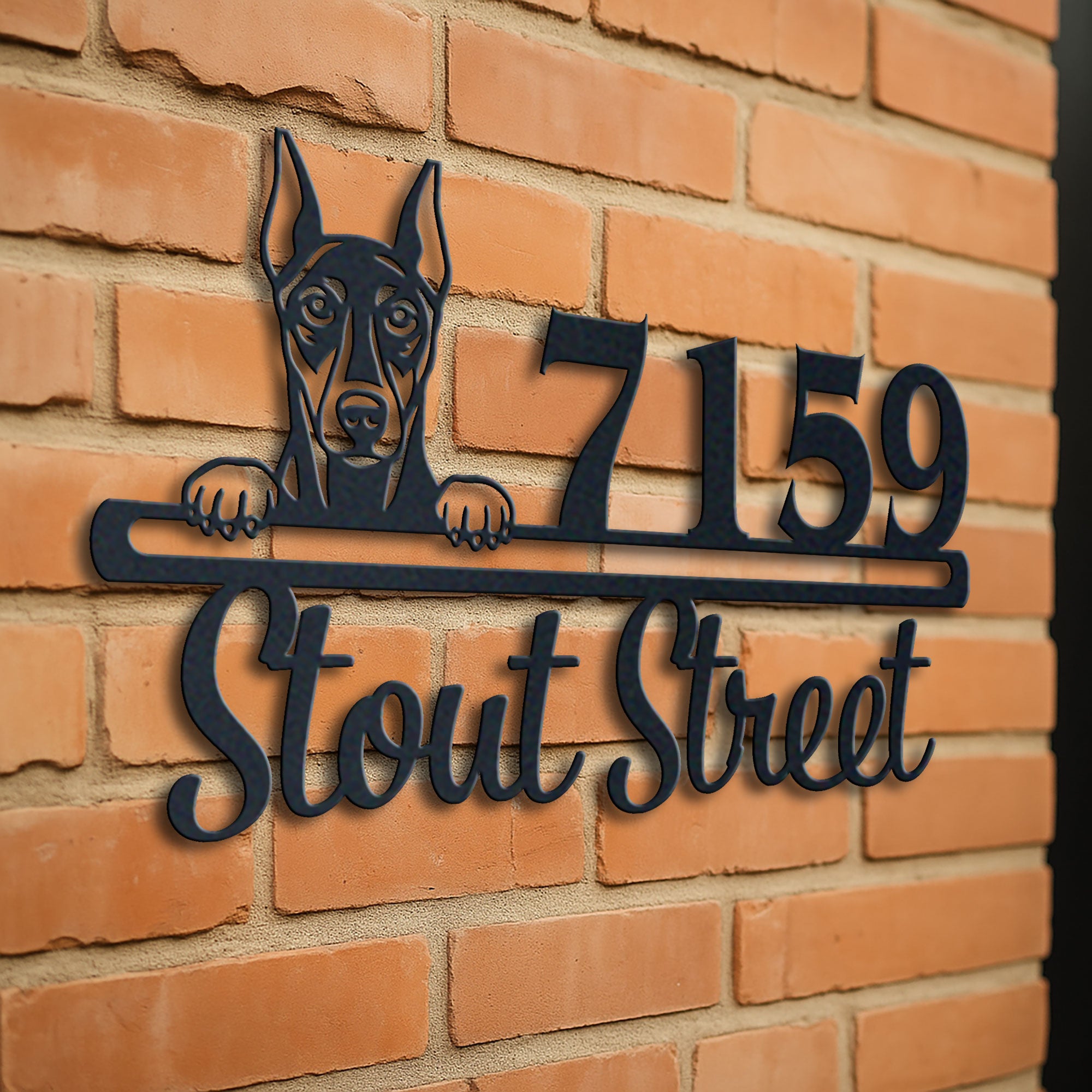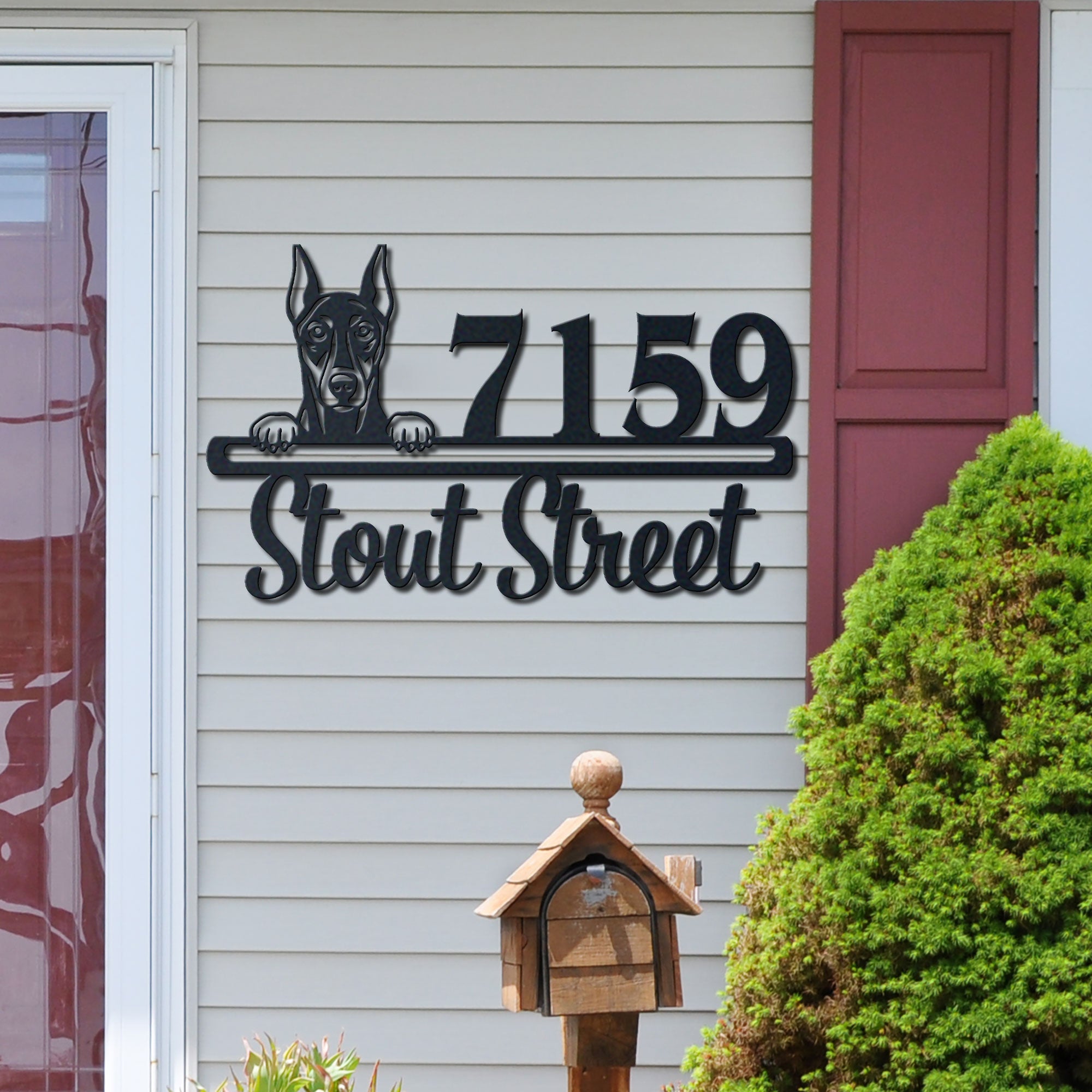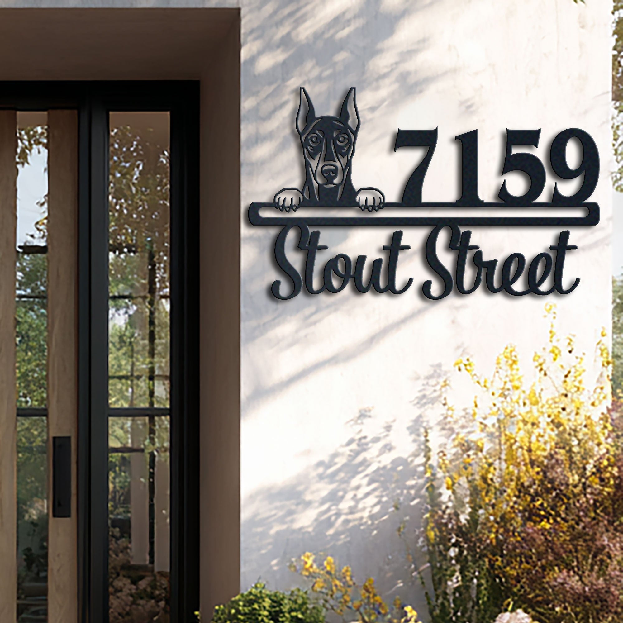 Doberman Pinscher Address Sign | Personalized Metal House Number Plaque | Dog Lover Gift | Outdoor Decor