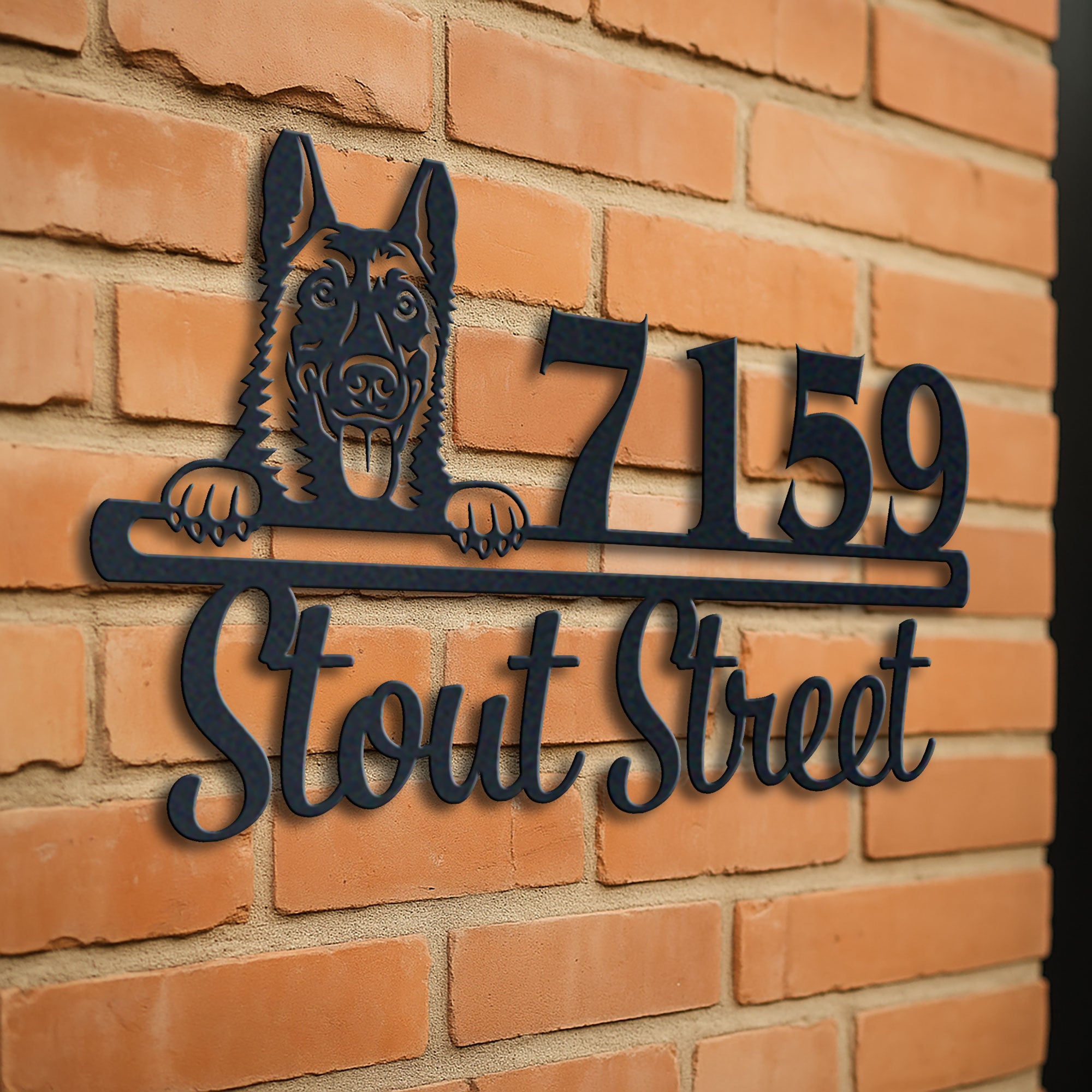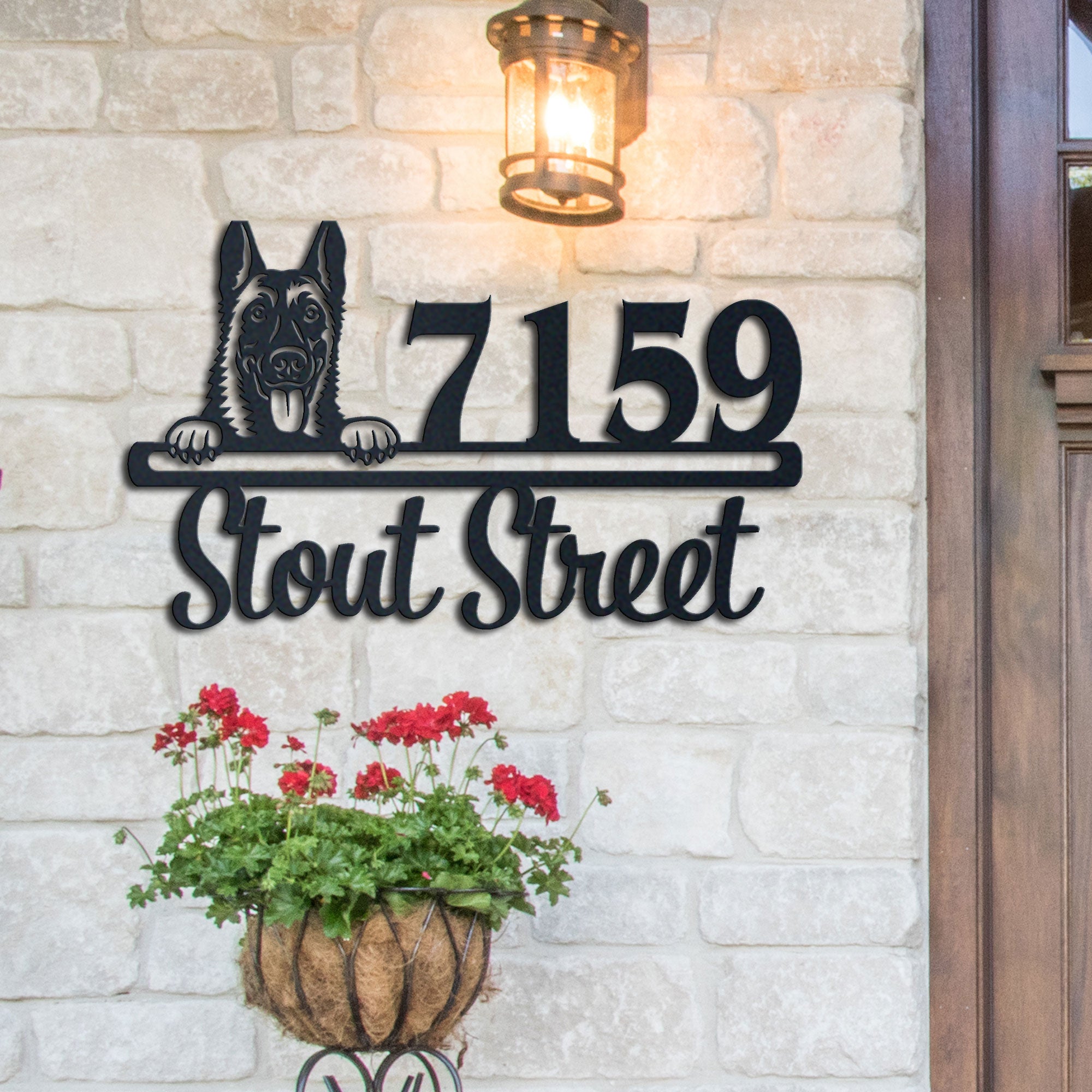 German Shepherd Address Sign | Personalized Metal House Number Plaque | Dog Lover Gift | Outdoor Decor