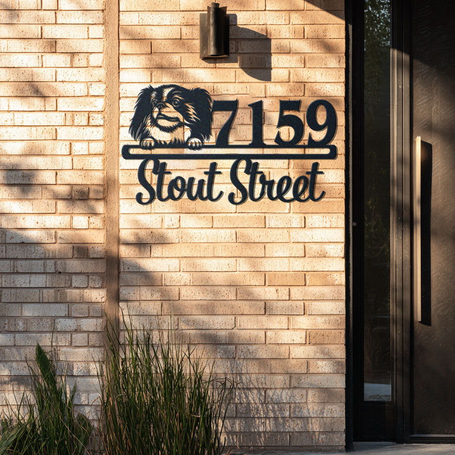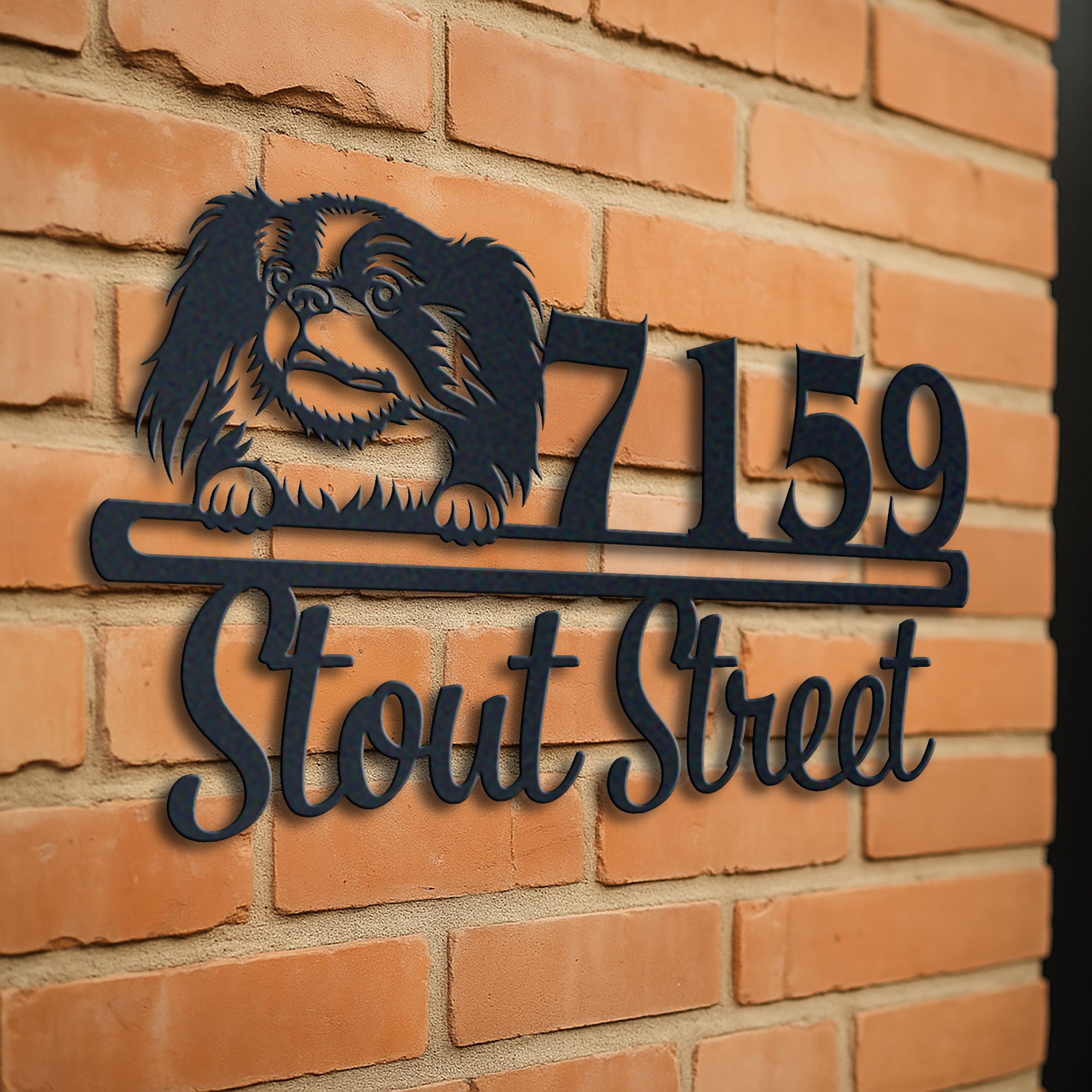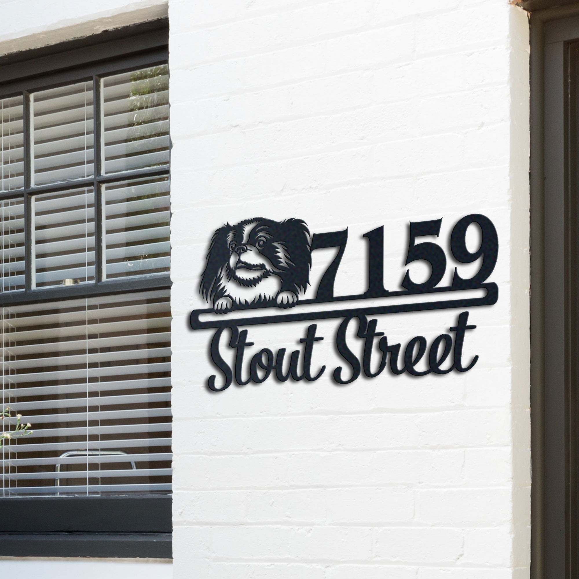 Japanese Chin Address Sign | Personalized Metal House Number Plaque | Dog Lover Gift | Outdoor Decor