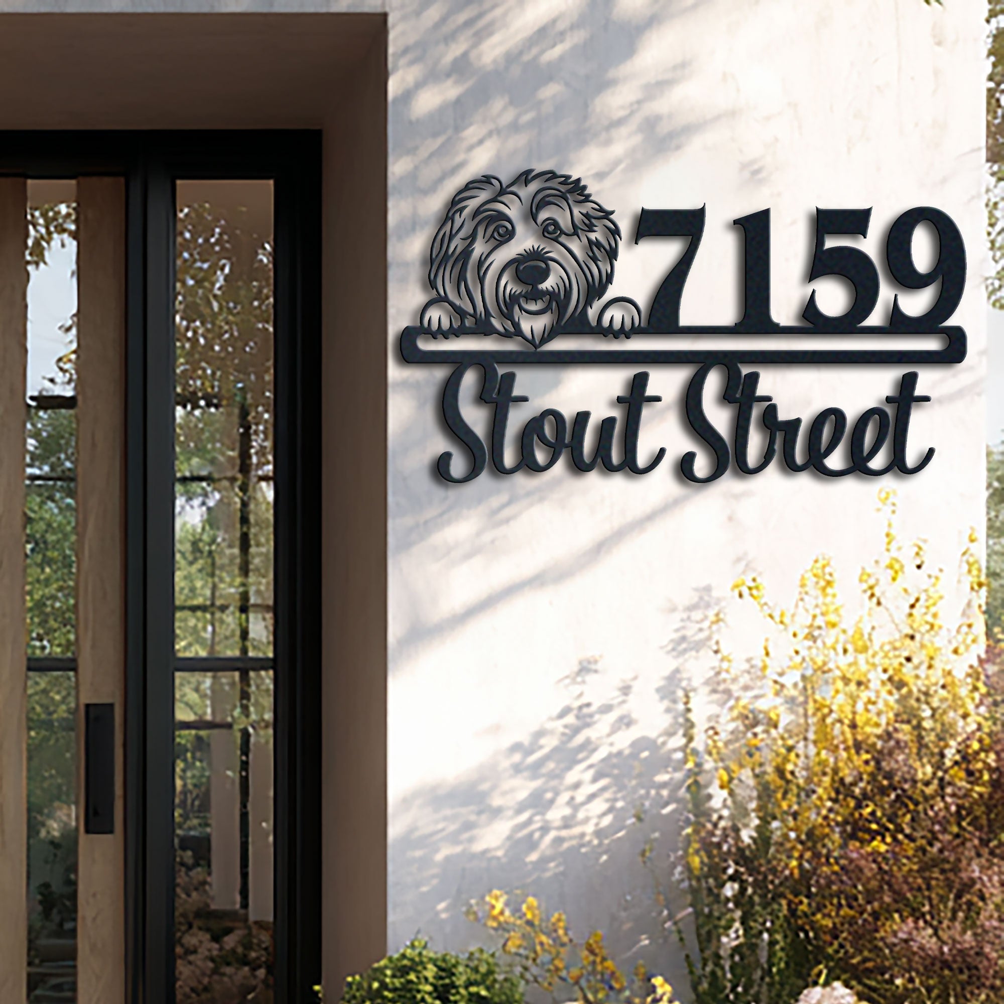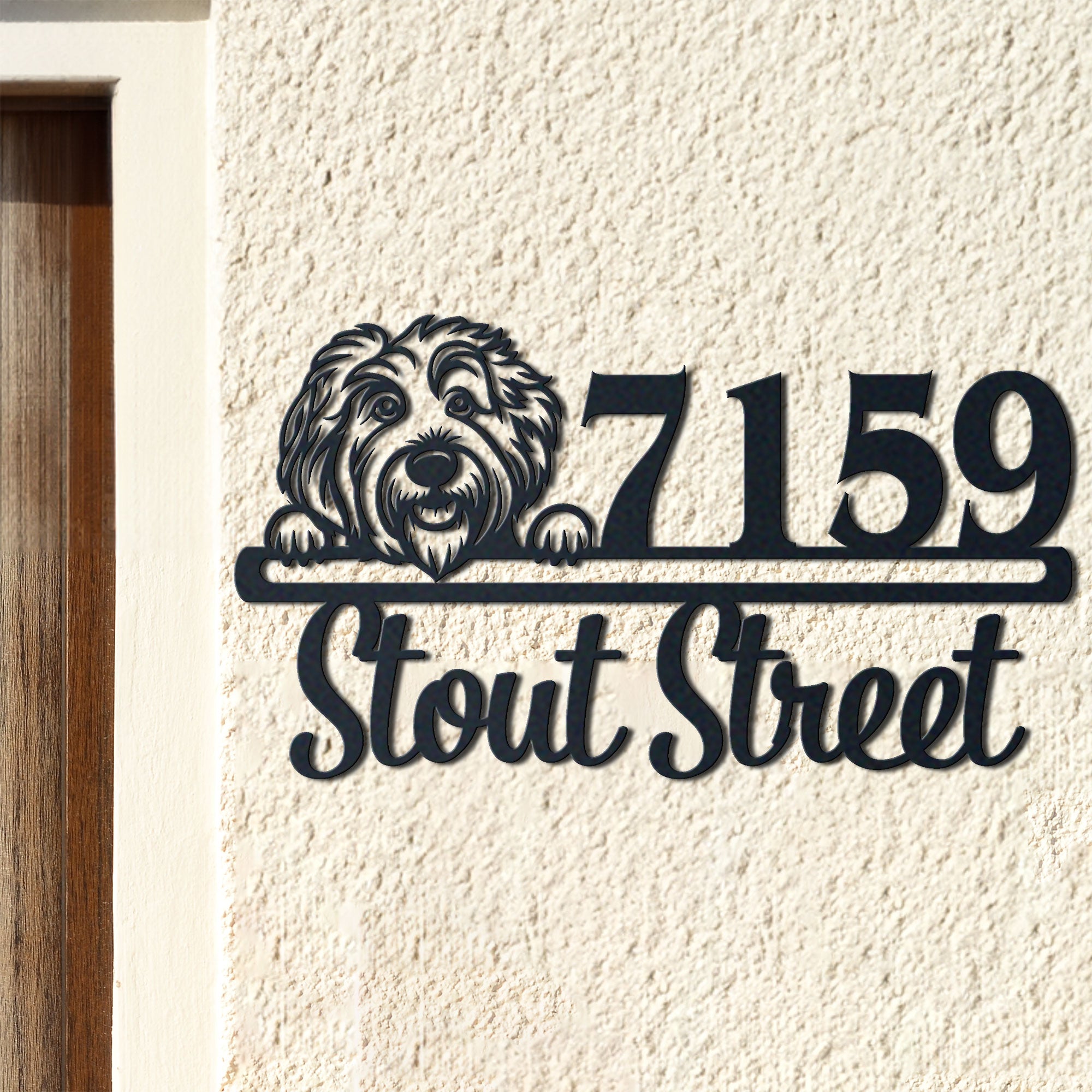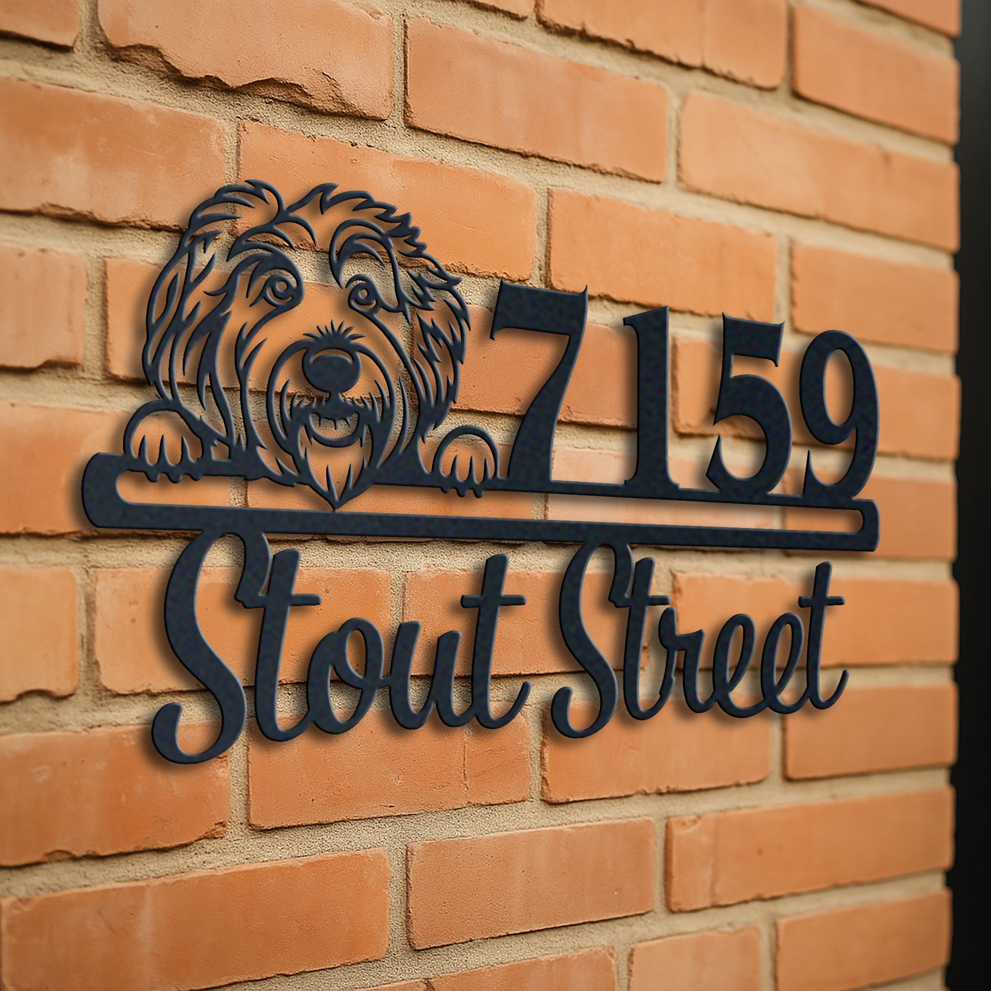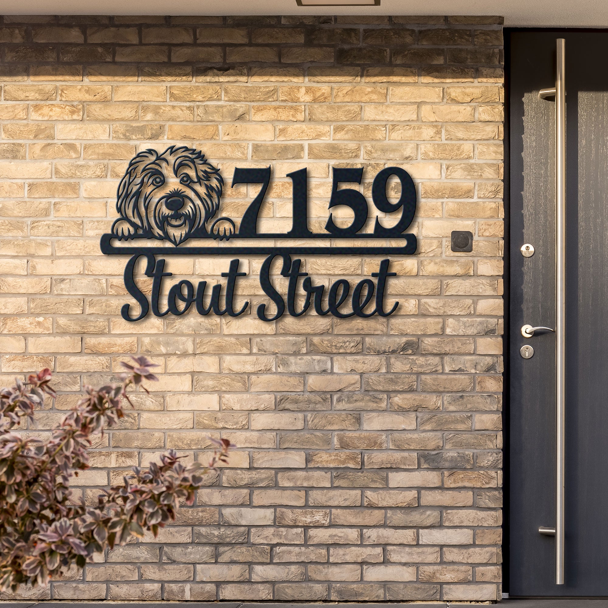 Labradoodle Address Sign | Personalized Metal House Number Plaque | Dog Lover Gift | Outdoor Decor