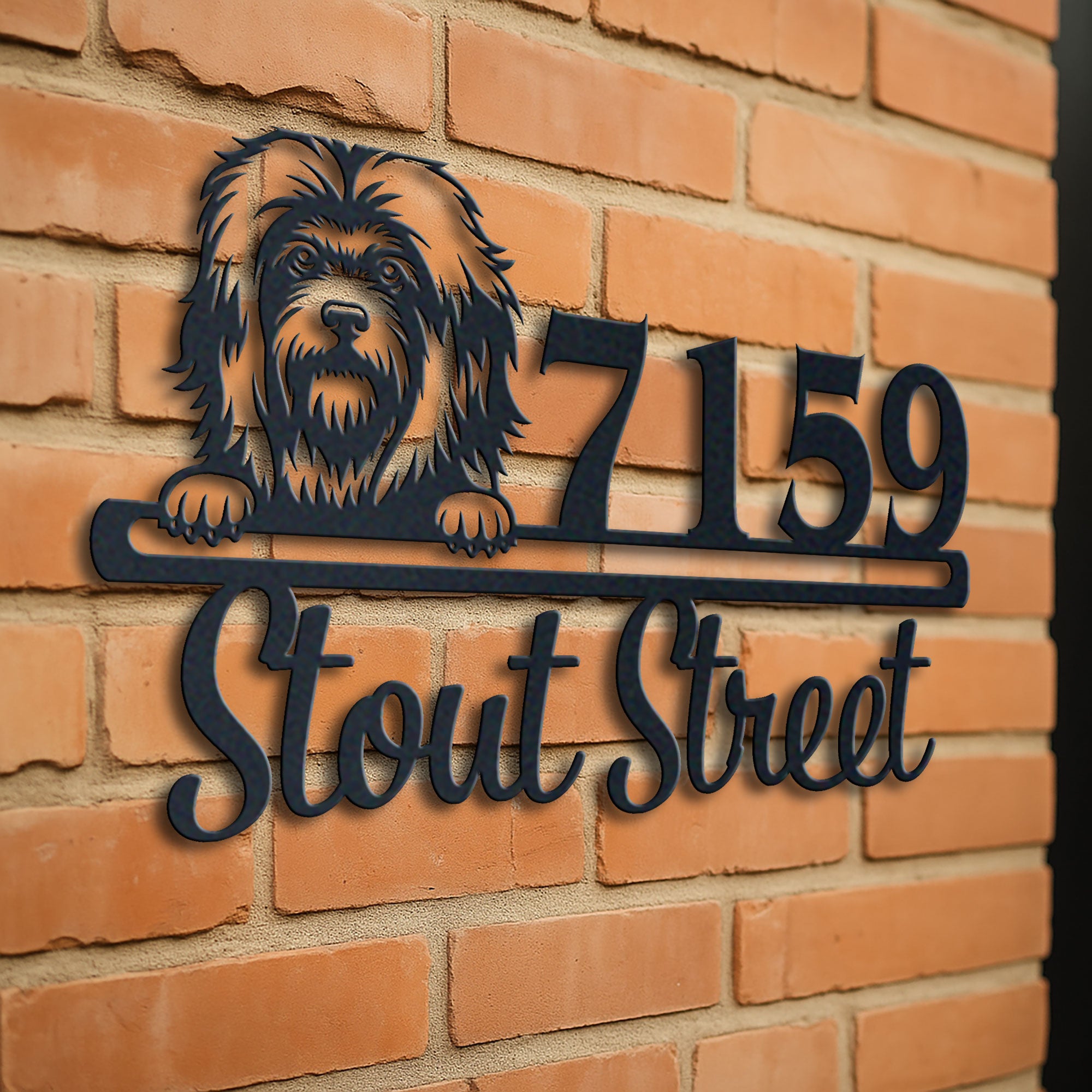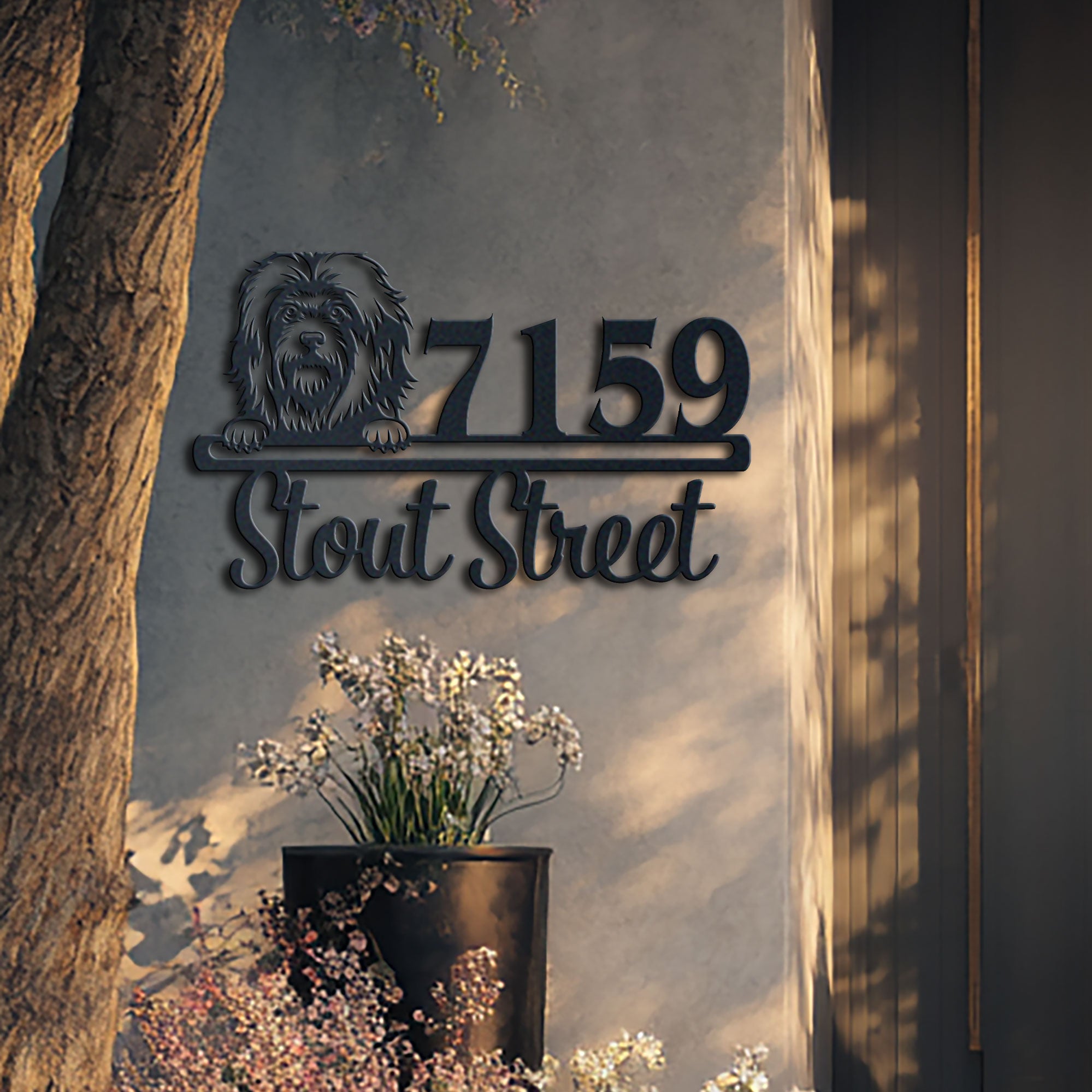 Lowchen Address Sign | Personalized Metal House Number Plaque | Dog Lover Gift | Outdoor Decor