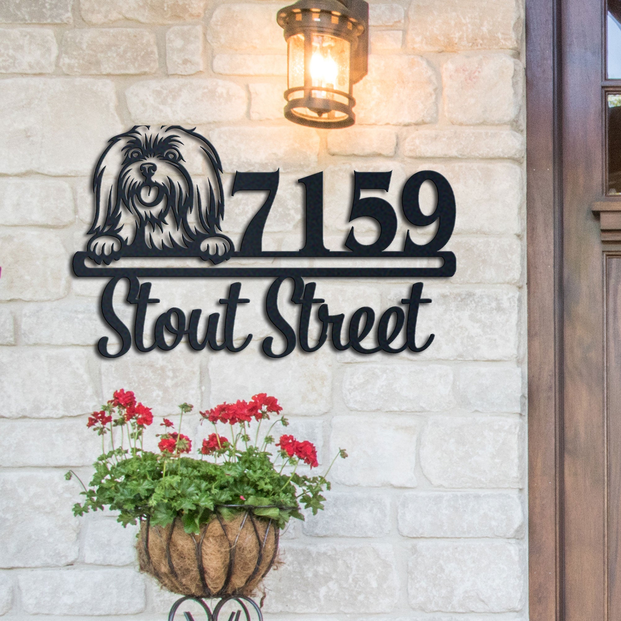 Maltese 2 Address Sign | Personalized Metal House Number Plaque | Dog Lover Gift | Outdoor Decor