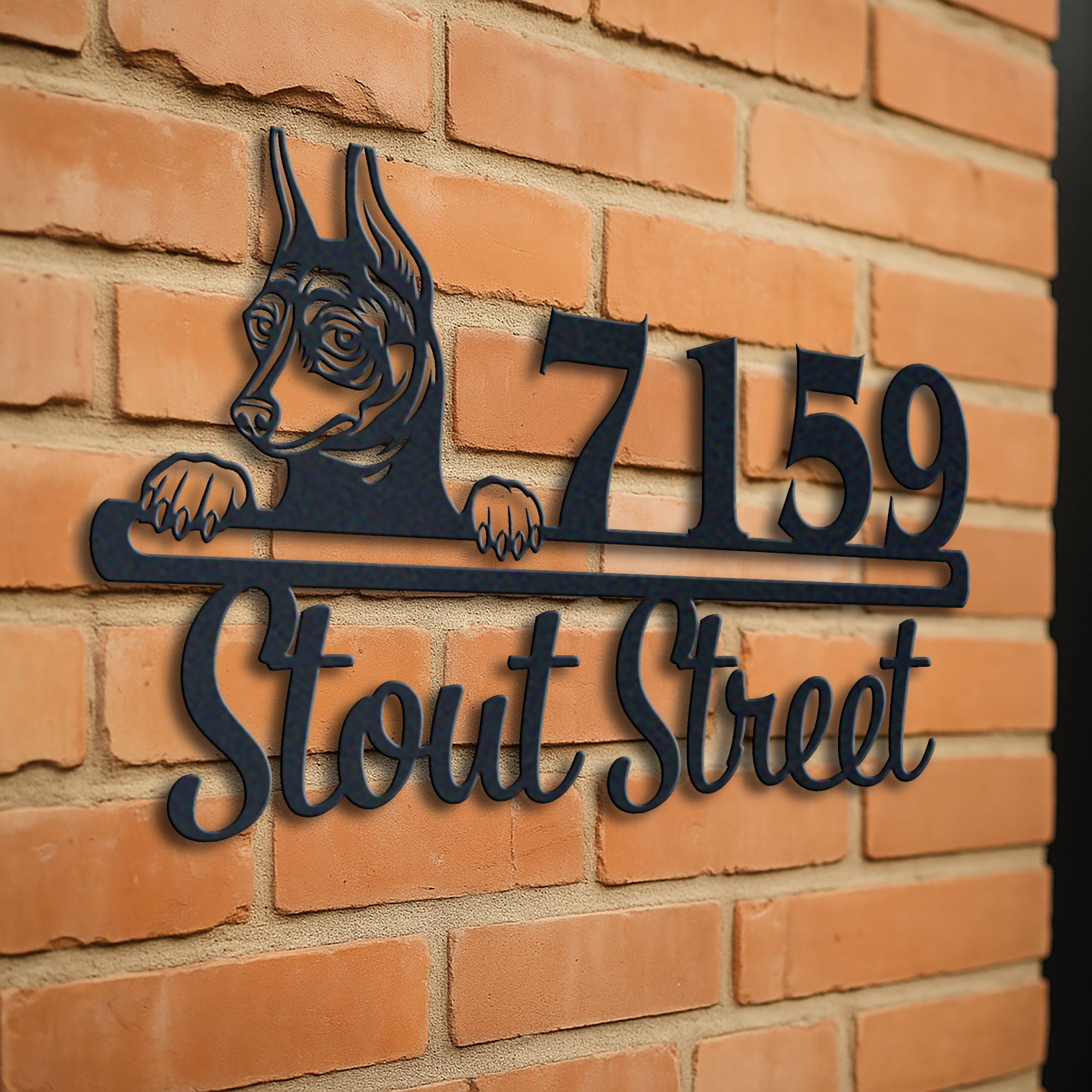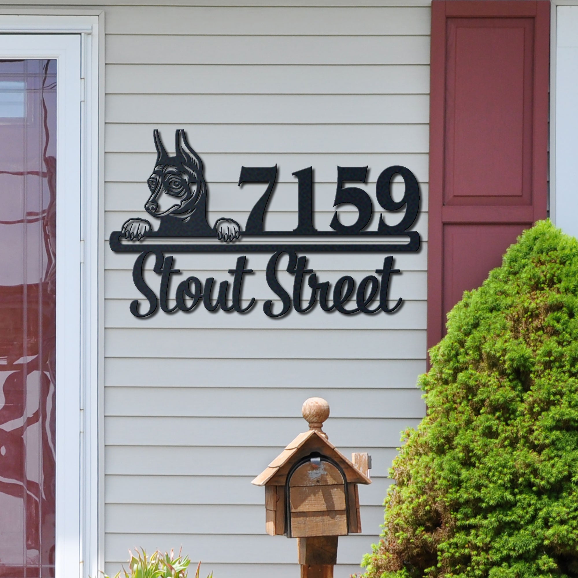 Miniature Pinscher Address Sign | Personalized Metal House Number Plaque | Dog Lover Gift | Outdoor Decor