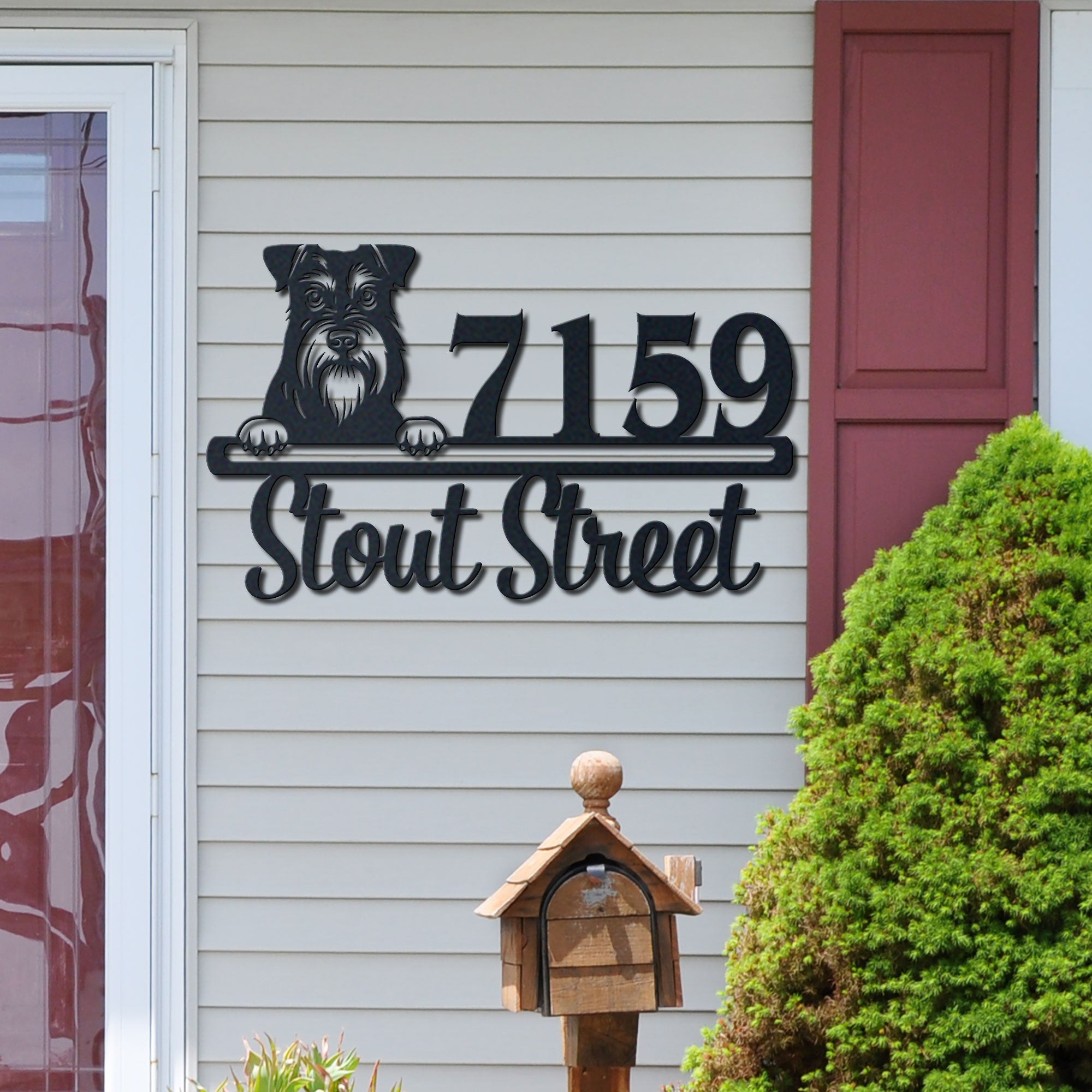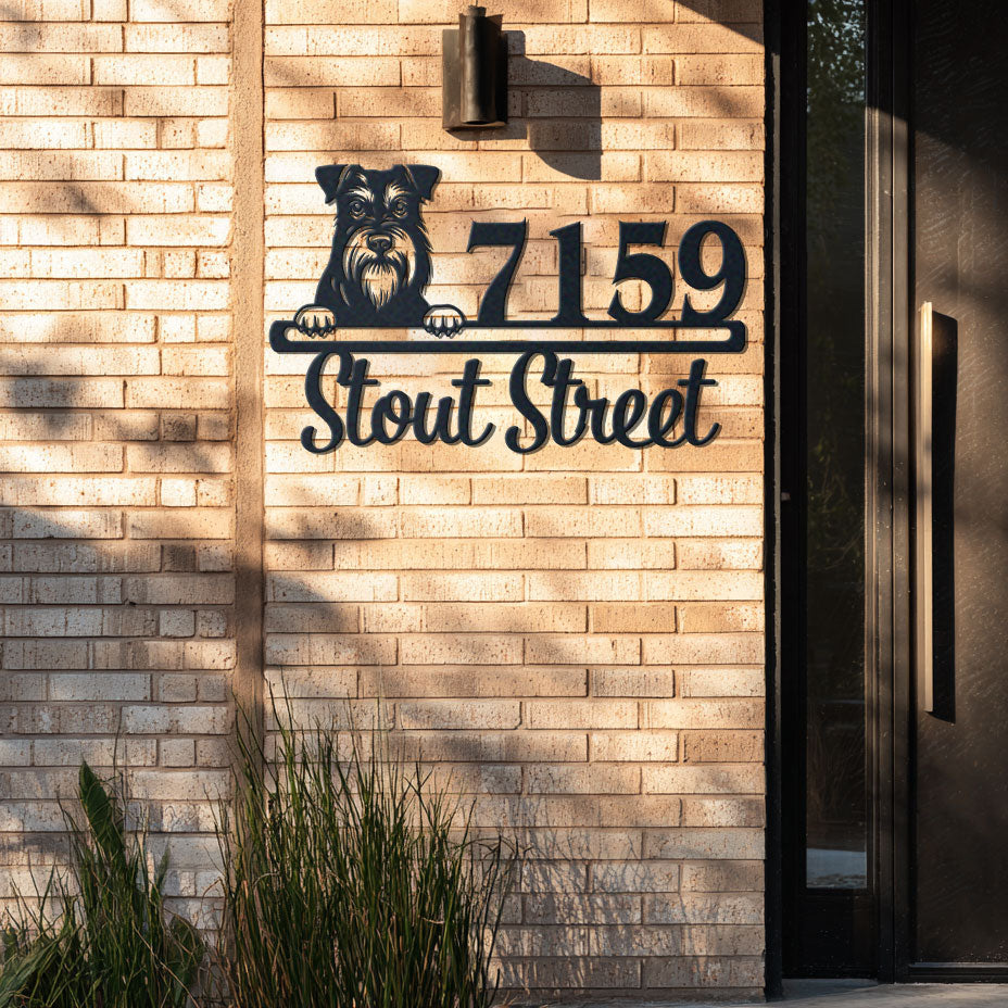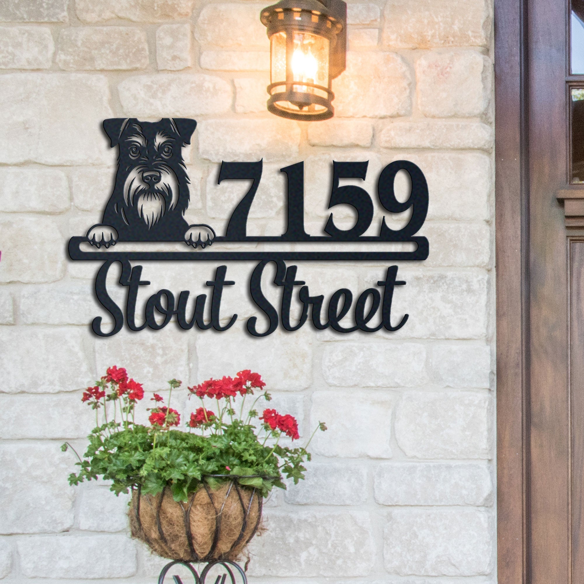 Miniature Schnauze Address Sign | Personalized Metal House Number Plaque | Dog Lover Gift | Outdoor Decor