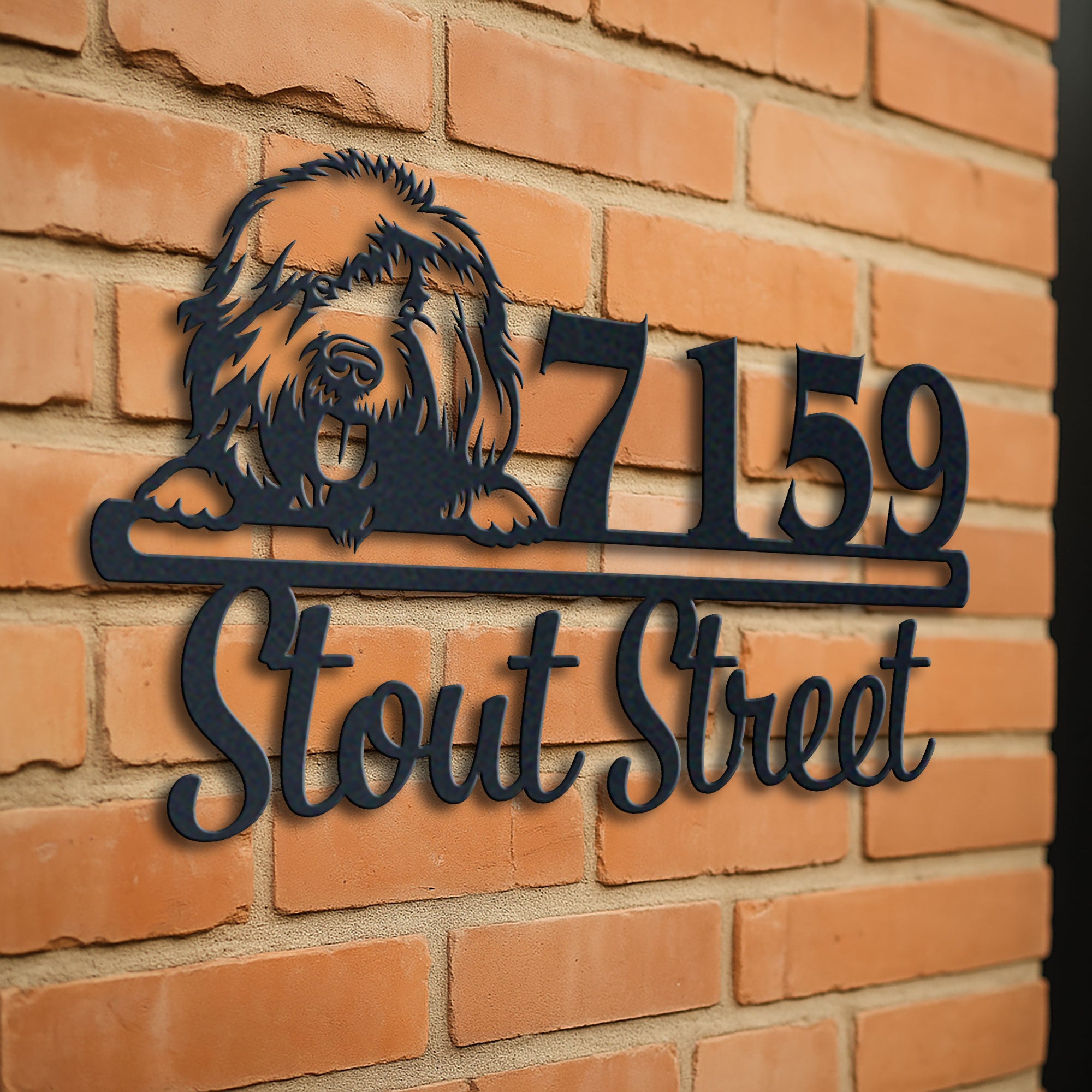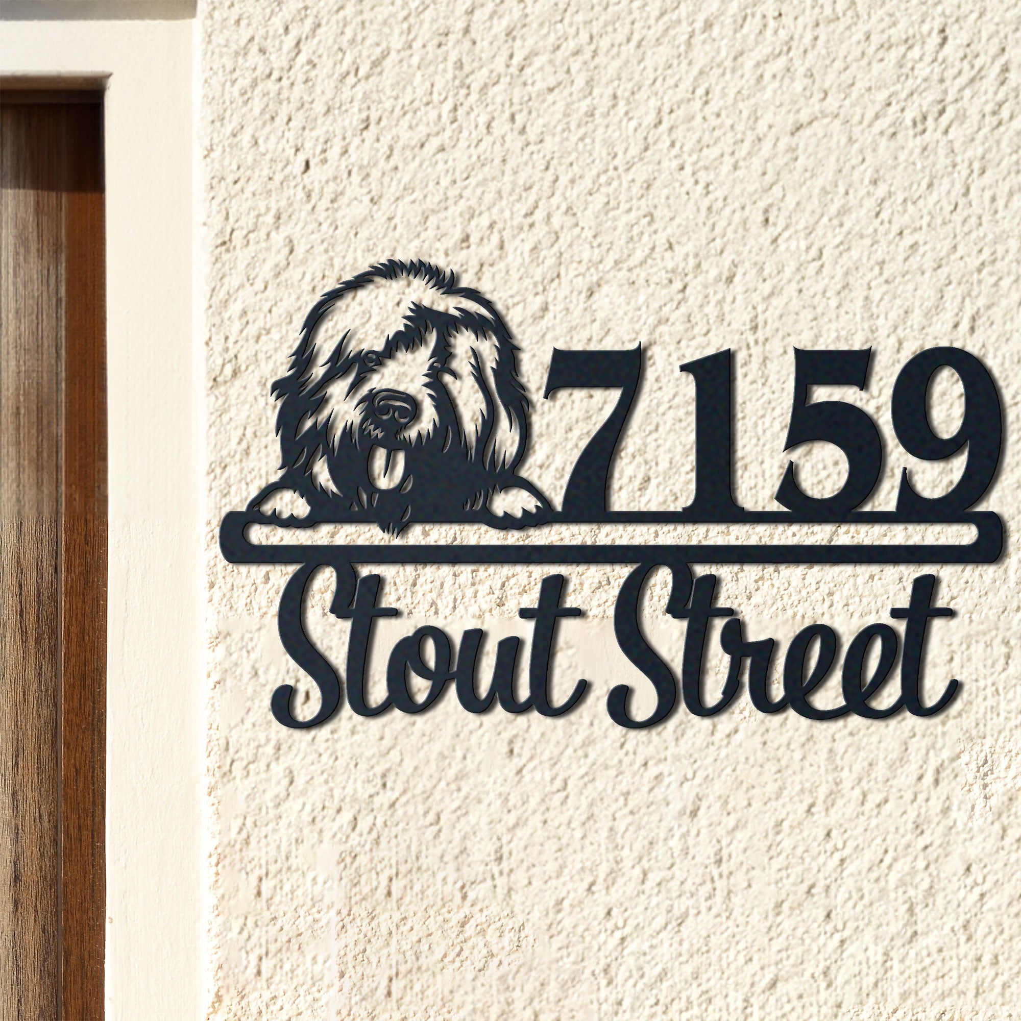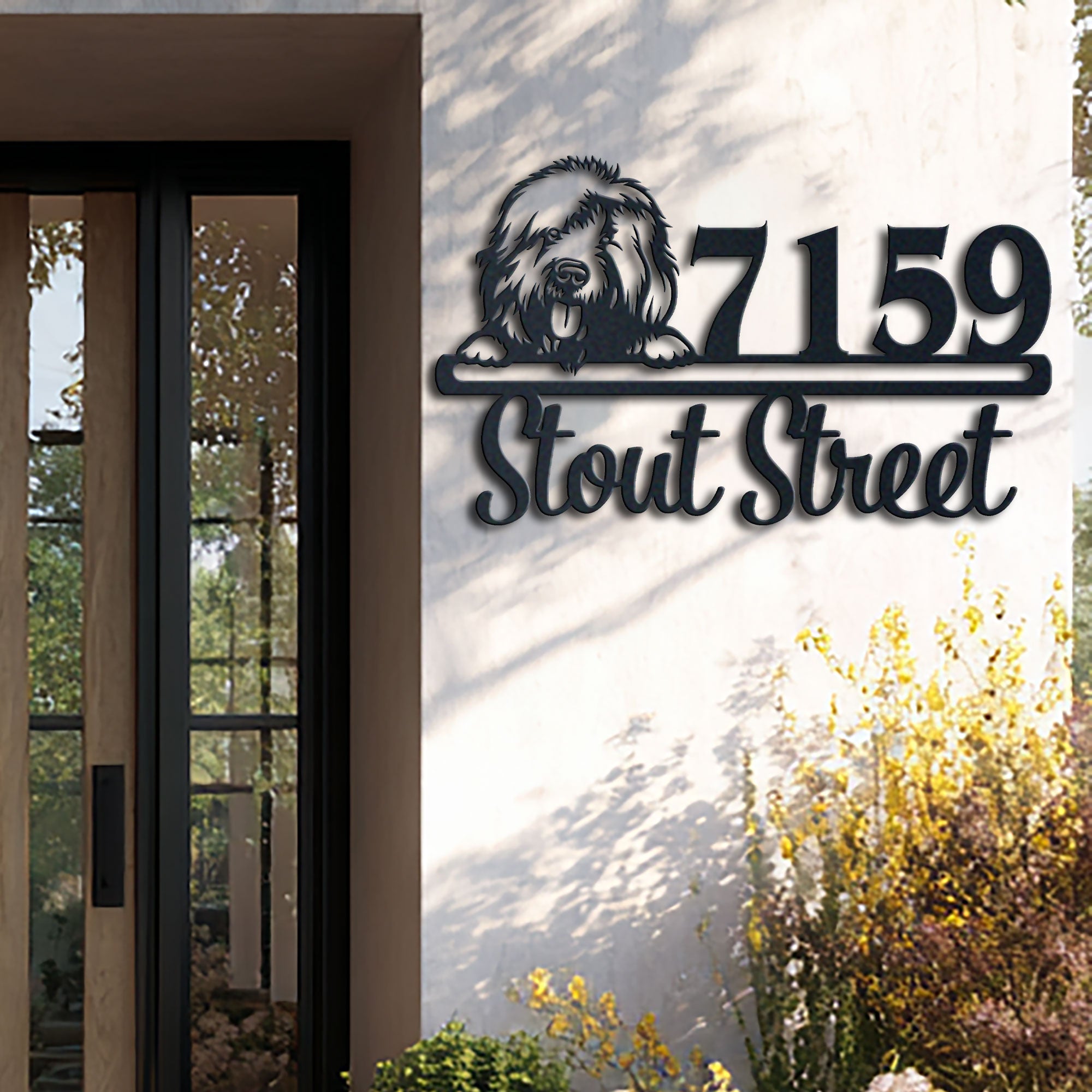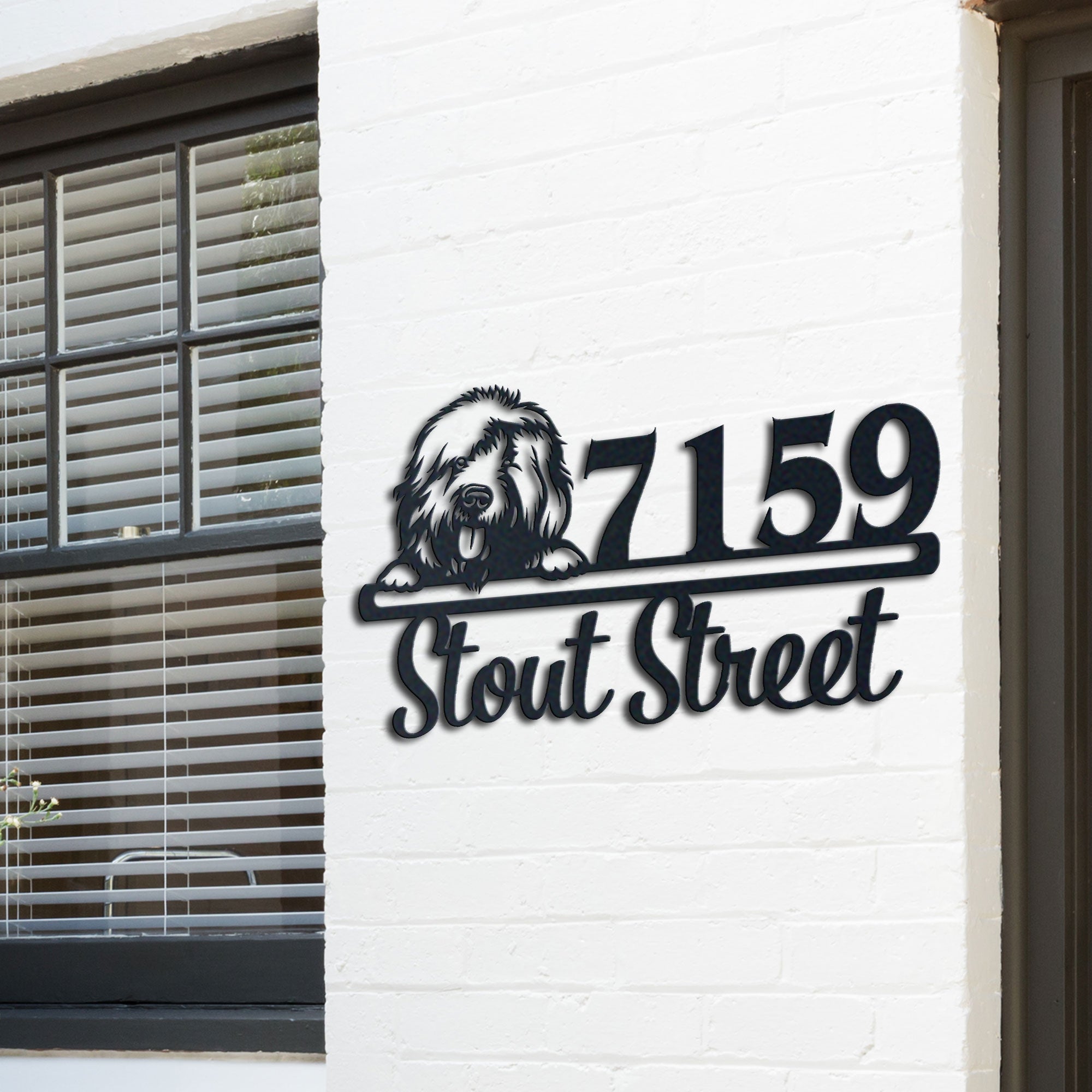 Old English Sheepdog Address Sign | Personalized Metal House Number Plaque | Dog Lover Gift | Outdoor Decor