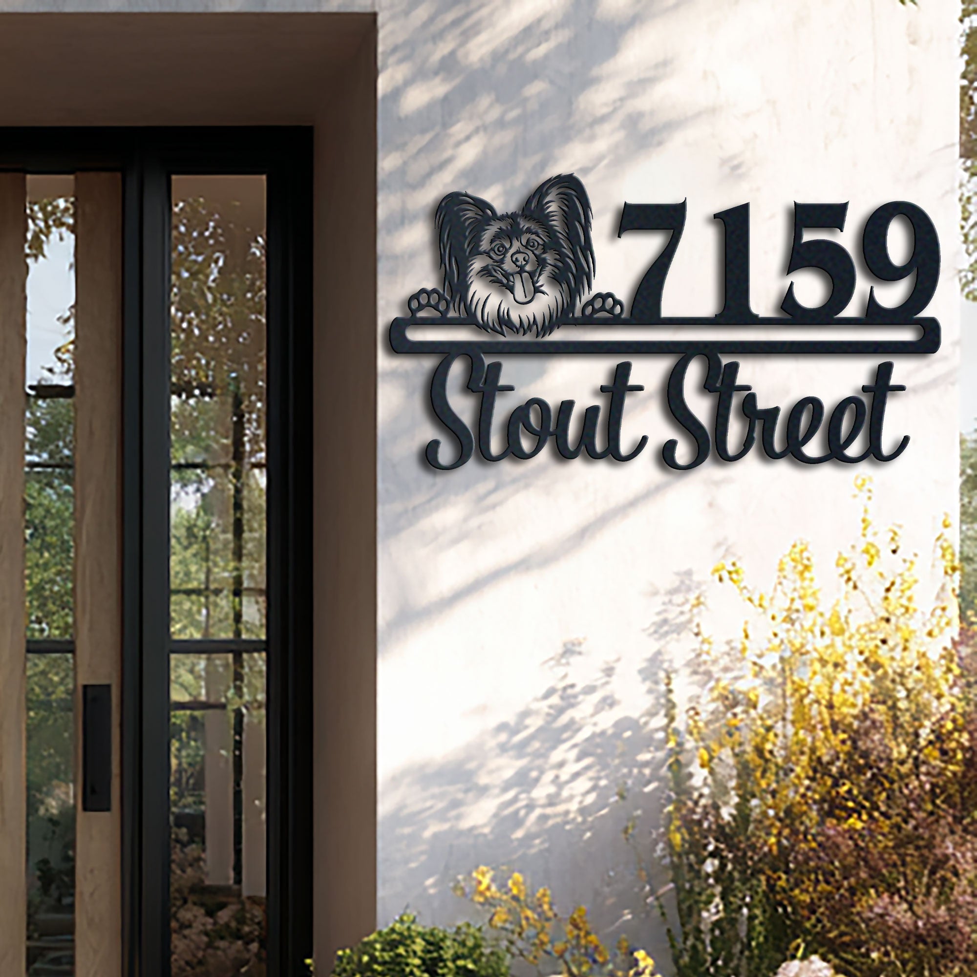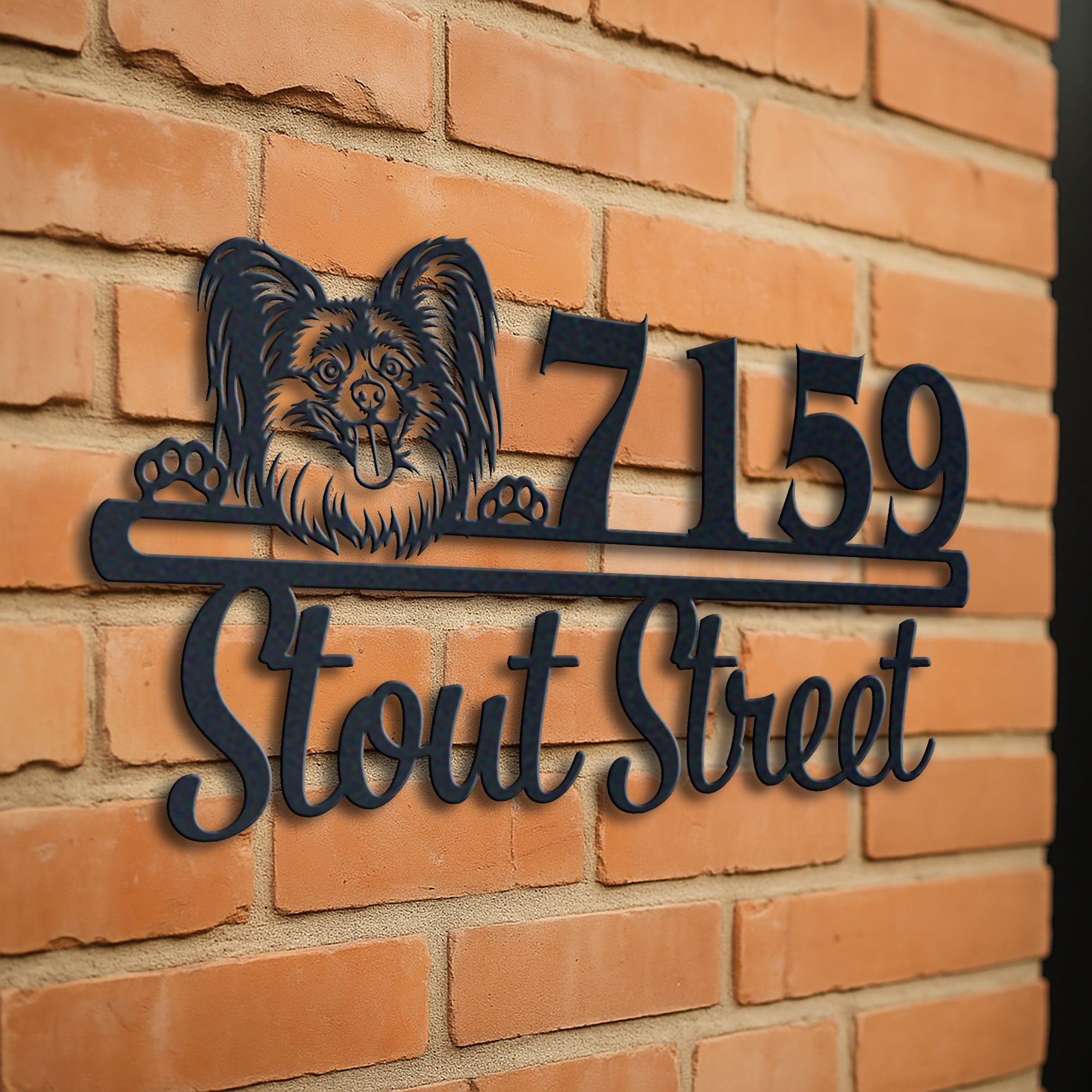 Papilon Address Sign | Personalized Metal House Number Plaque | Dog Lover Gift | Outdoor Decor 1