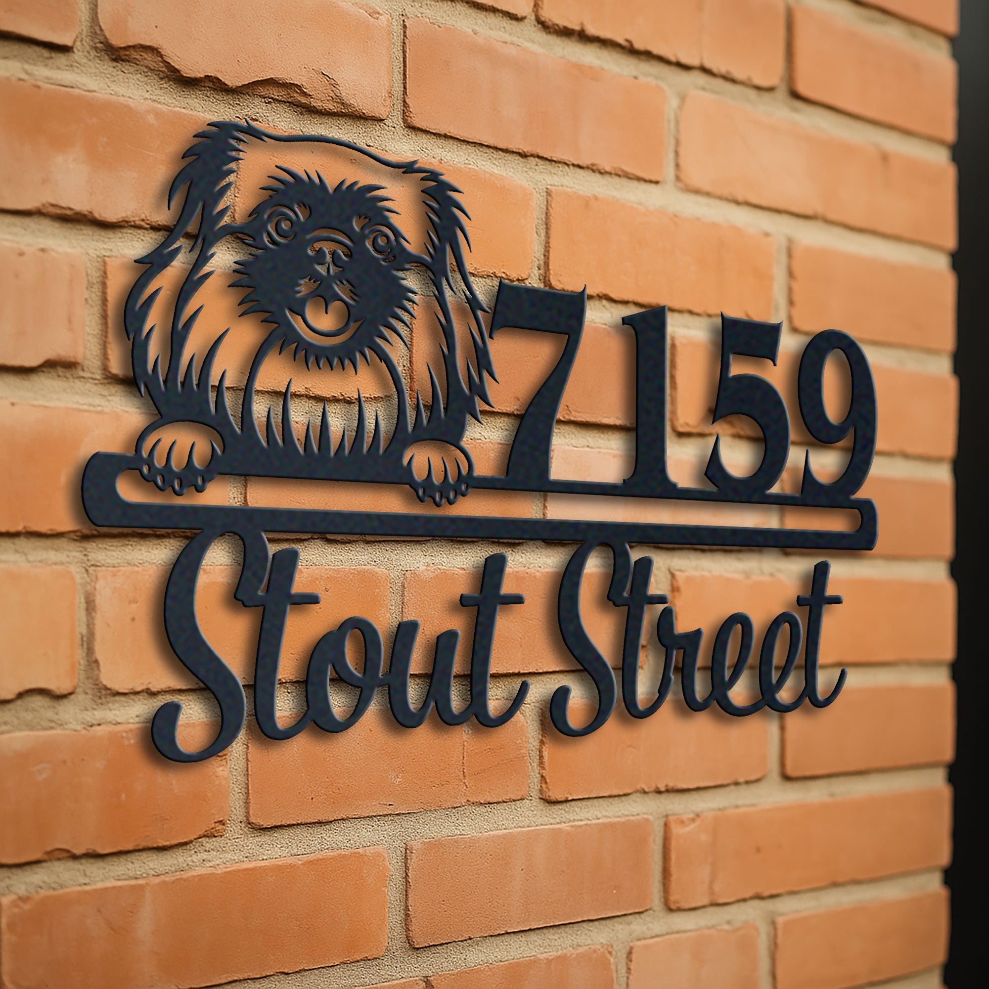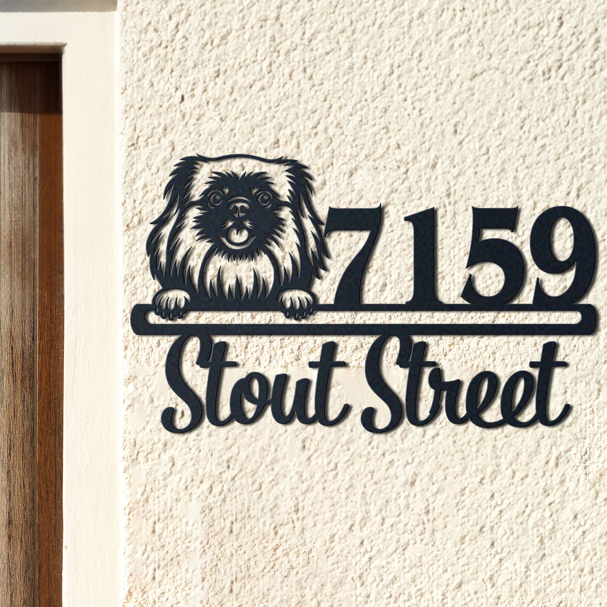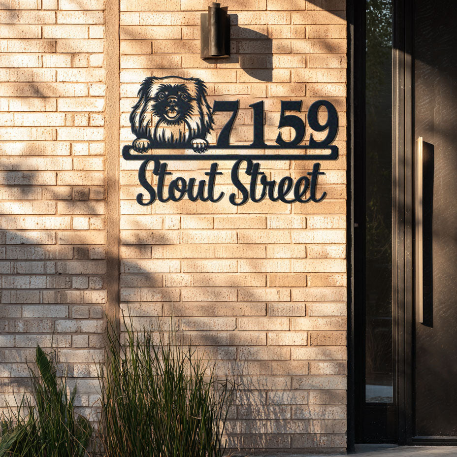 Pekingese Address Sign | Personalized Metal House Number Plaque | Dog Lover Gift | Outdoor Decor