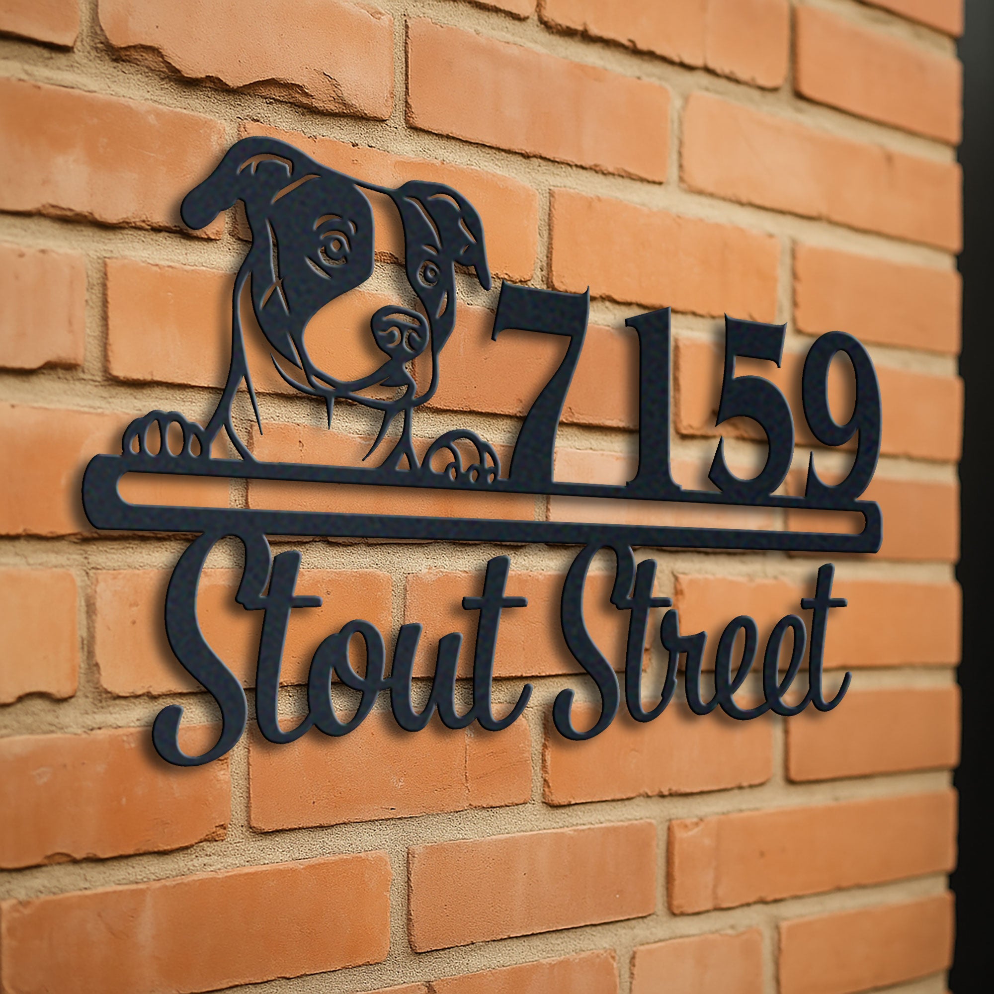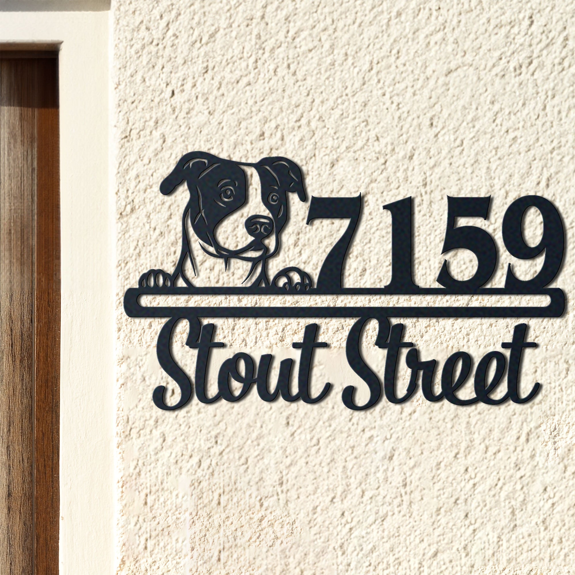 Pit Bull Address Sign | Personalized Metal House Number Plaque | Dog Lover Gift | Outdoor Decor 2
