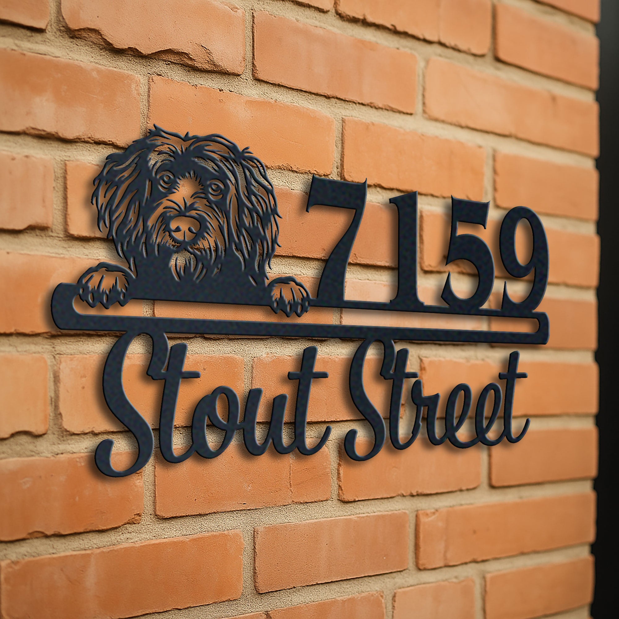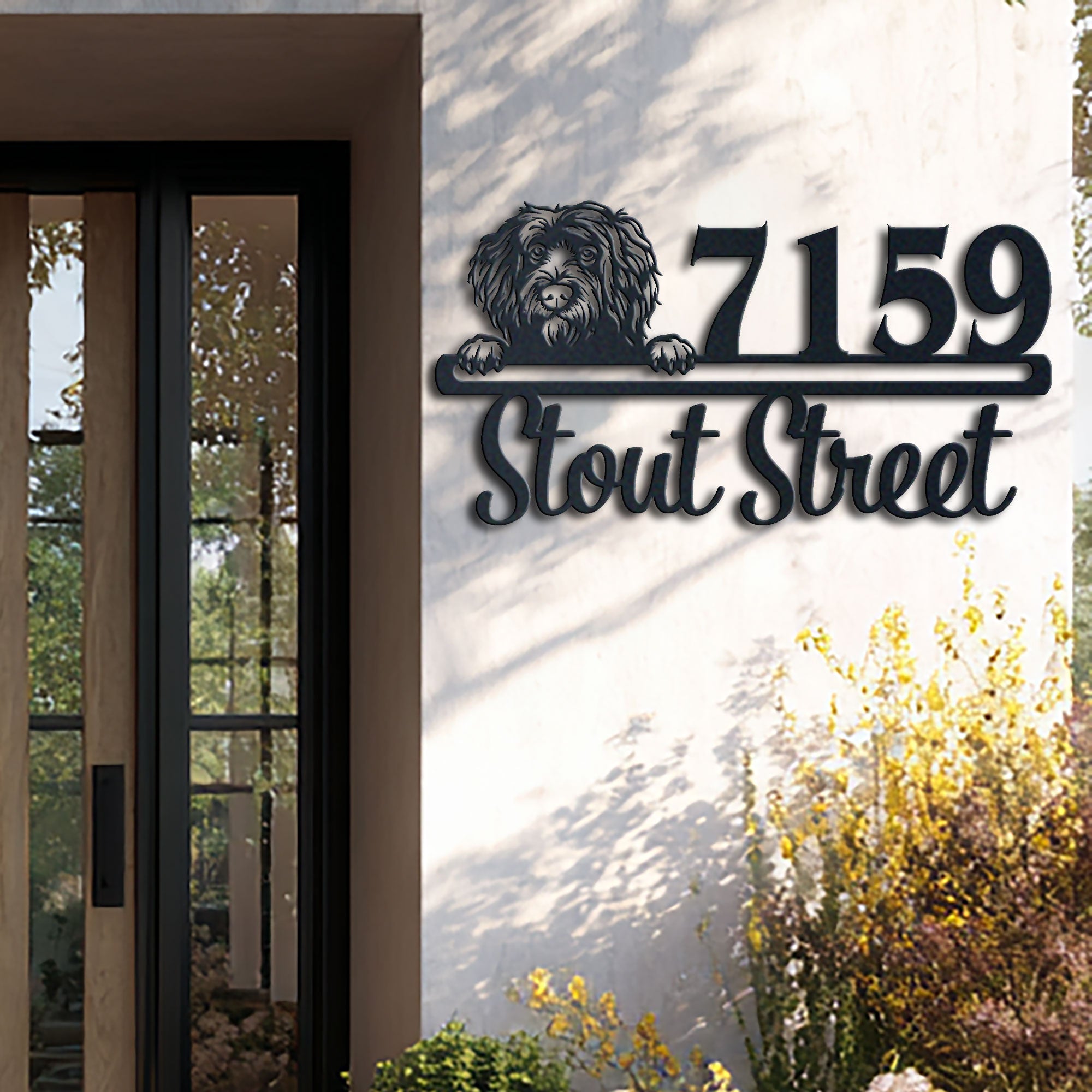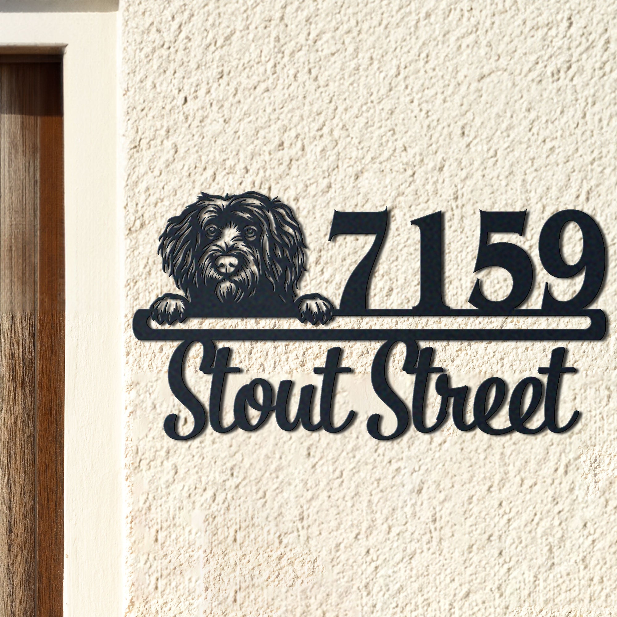 Portuguese Water Dog 2 Address Sign | Personalized Metal House Number Plaque | Dog Lover Gift | Outdoor Decor