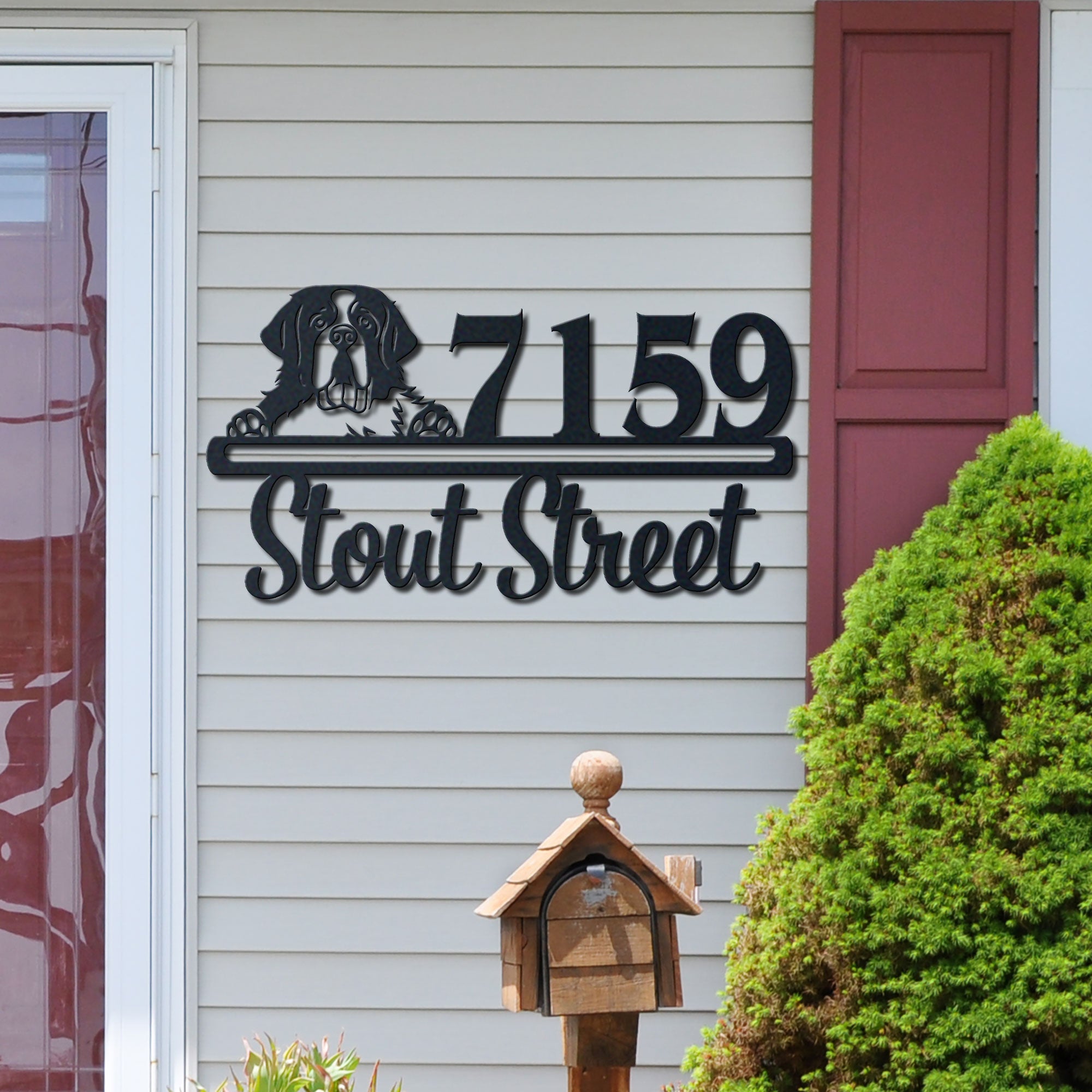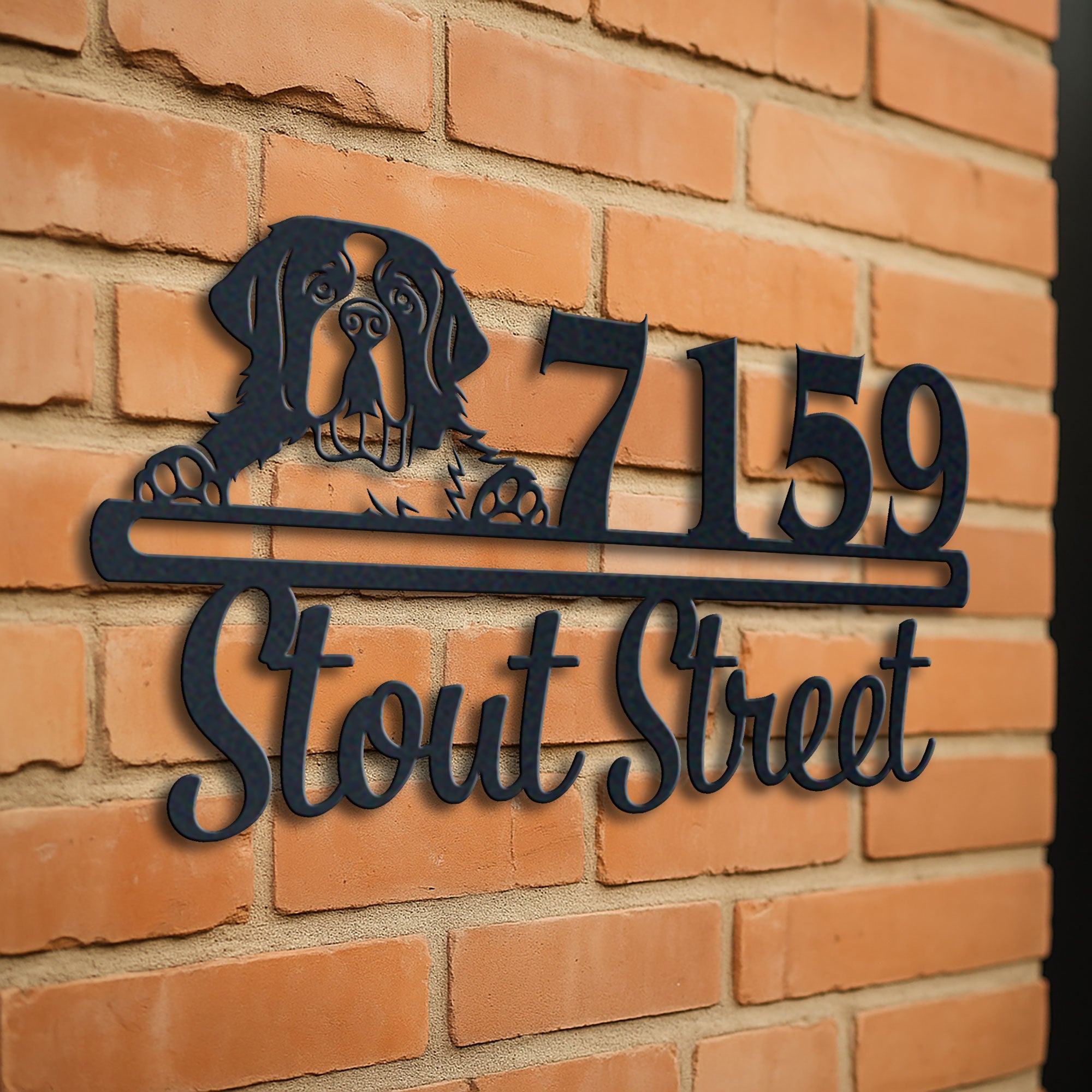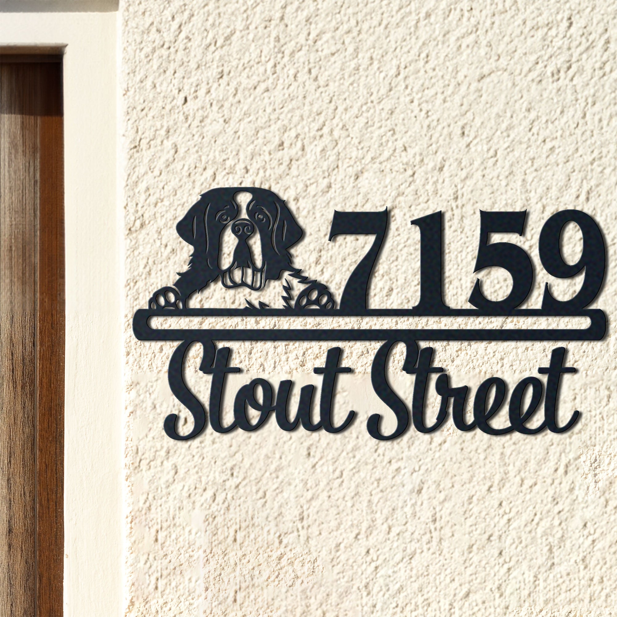 St. Bernard Address Sign | Personalized Metal House Number Plaque | Dog Lover Gift | Outdoor Decor