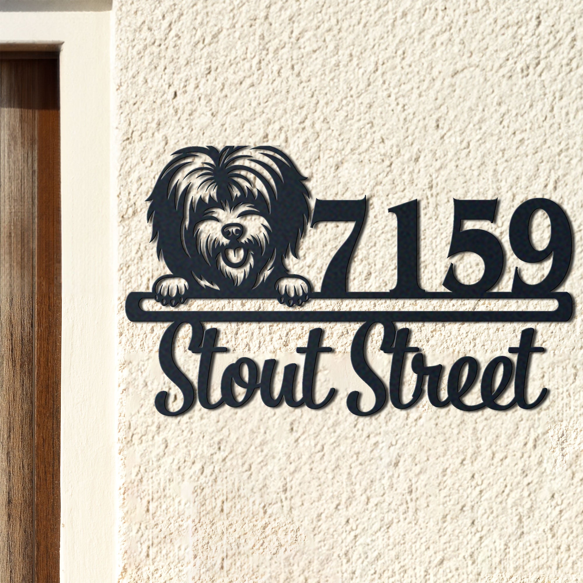 Tibetan Terrier Address Sign | Personalized Metal House Number Plaque | Dog Lover Gift | Outdoor Decor