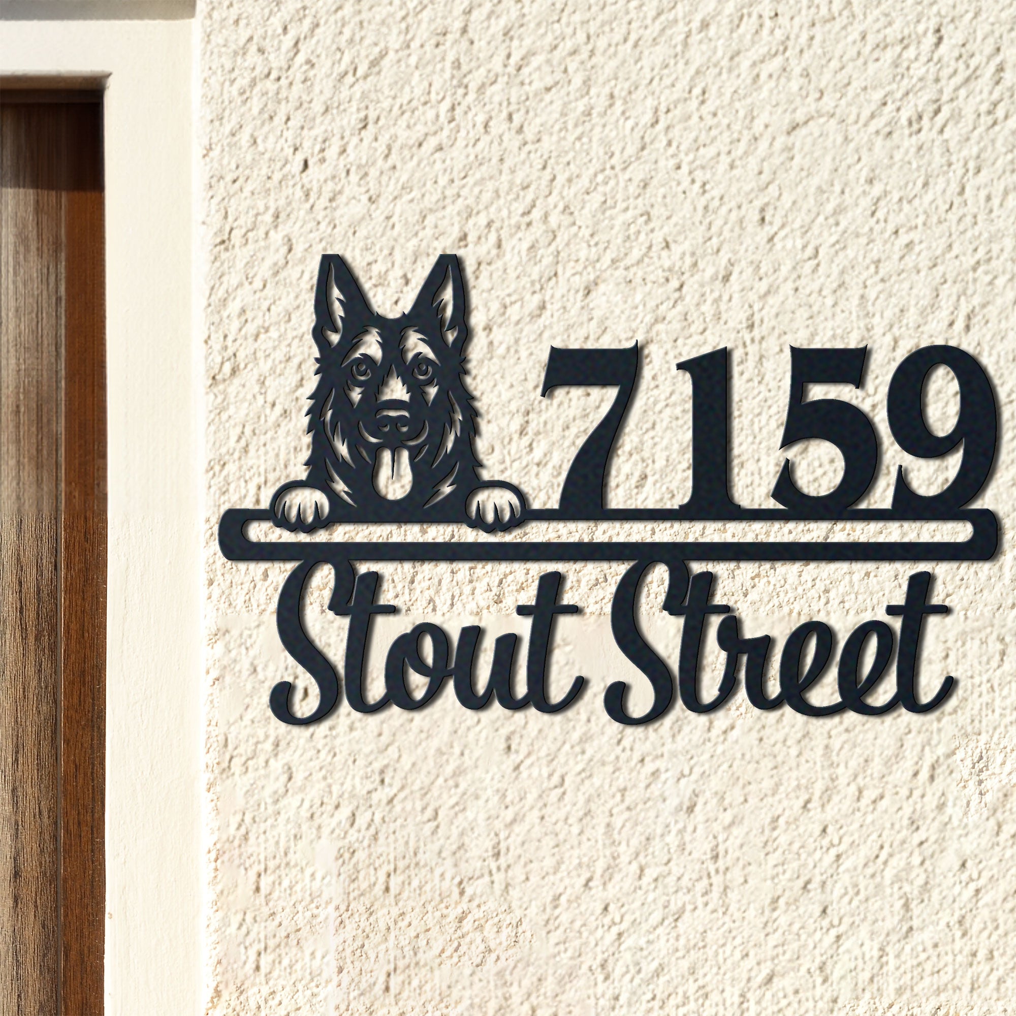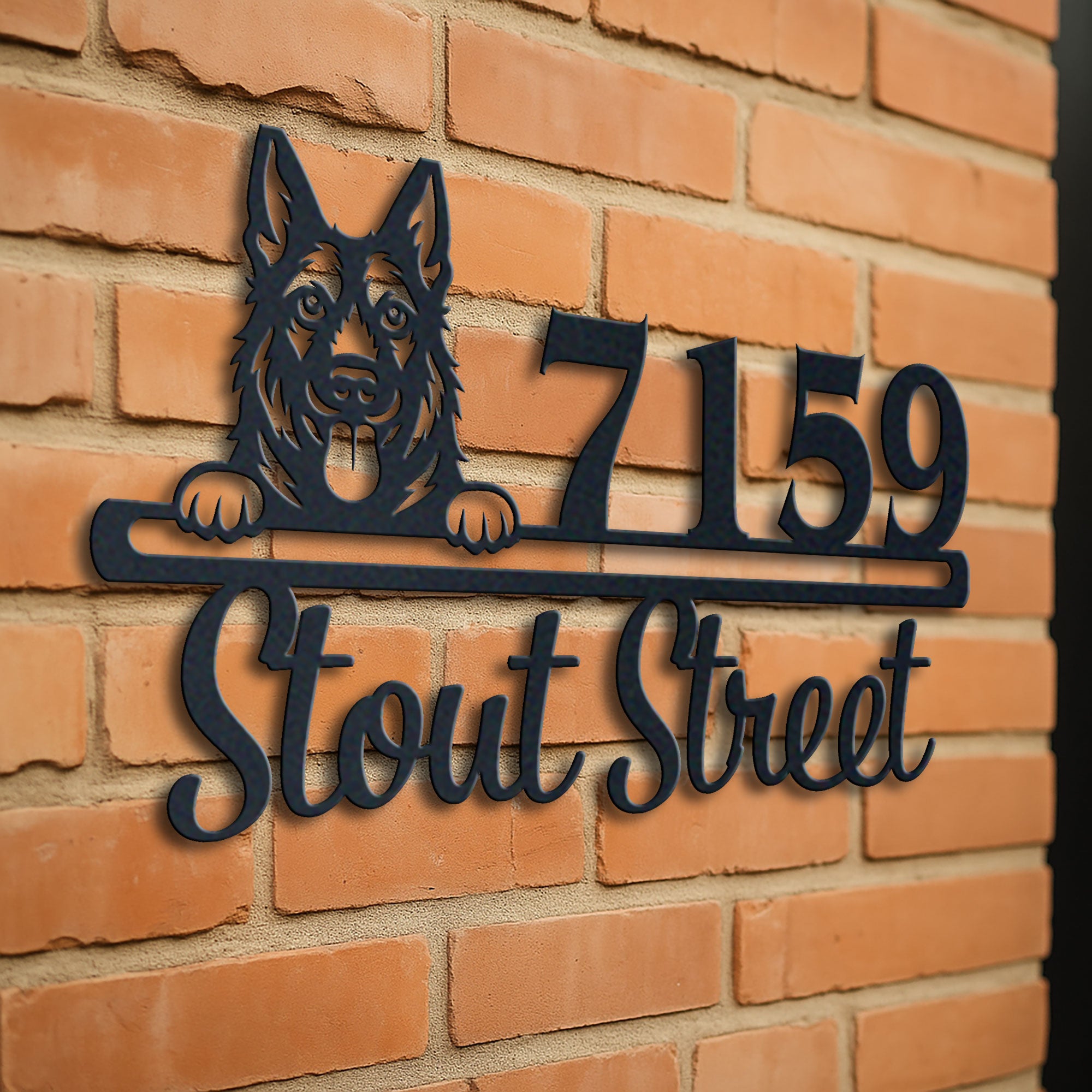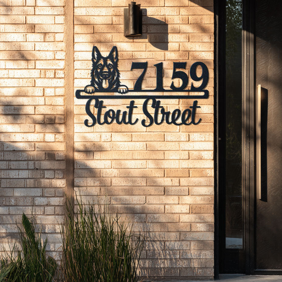 West Gothic Dog Address Sign | Personalized Metal House Number Plaque | Dog Lover Gift | Outdoor Decor