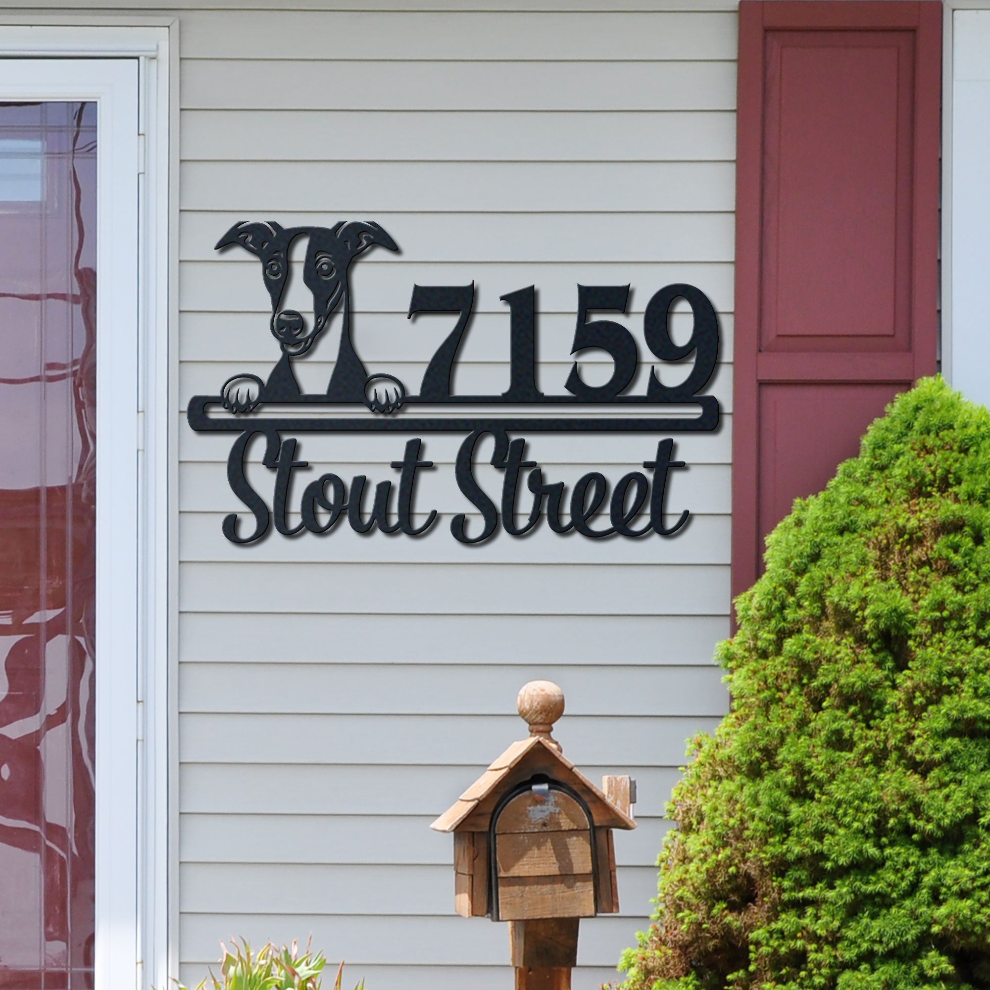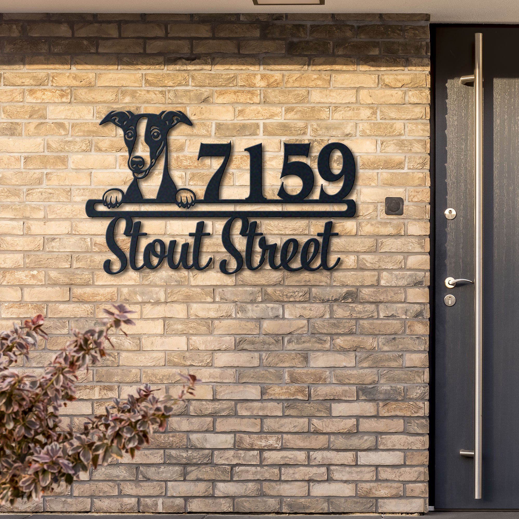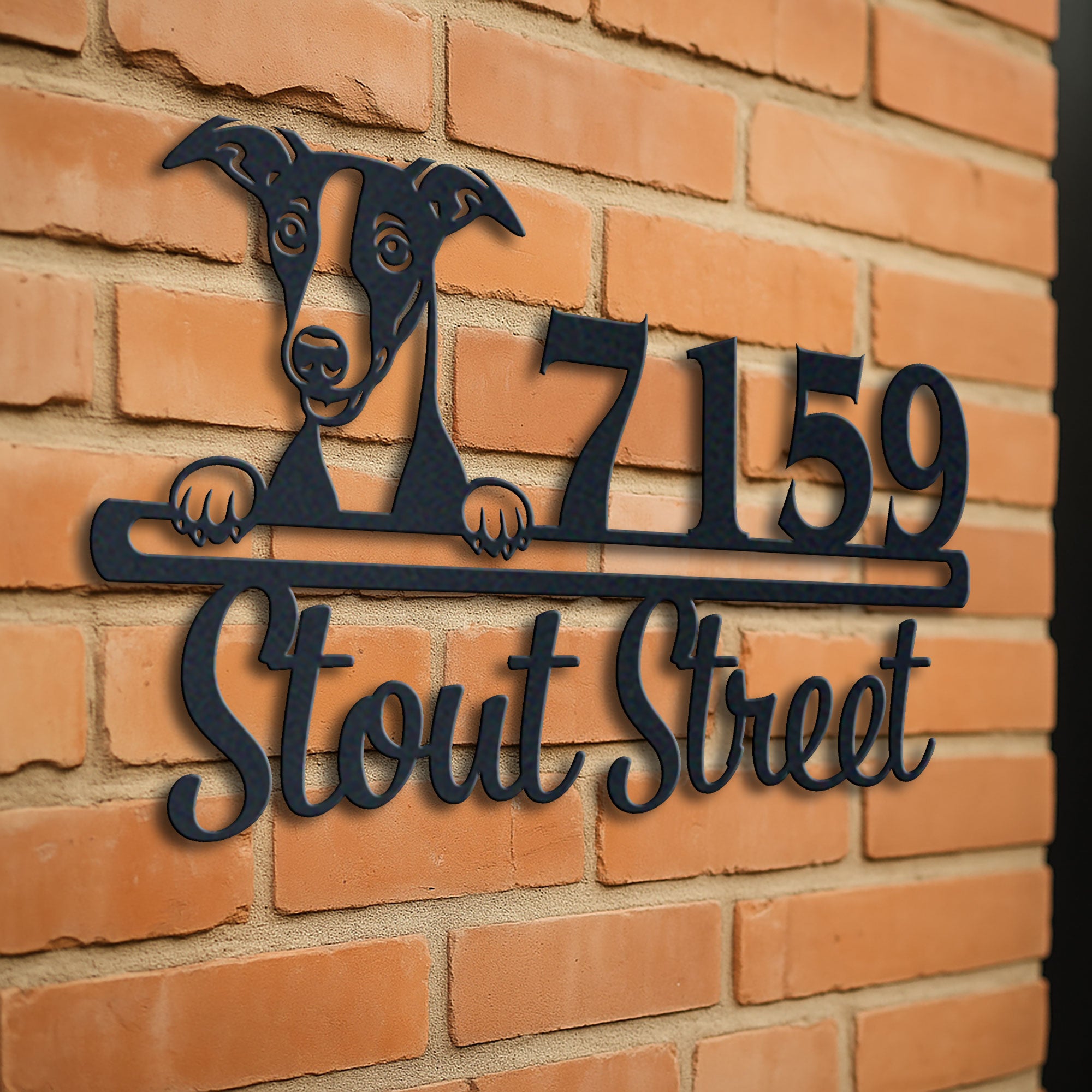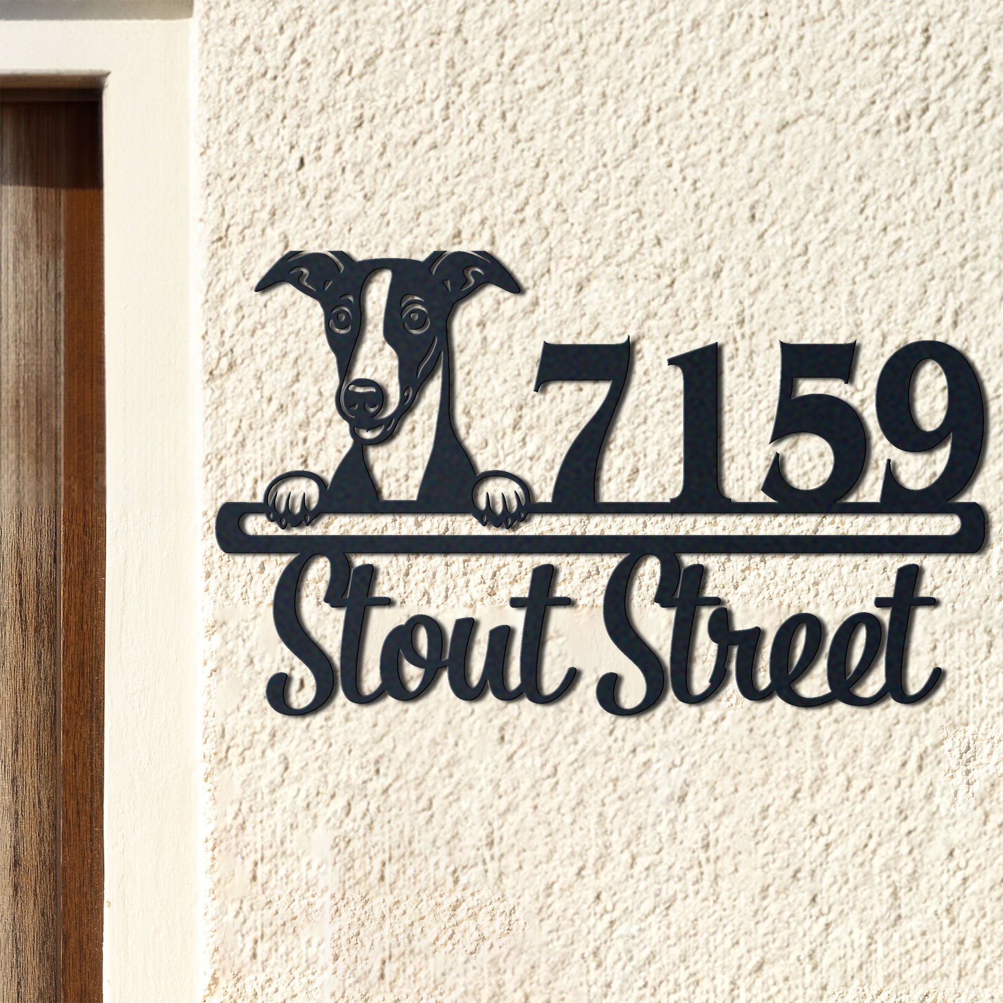 Whippet Address Sign | Personalized Metal House Number Plaque | Dog Lover Gift | Outdoor Decor