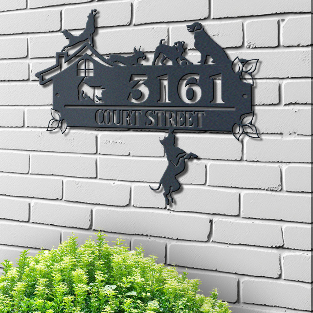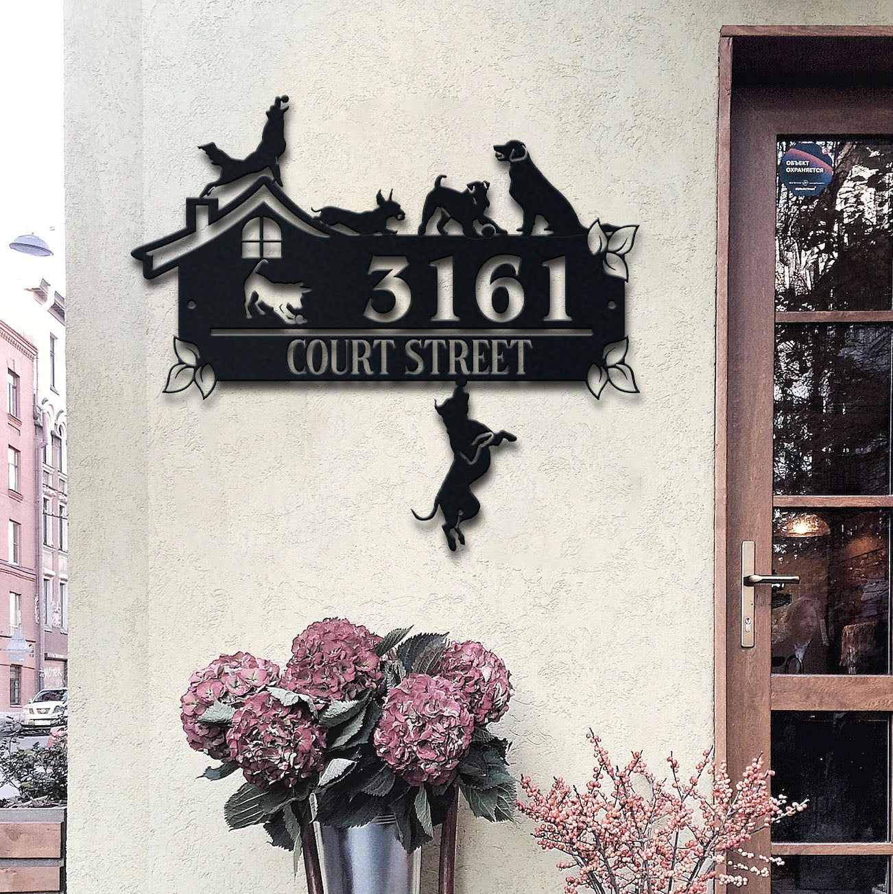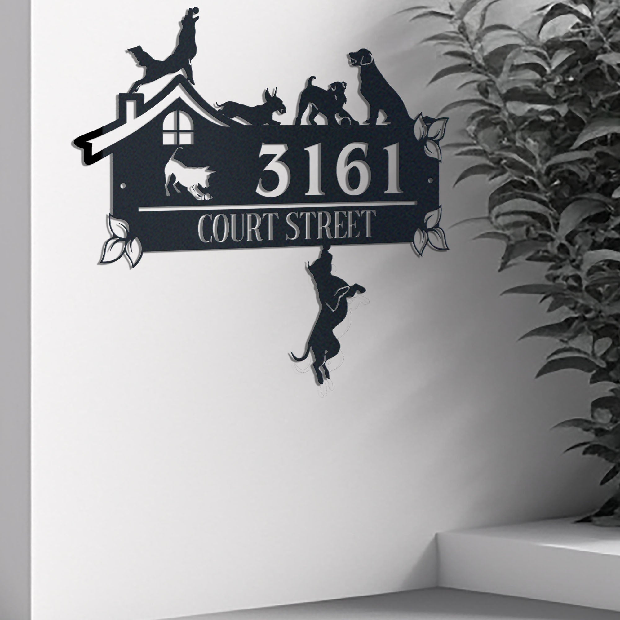 Funny Dogs Play Ball Address Sign, House Number Sign, Address Plaque, Dog Lovers Gift