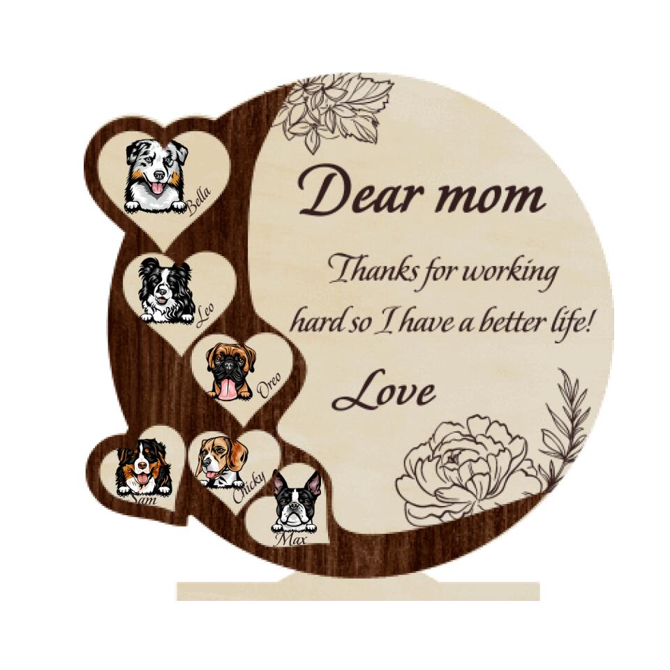 Dog Lovers Wooden Plaque Dear Mom Thanks For Working Hard So I Have A Better Life