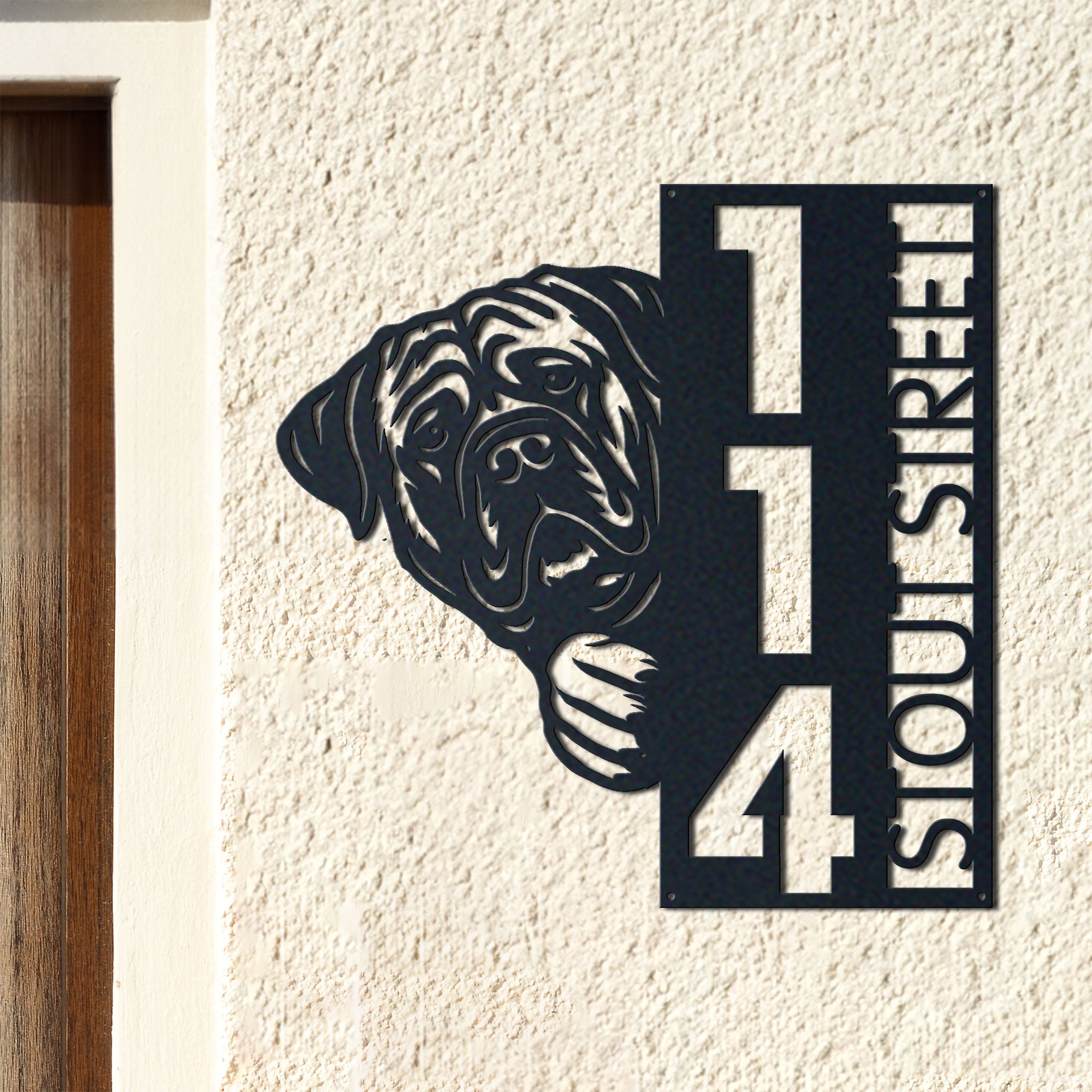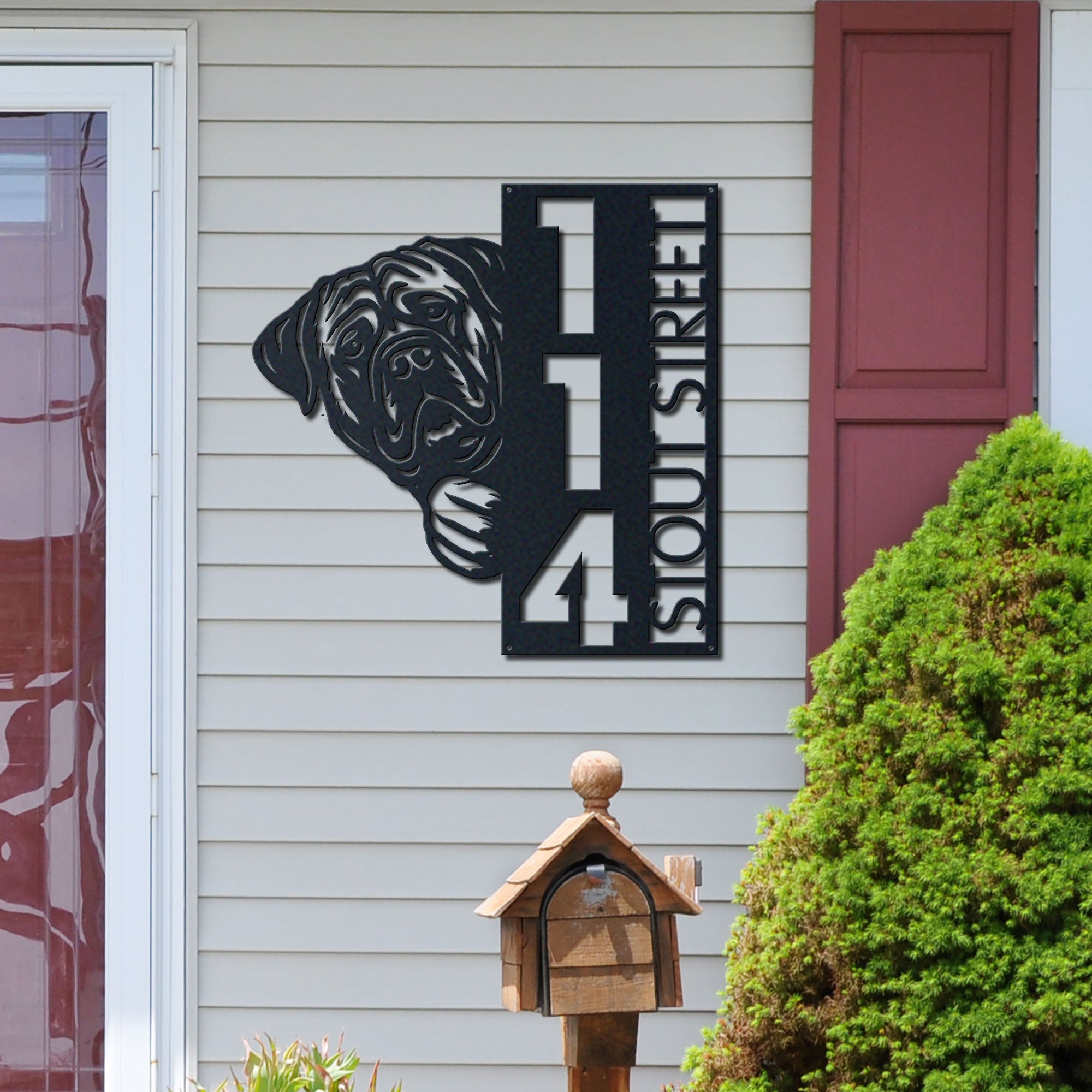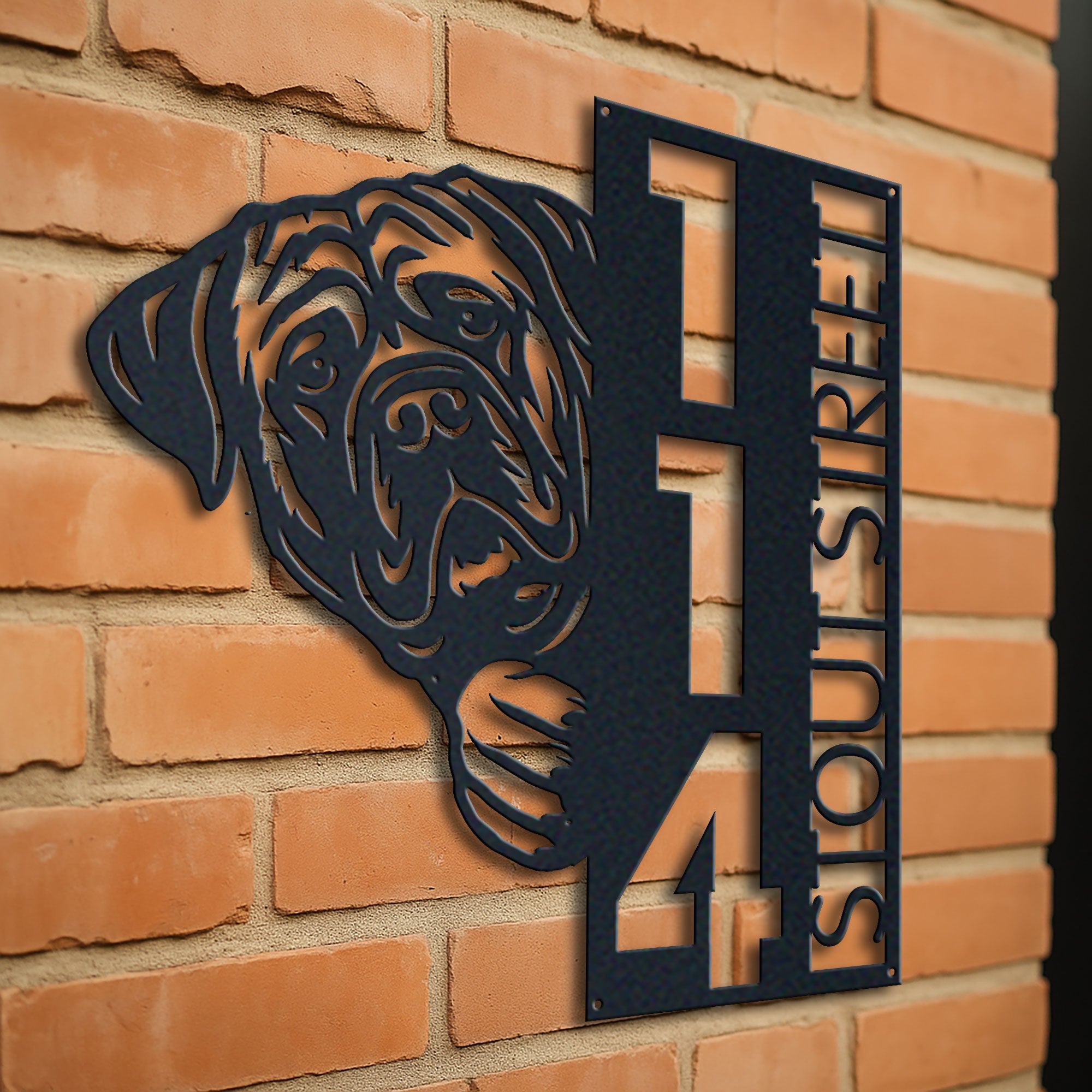 Dogue De Bordeaux. Address Sign | Custom Metal Vertical House Number Plaque | Pet Owner Gift