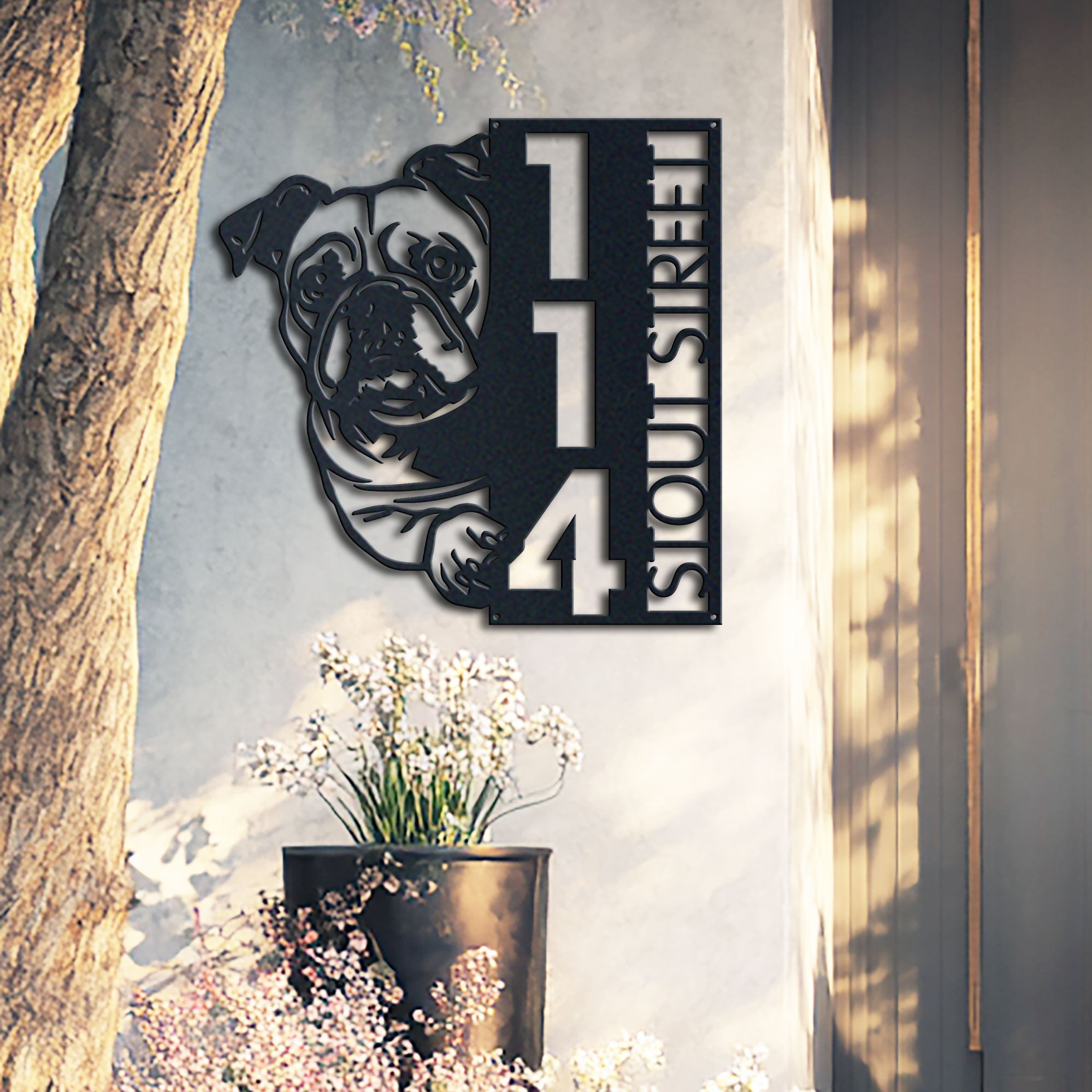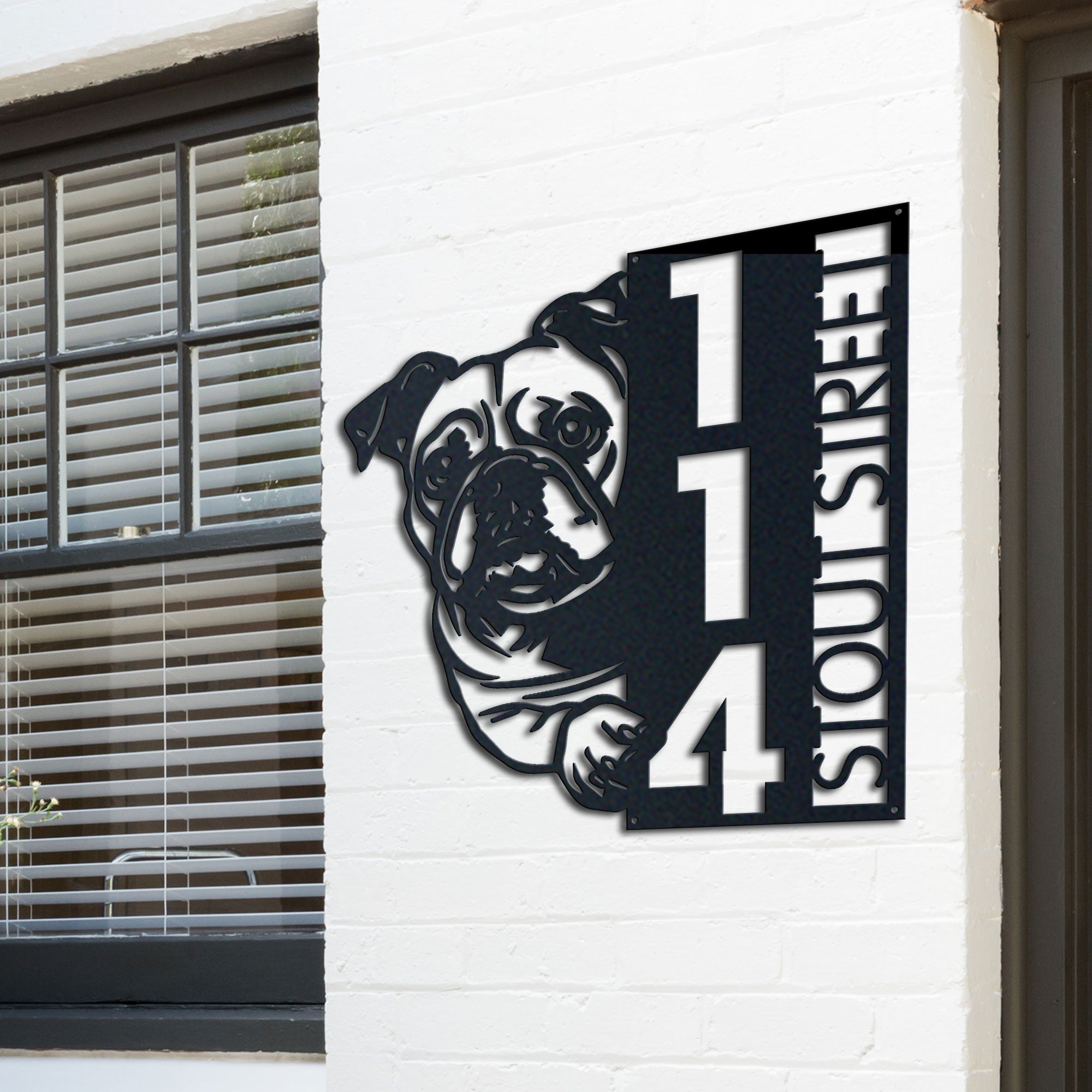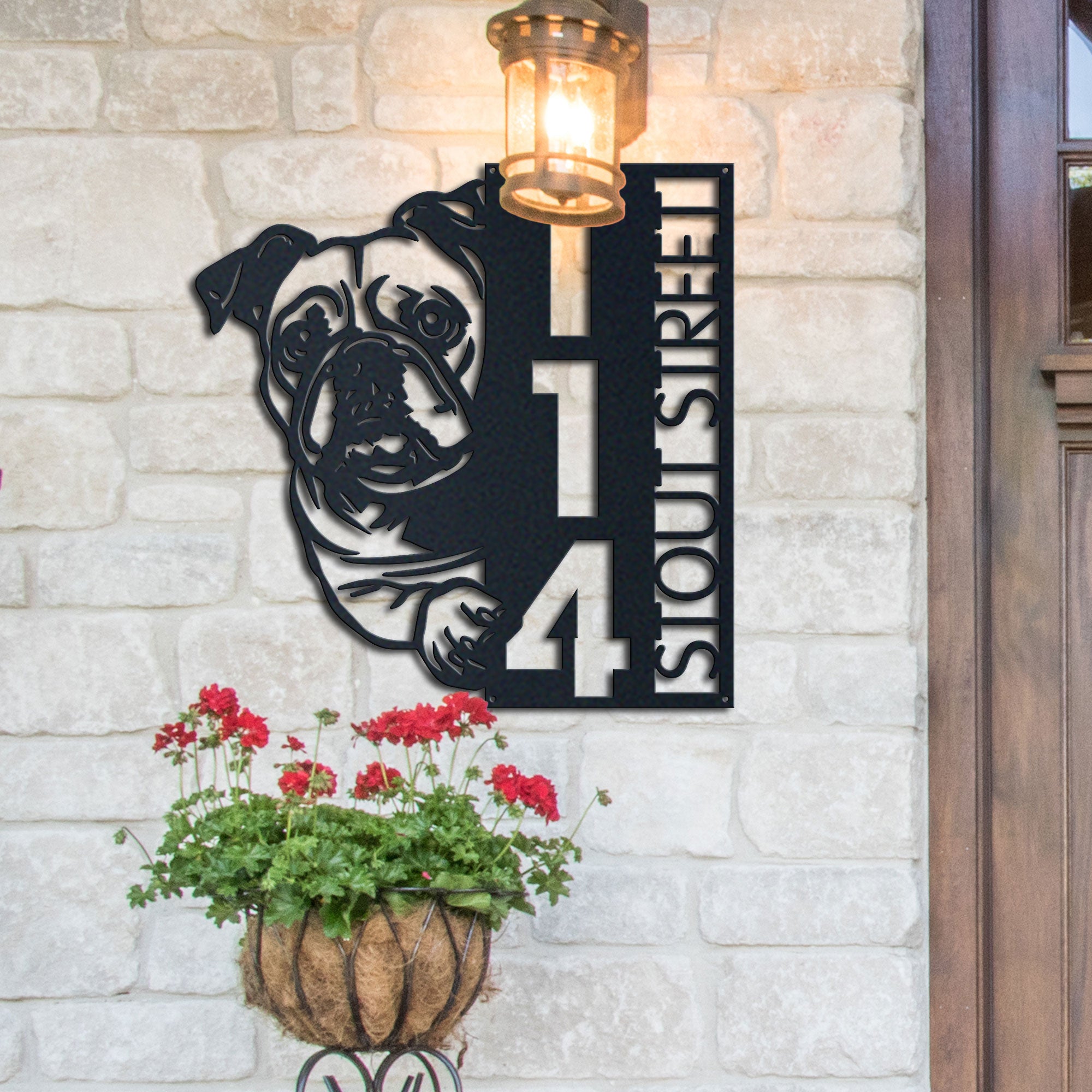 English Bulldog. Address Sign | Custom Metal Vertical House Number Plaque | Pet Owner Gift