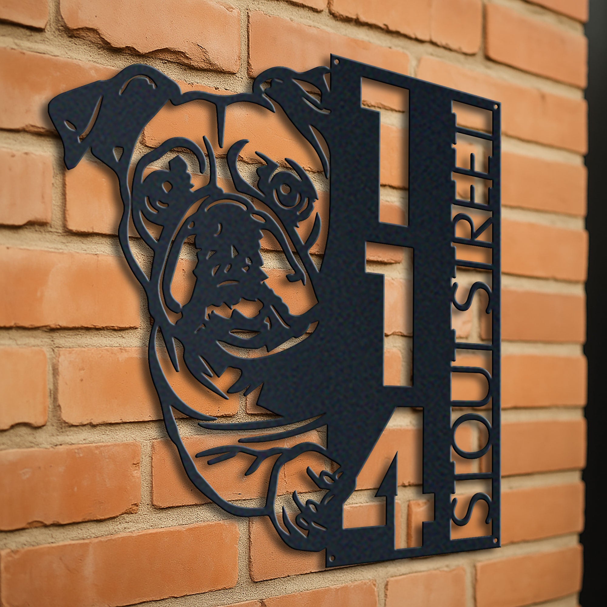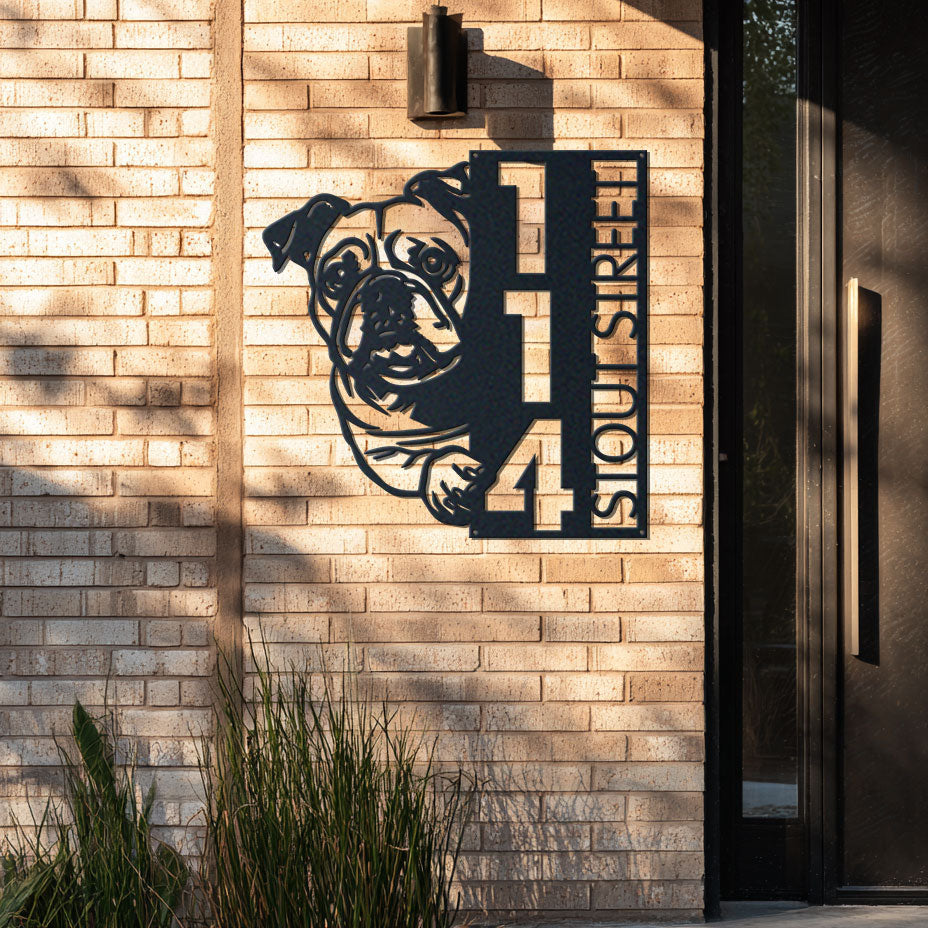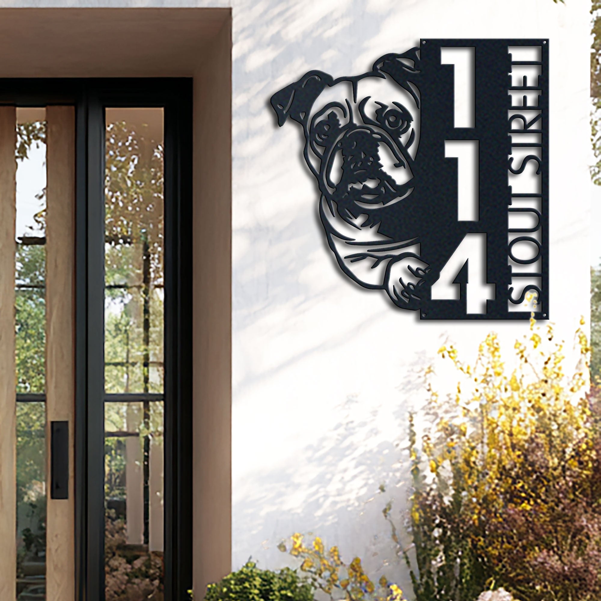 English Bulldog. Address Sign | Custom Metal Vertical House Number Plaque | Pet Owner Gift