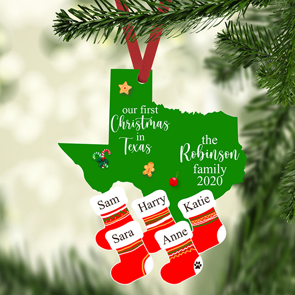 Family Personalized Christmas Ornament Funny First Xmas In New State