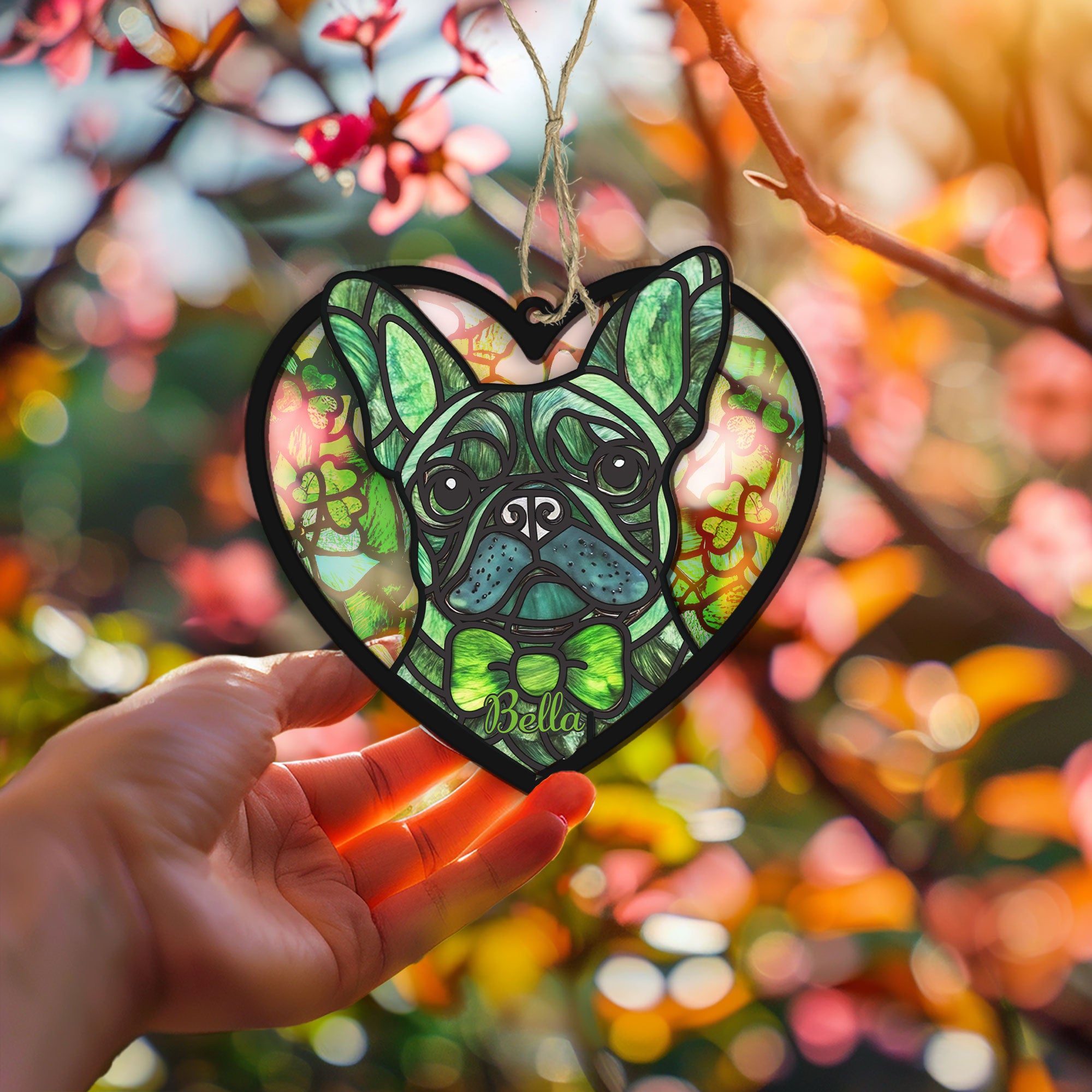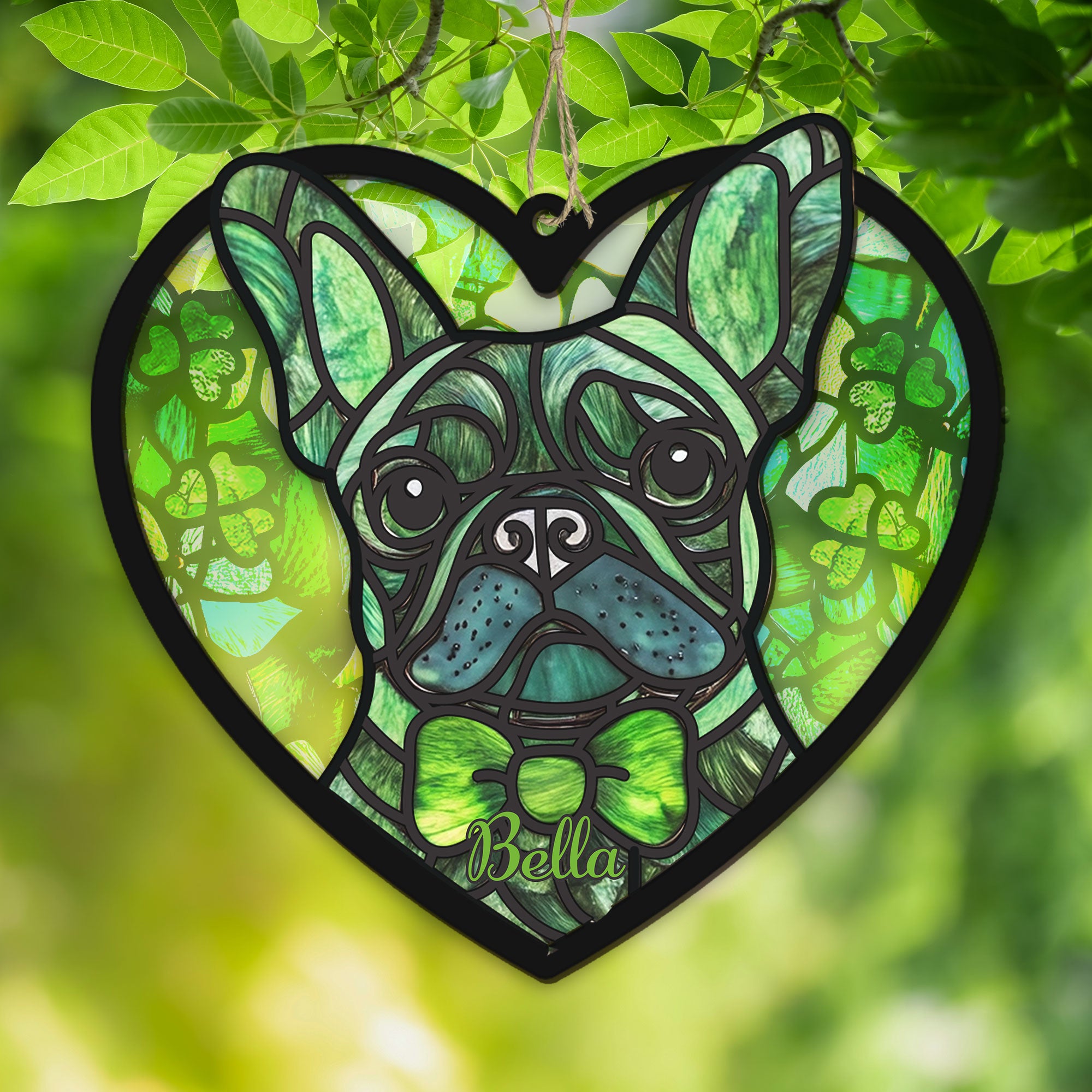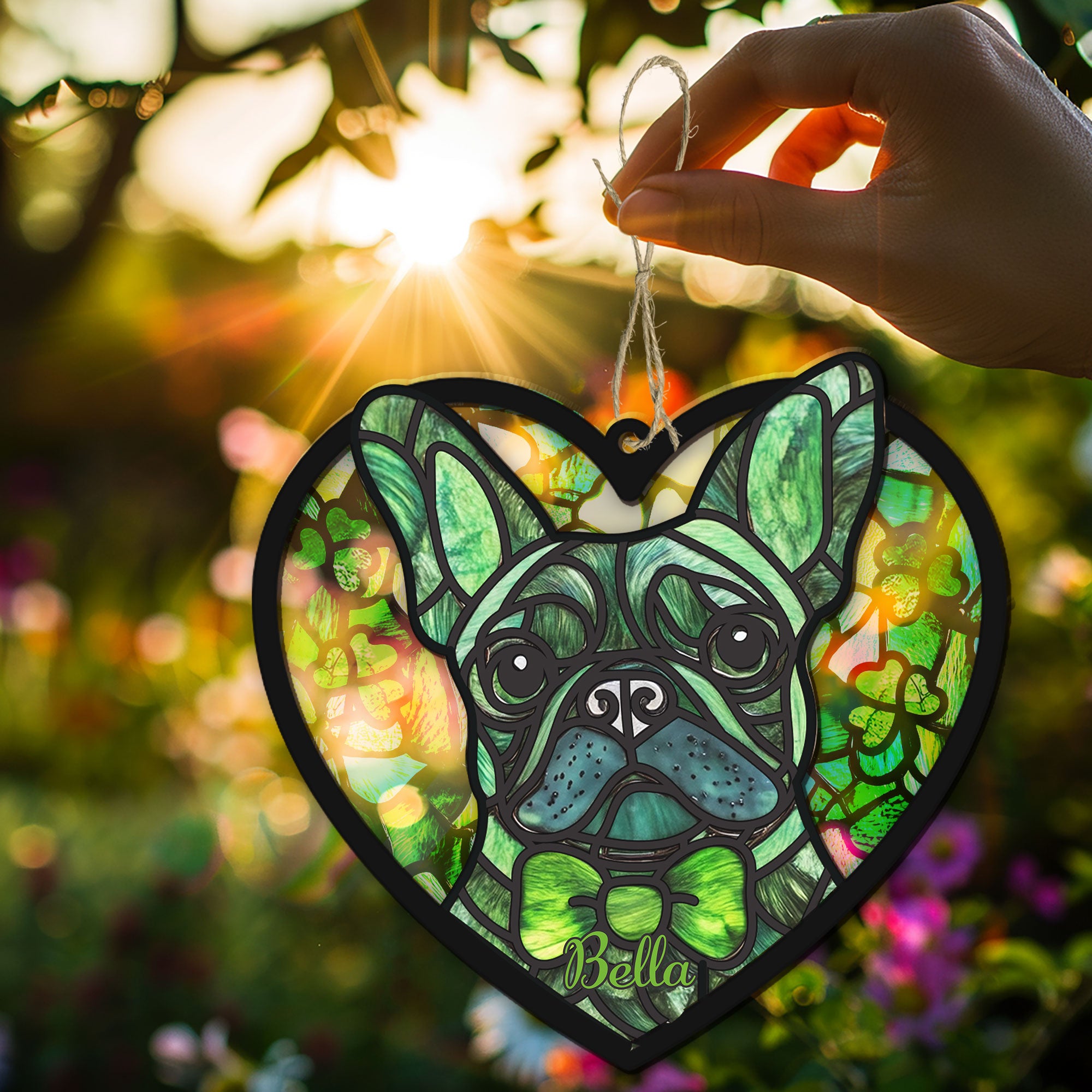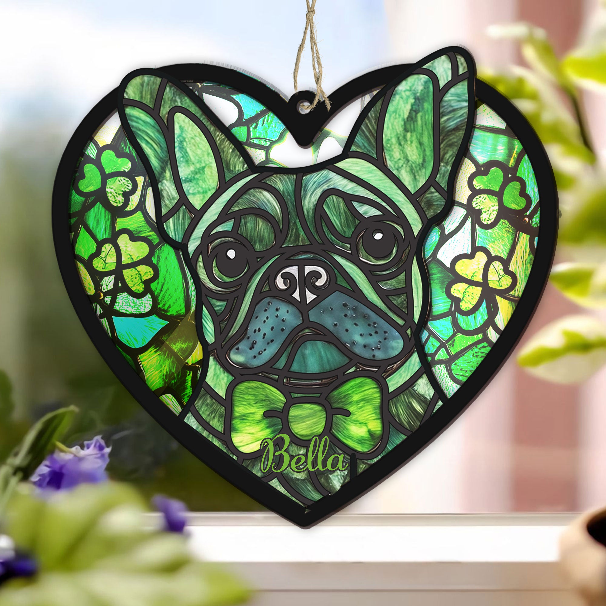 French Bulldog Shamrock Suncatcher Ornament Frenchie Lovers Irish Home Decor St Patrick's Day Gift