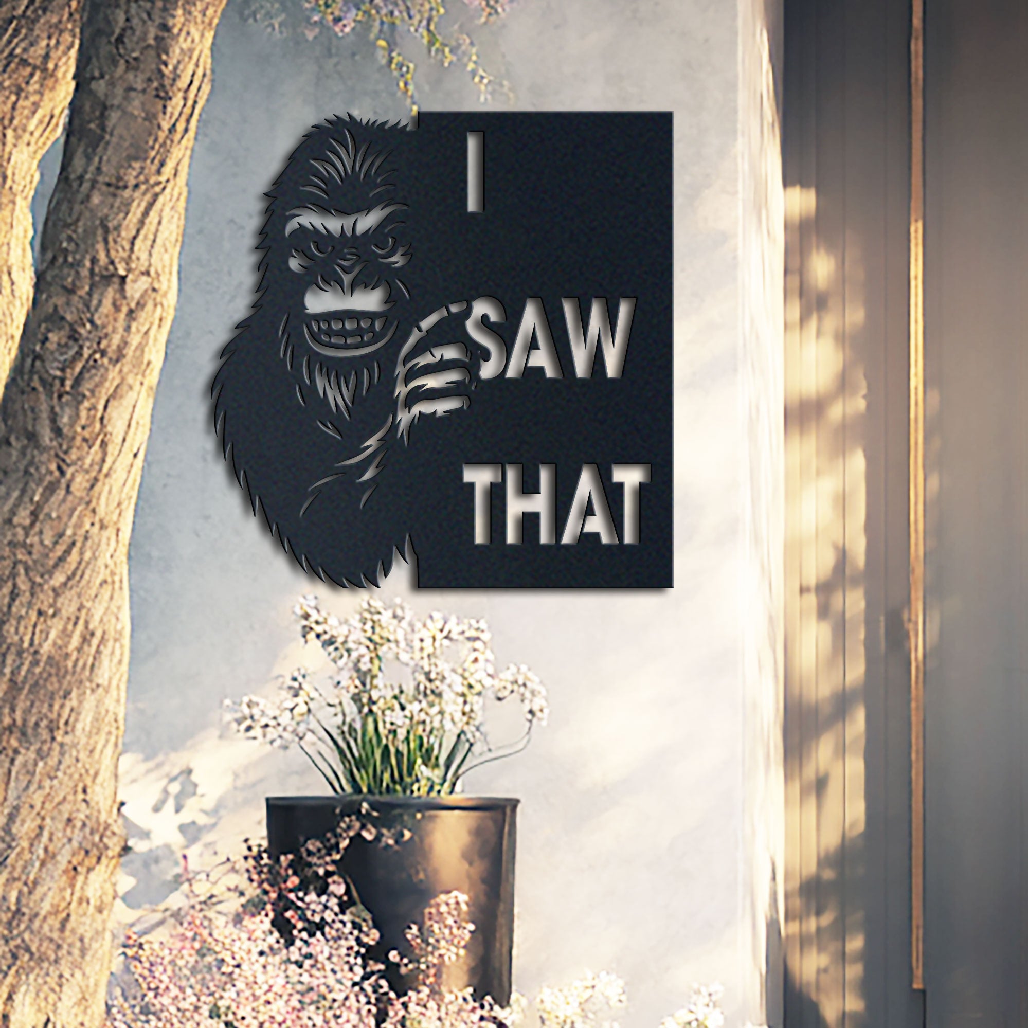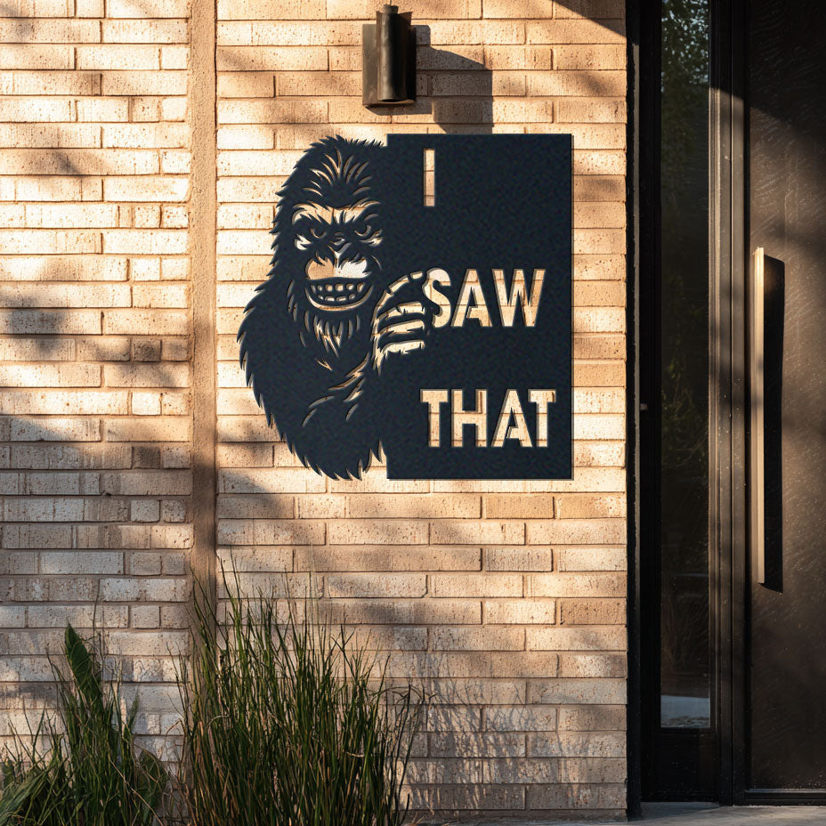 Funny Sasquatch Metal Wall Sign | “I Saw That” Meme Art | Unique Gift for Bigfoot Lovers