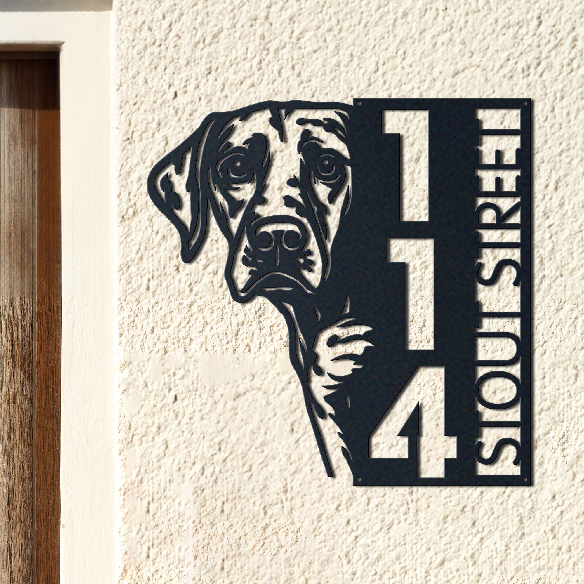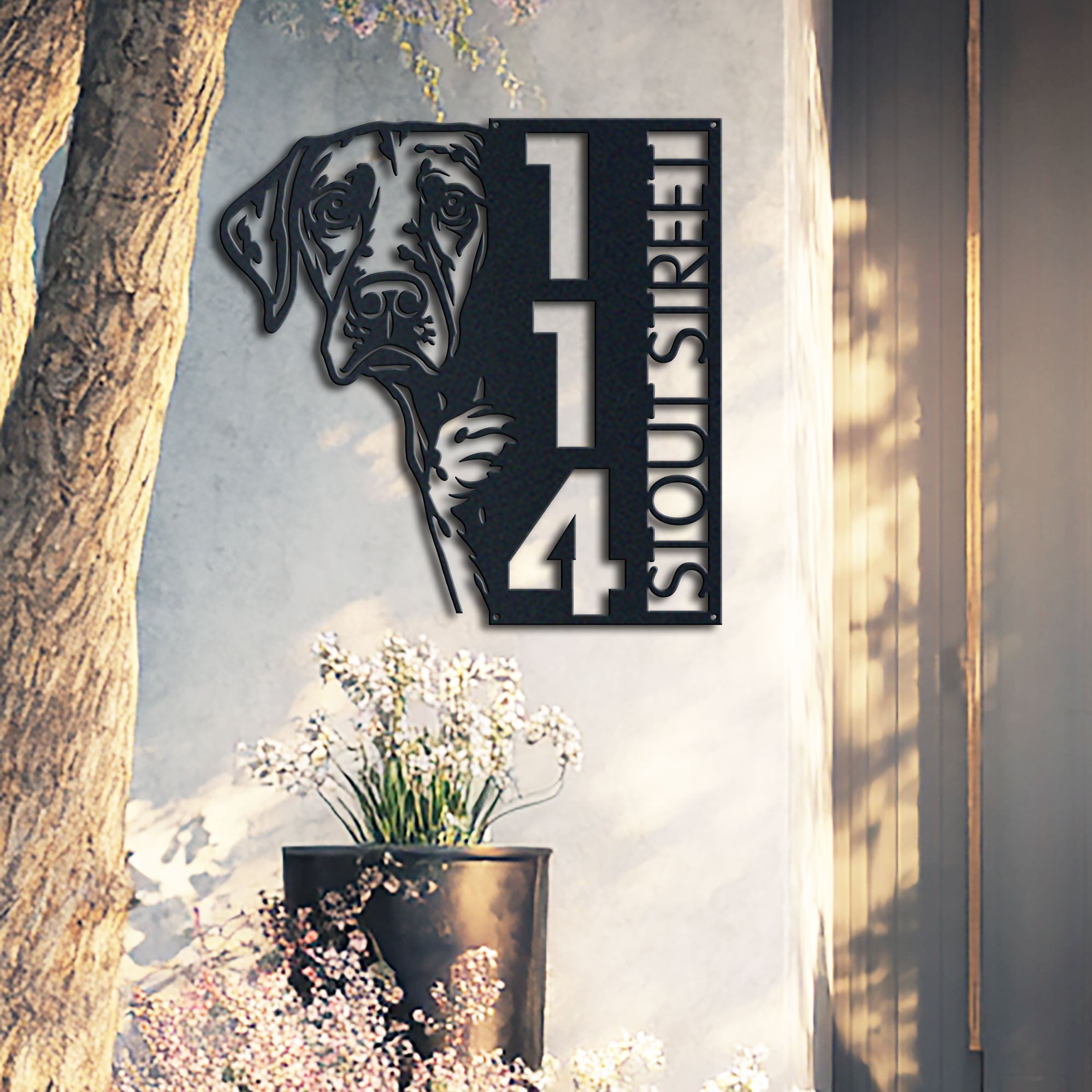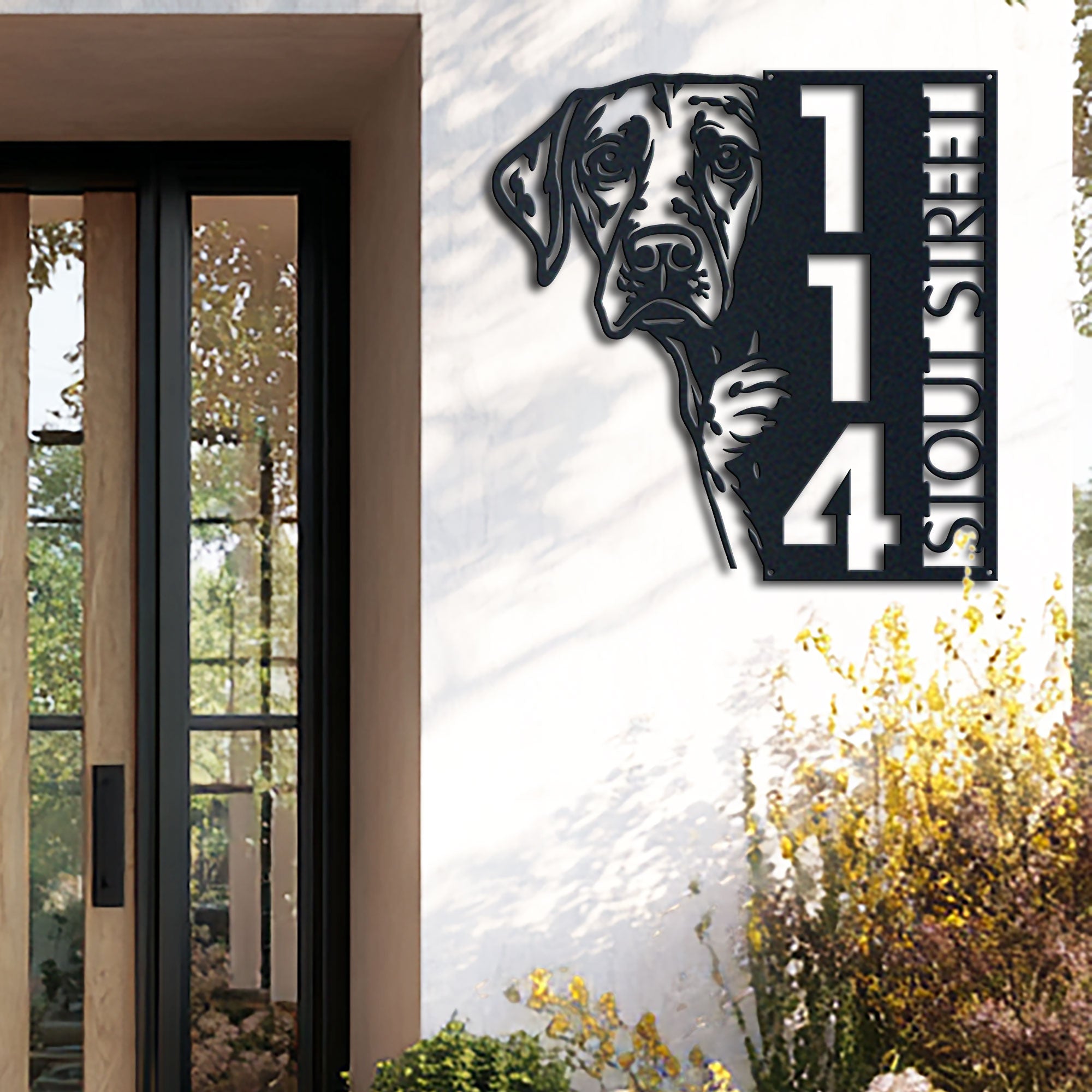 German Shorthair Pointer Address Sign | Custom Metal Vertical House Number Plaque | Pet Owner Gift