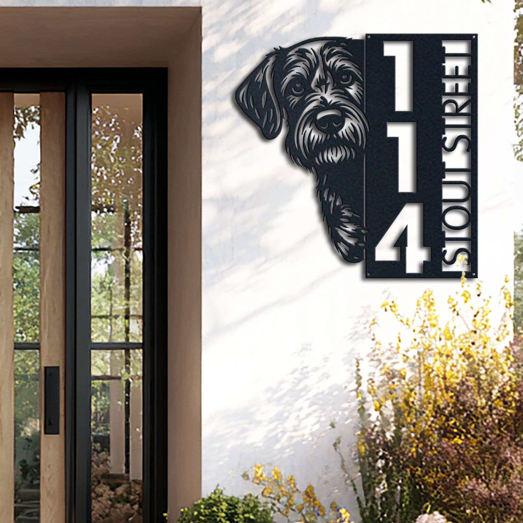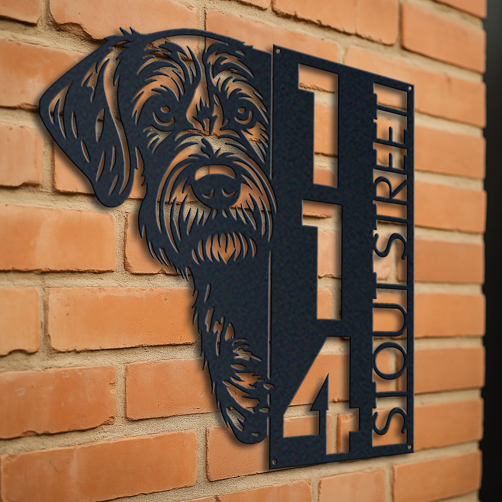 German Wirehaired Pointer Address Sign | Custom Metal Vertical House Number Plaque | Pet Owner Gift