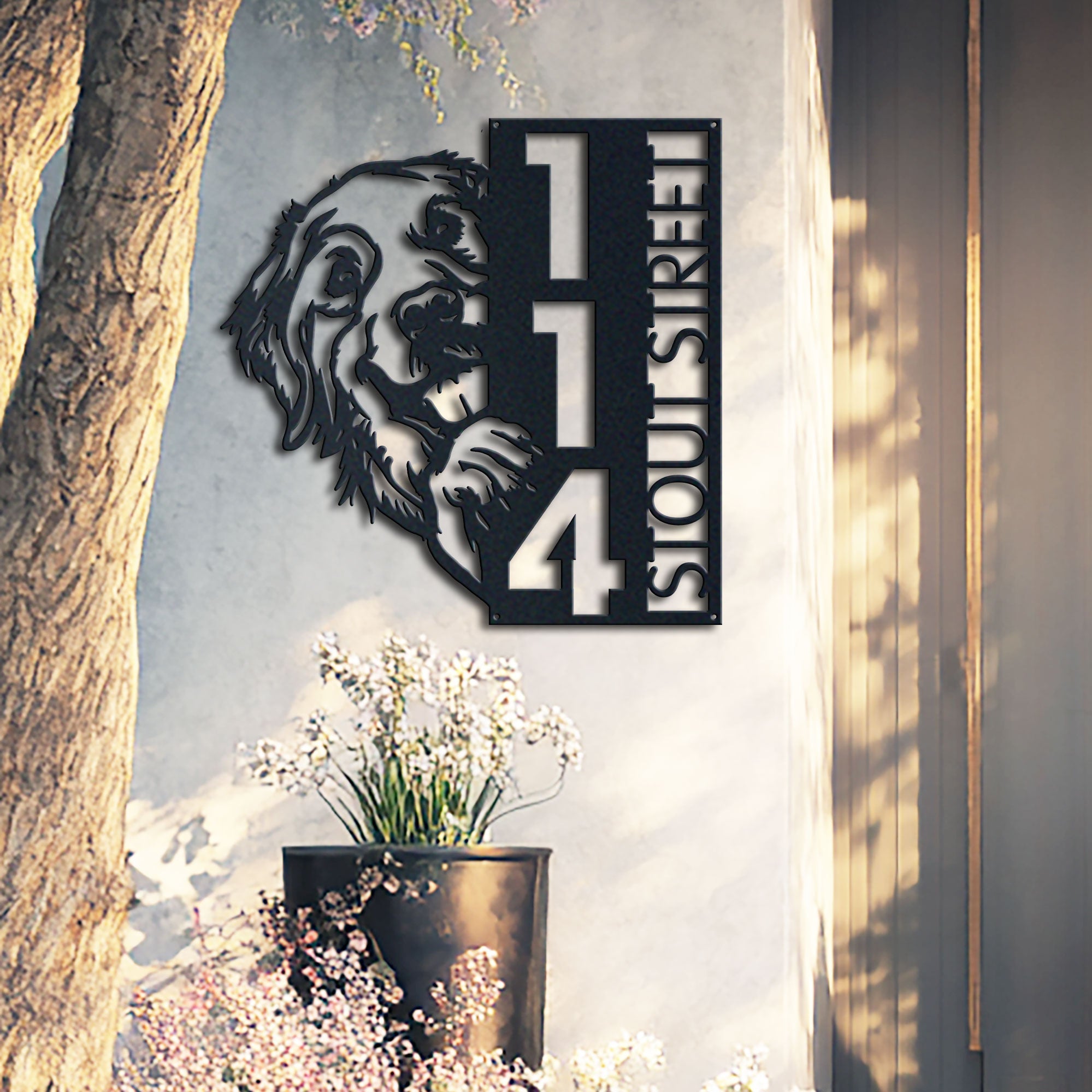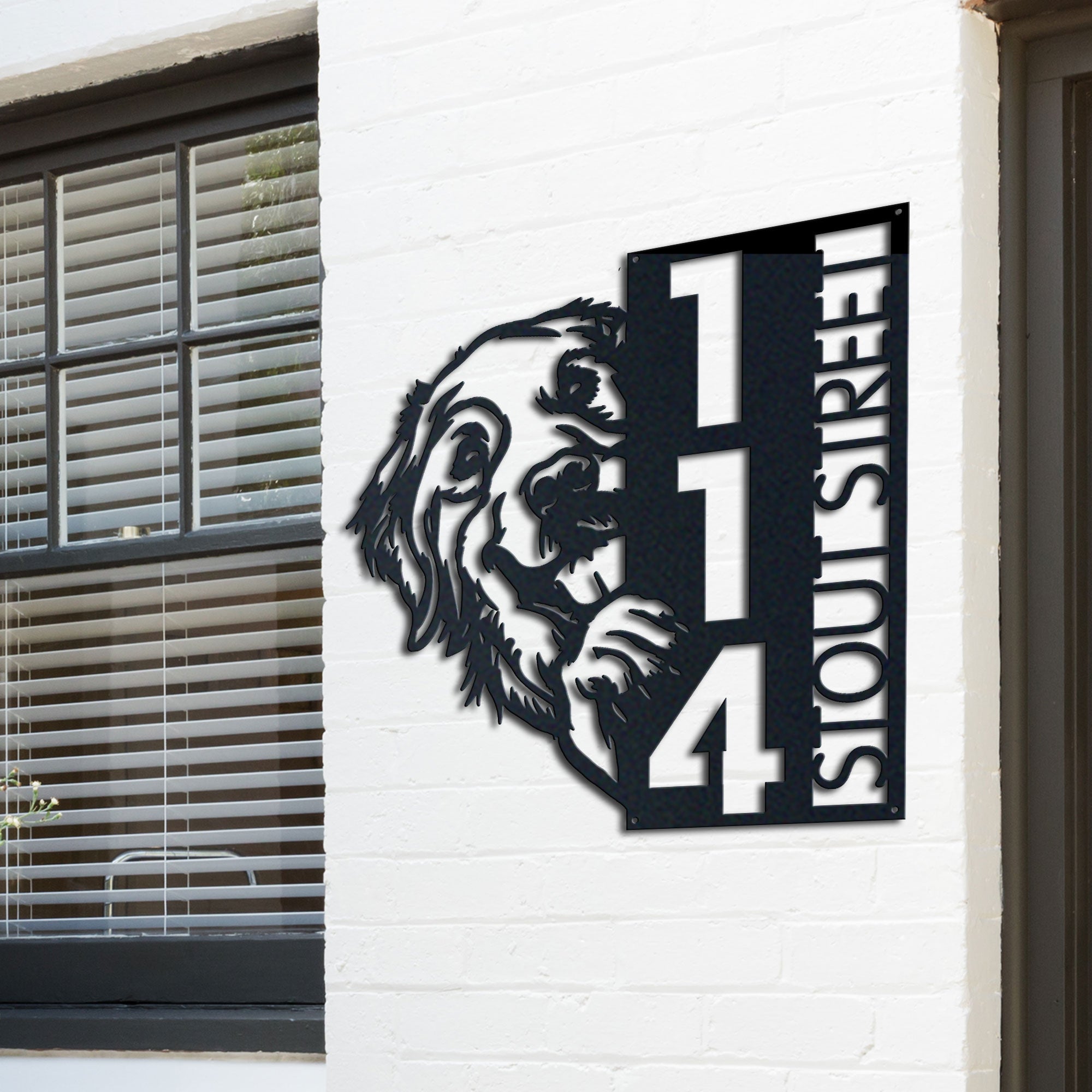 Golden Retriever Address Sign | Custom Metal Vertical House Number Plaque | Pet Owner Gift 2
