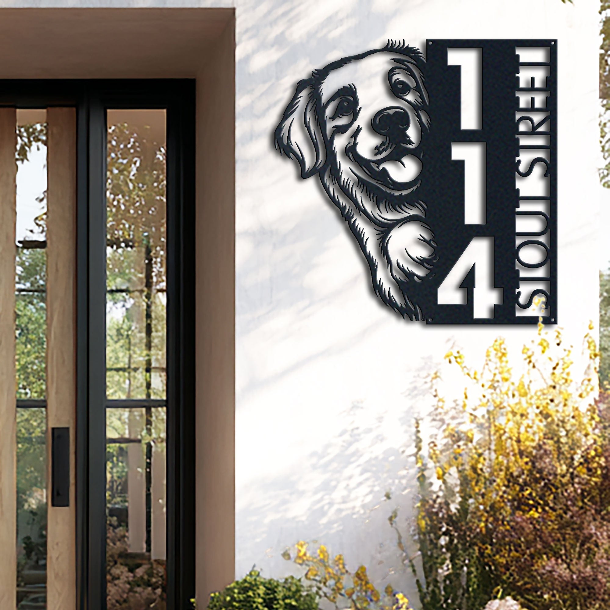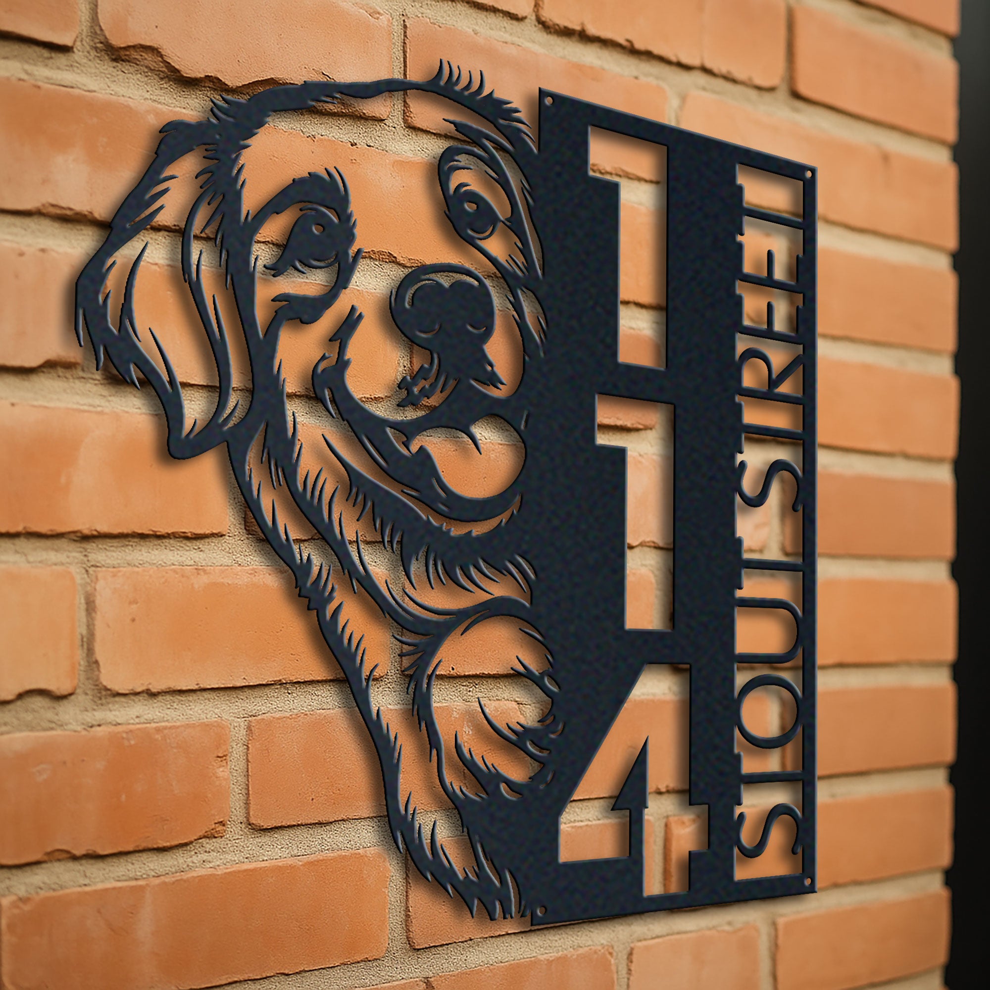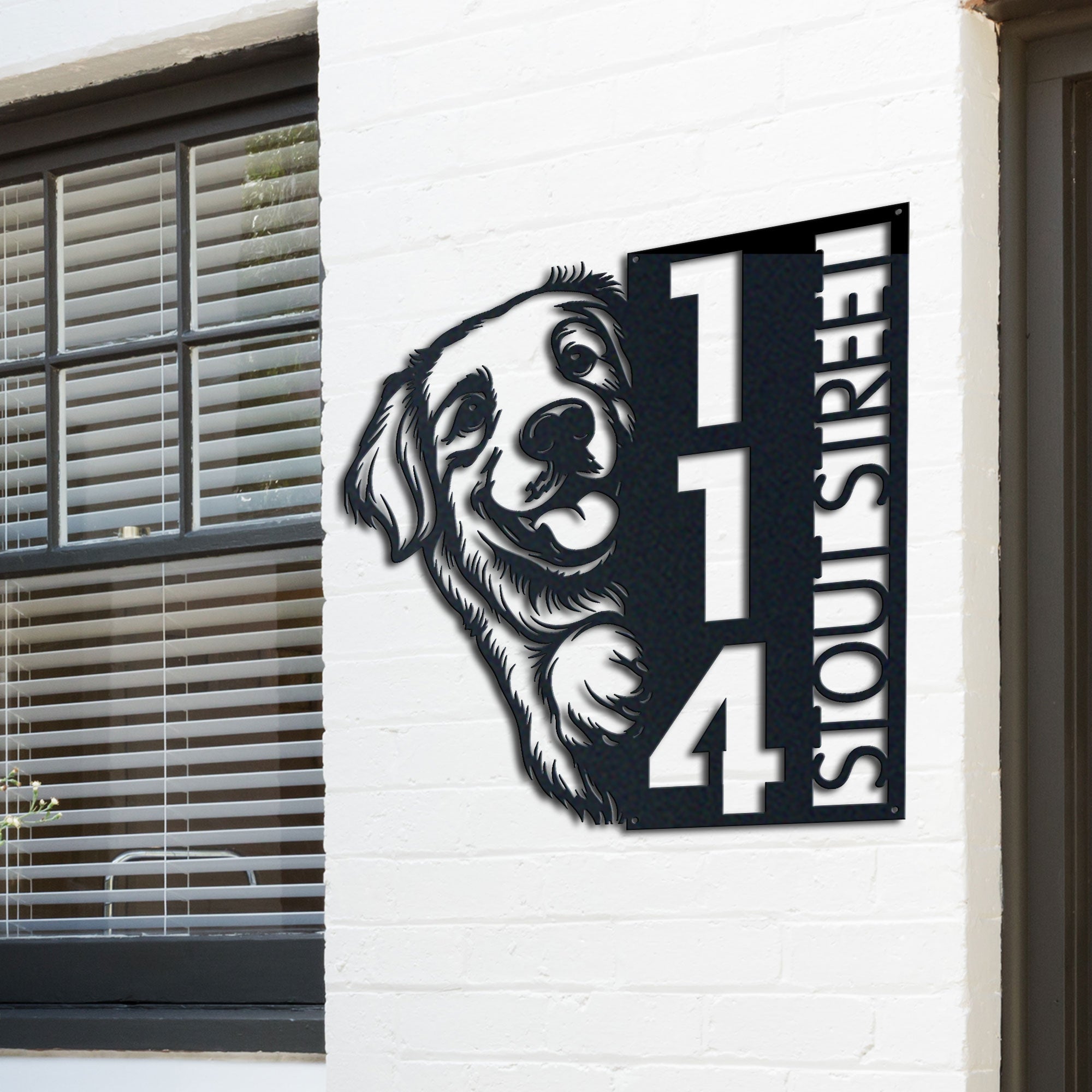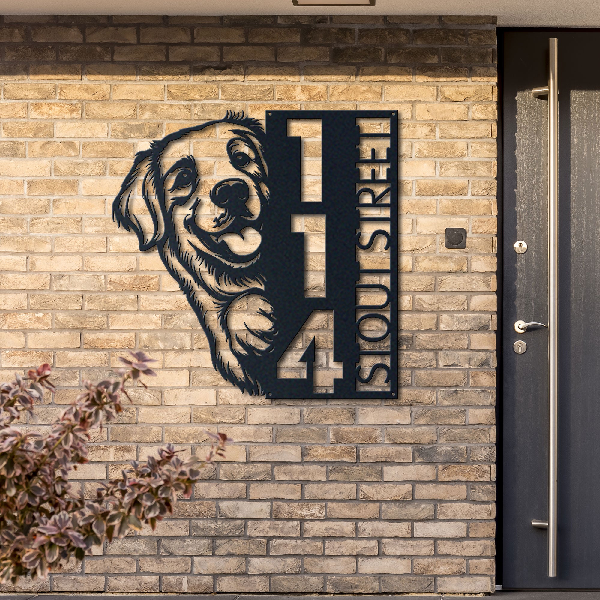 Golden Retriever Address Sign | Custom Metal Vertical House Number Plaque | Pet Owner Gift 3