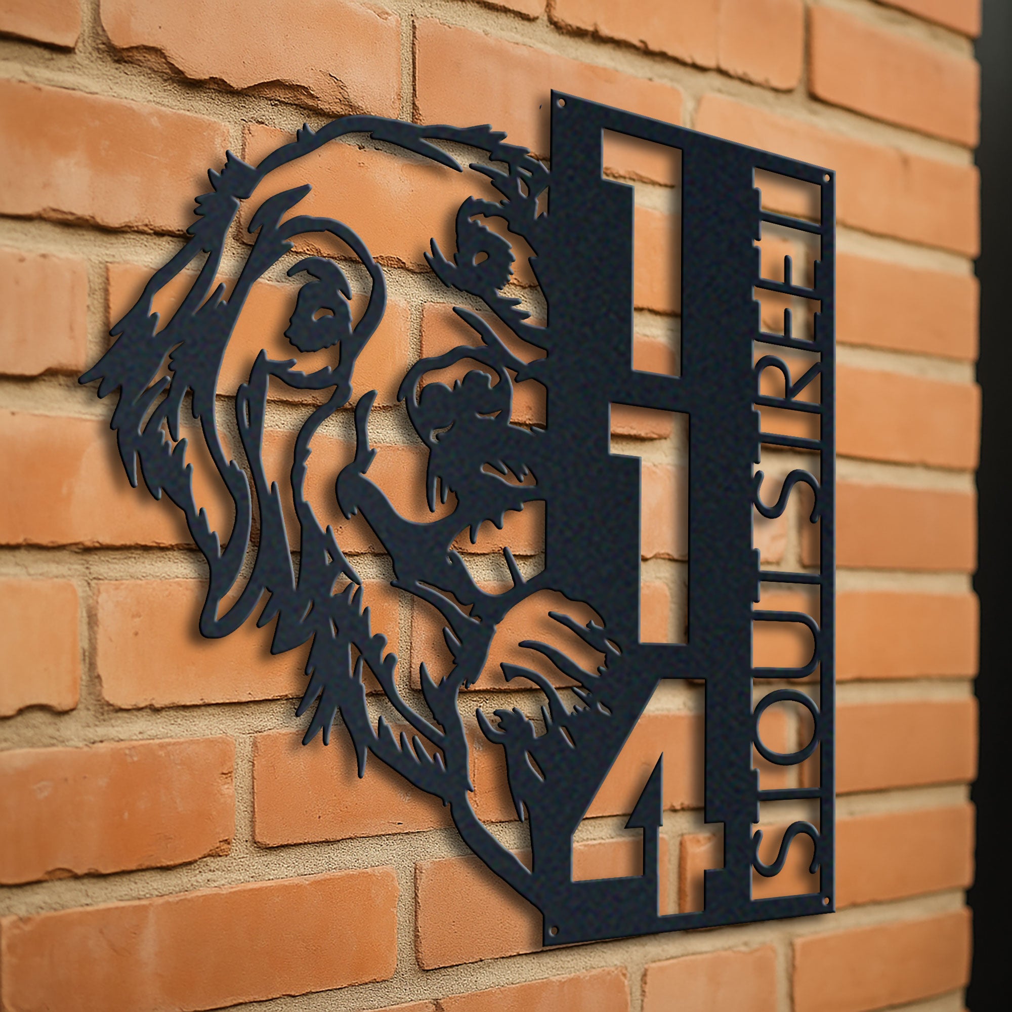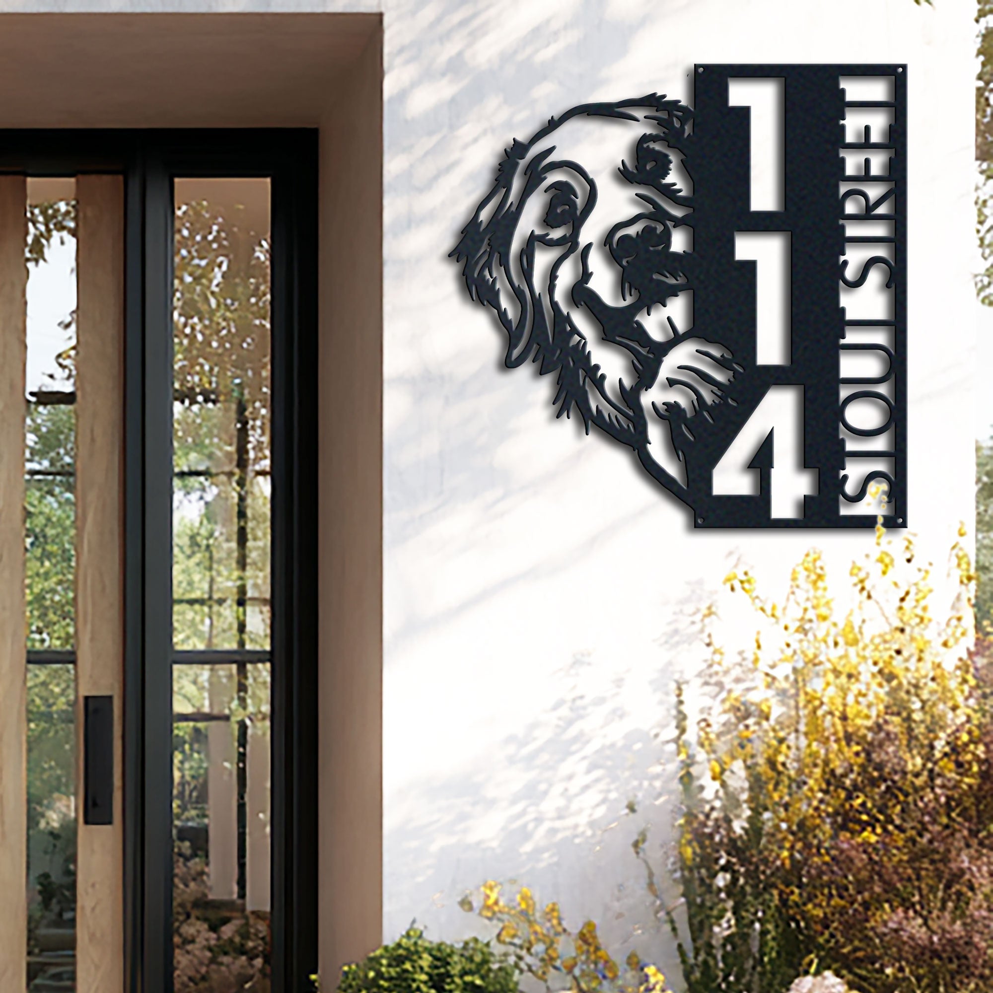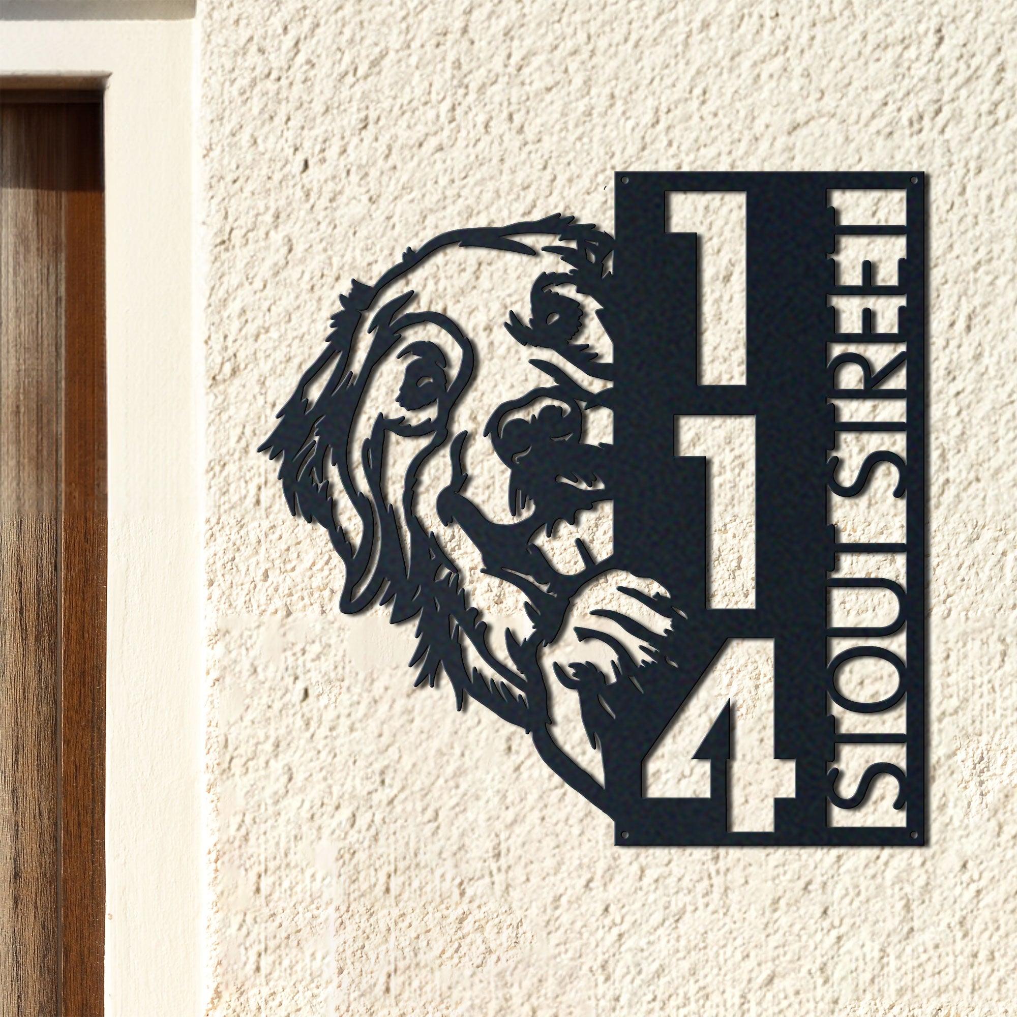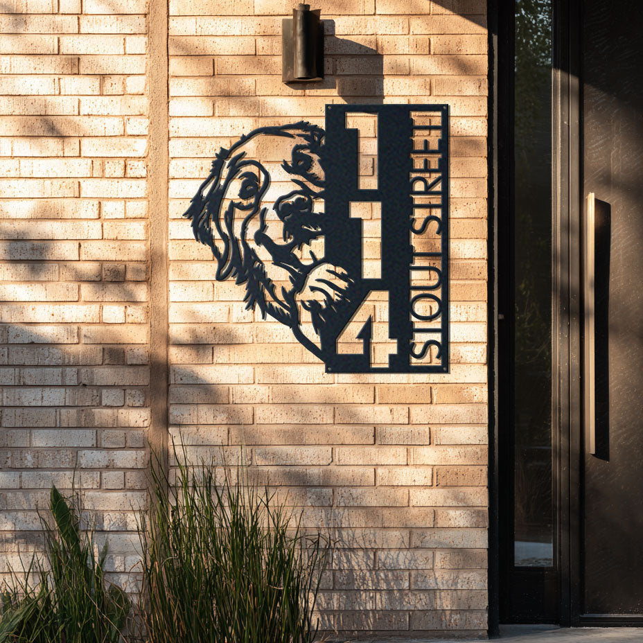 Golden Retrienver Address Sign | Custom Metal Vertical House Number Plaque | Pet Owner Gift