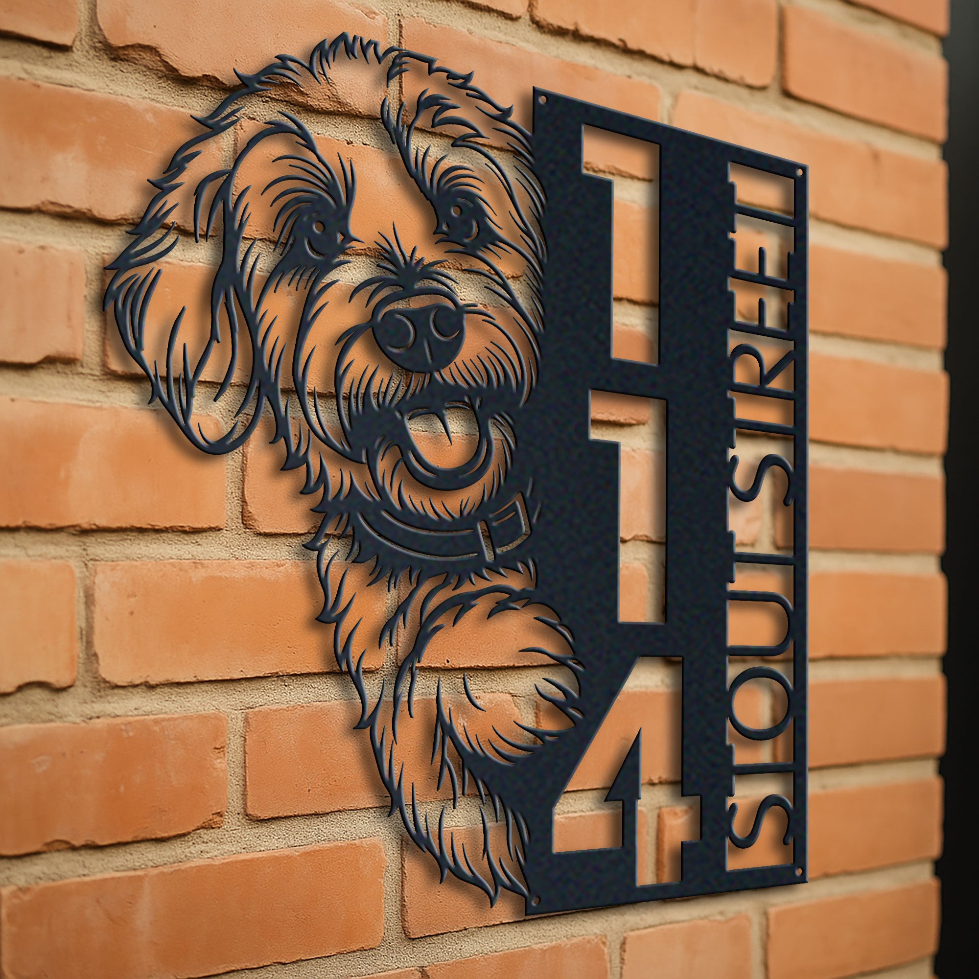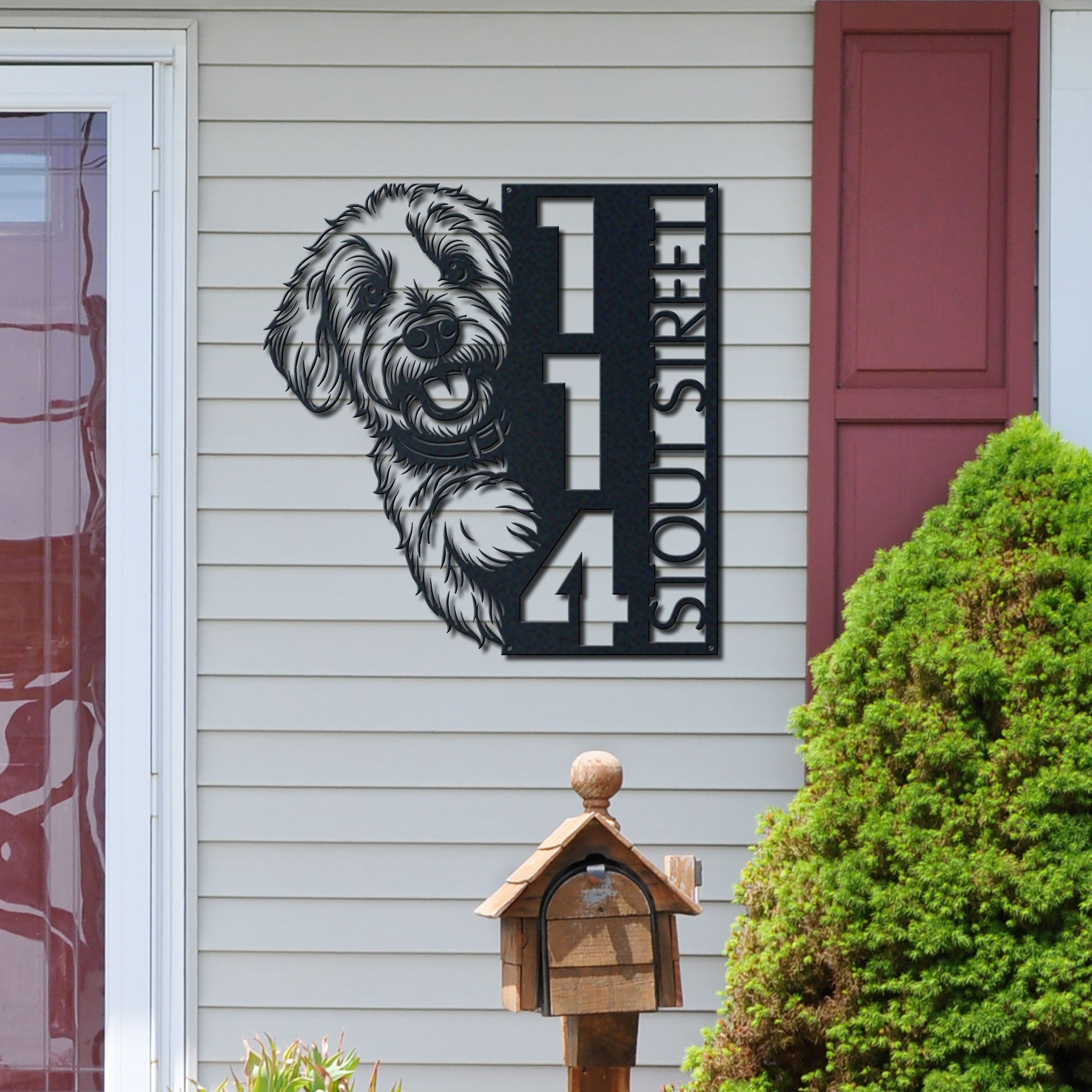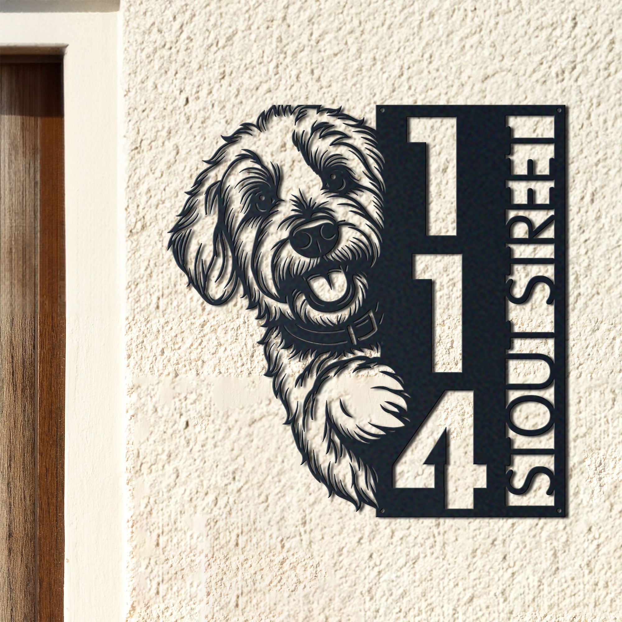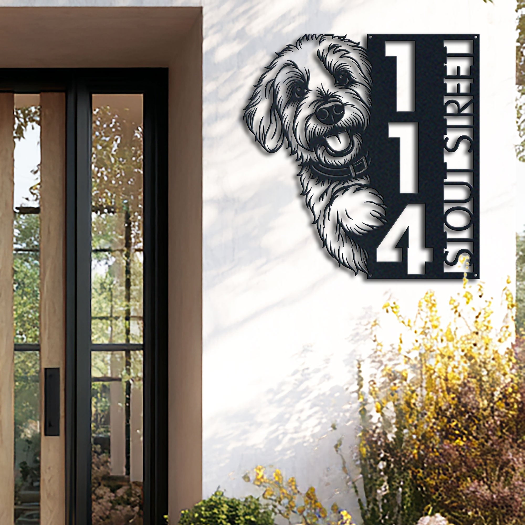 Goldendoodle Address Sign | Custom Metal Vertical House Number Plaque | Pet Owner Gift 1