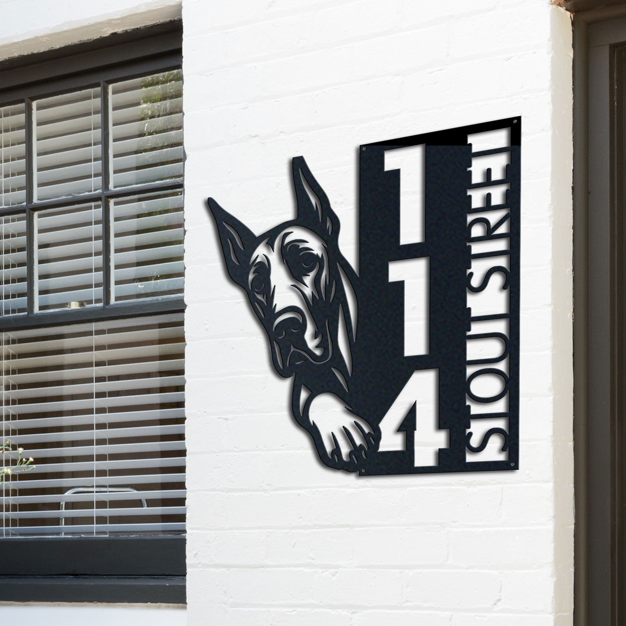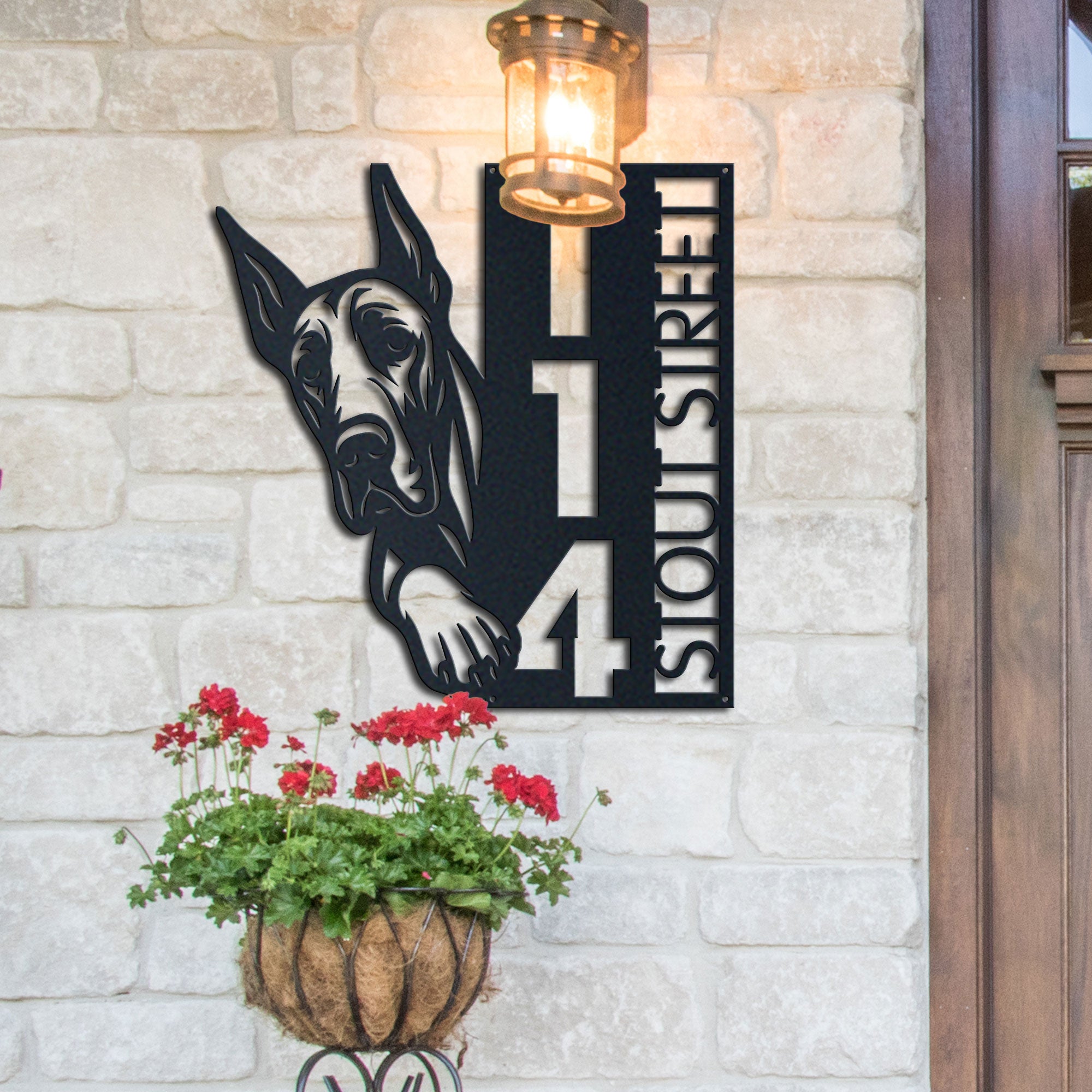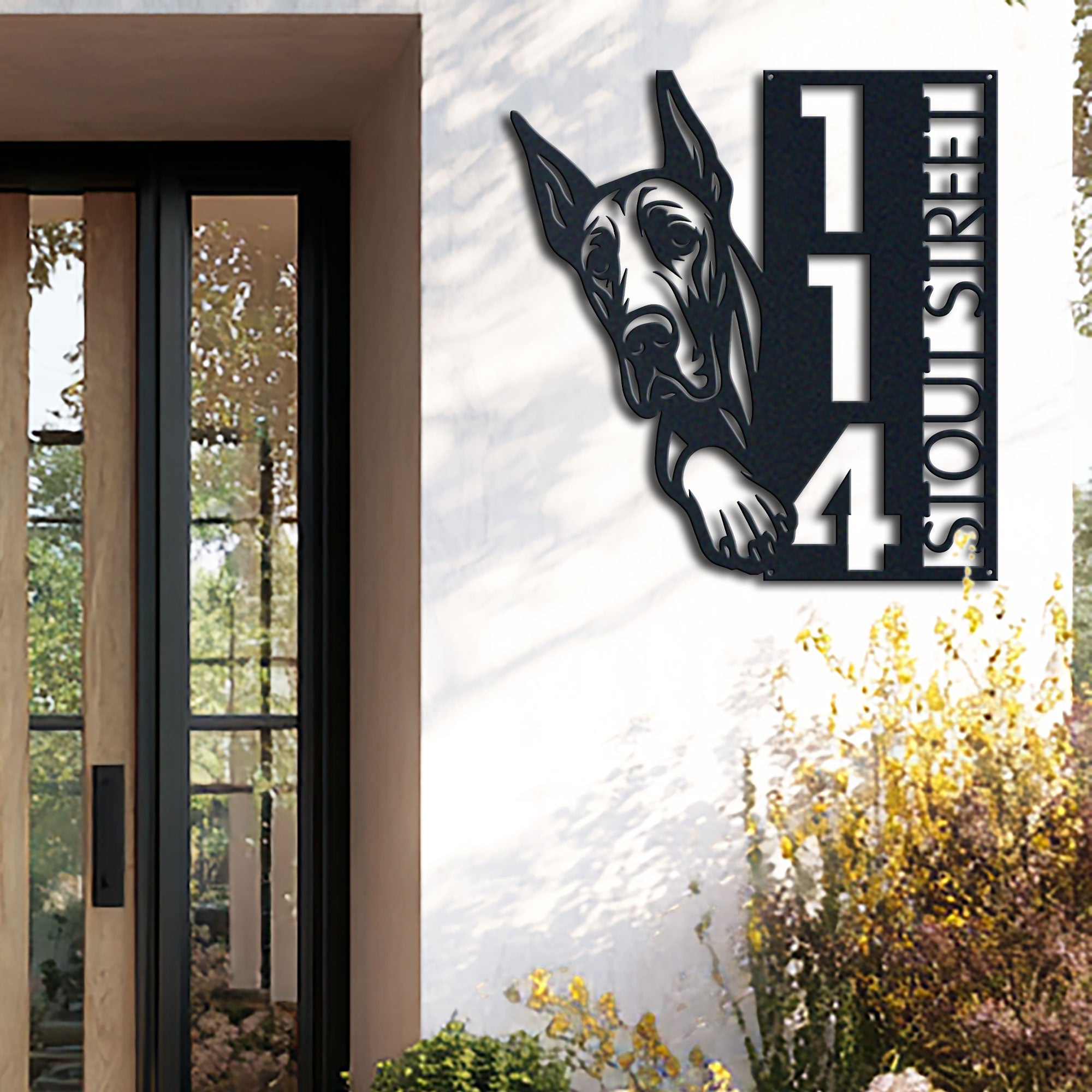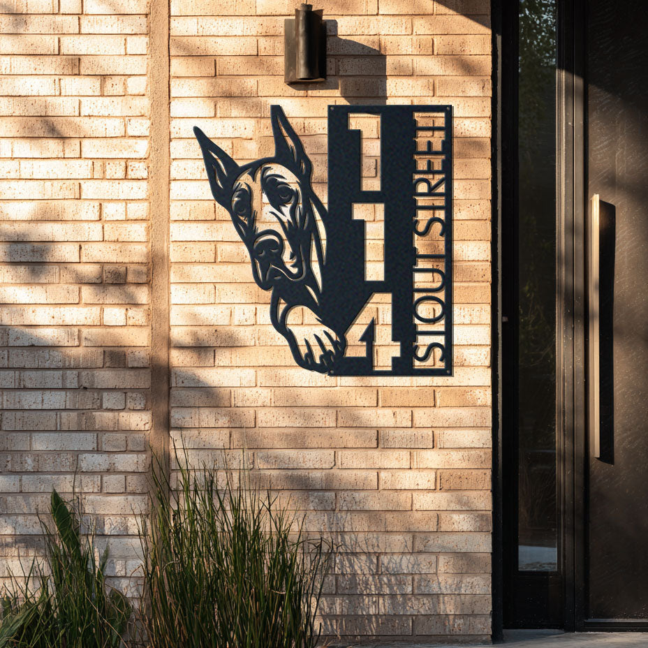 Great Dane Address Sign | Custom Metal Vertical House Number Plaque | Pet Owner Gift 2