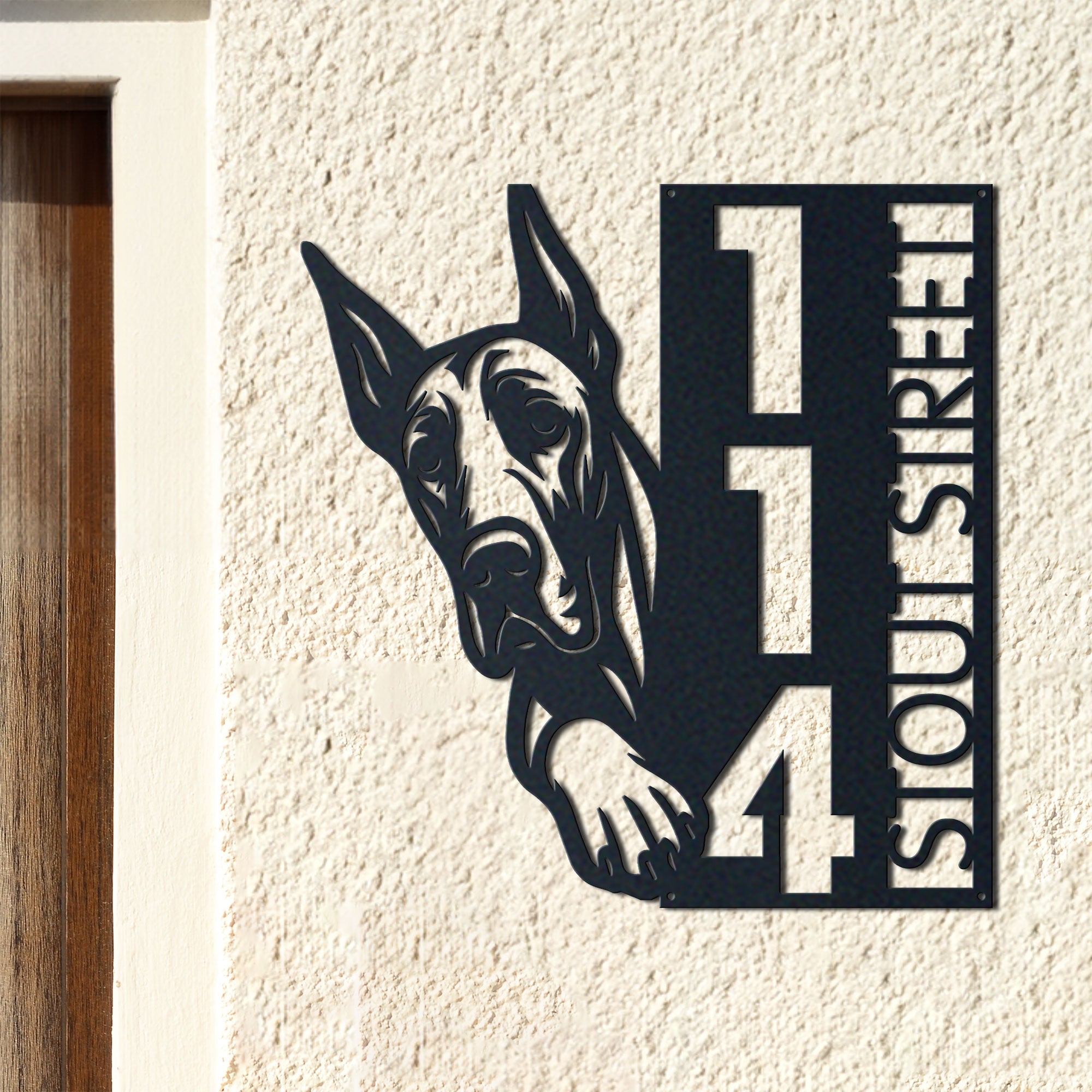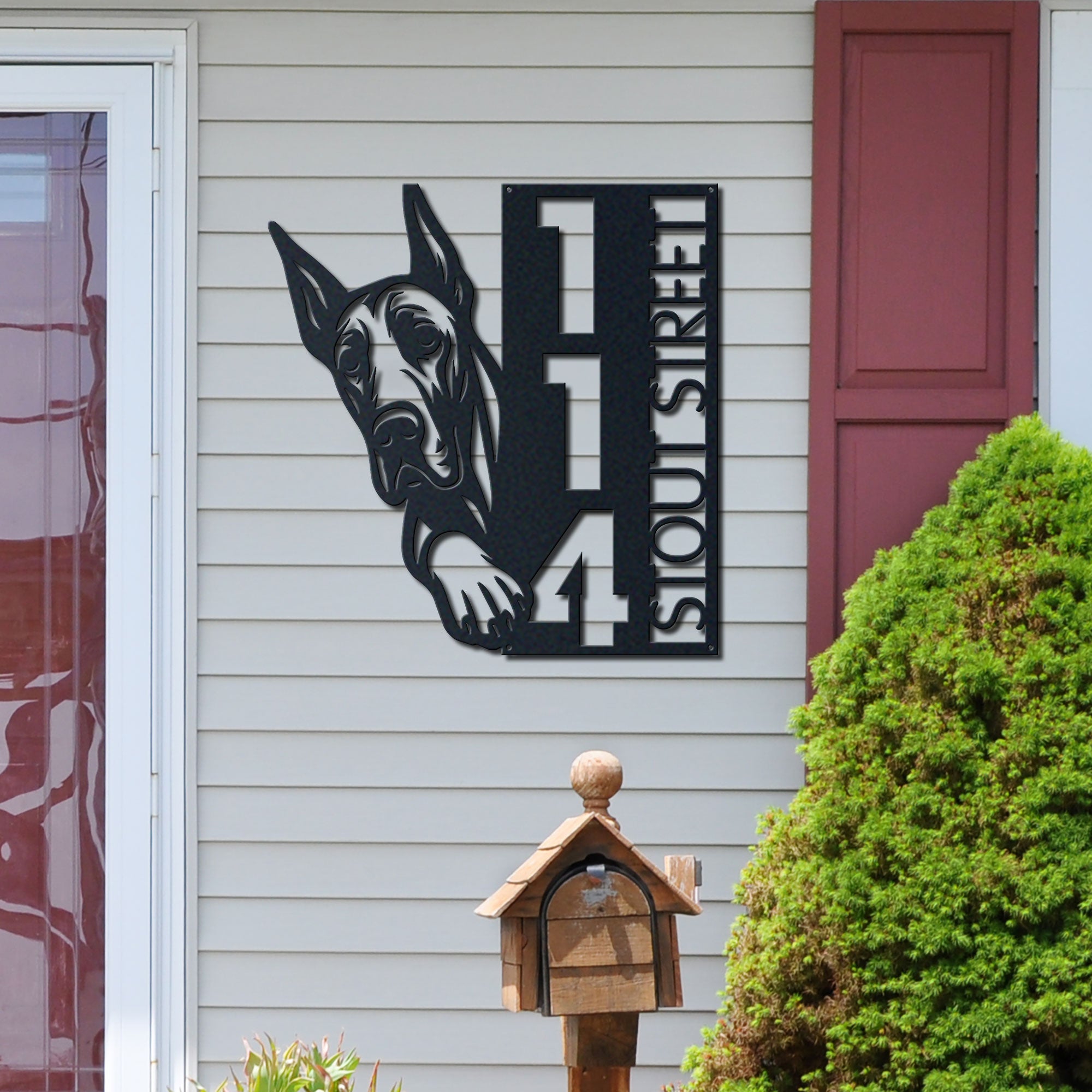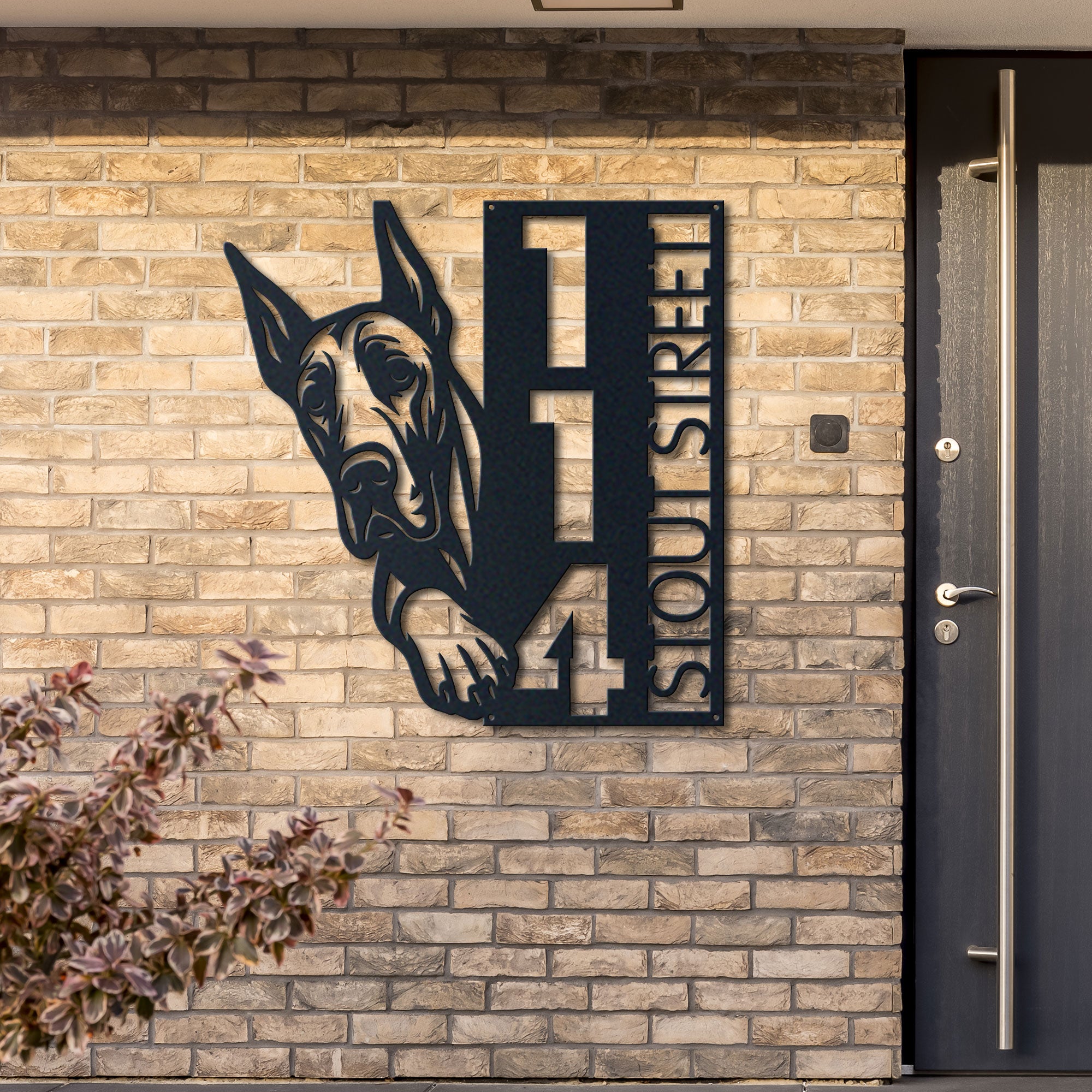 Great Dane Address Sign | Custom Metal Vertical House Number Plaque | Pet Owner Gift 2