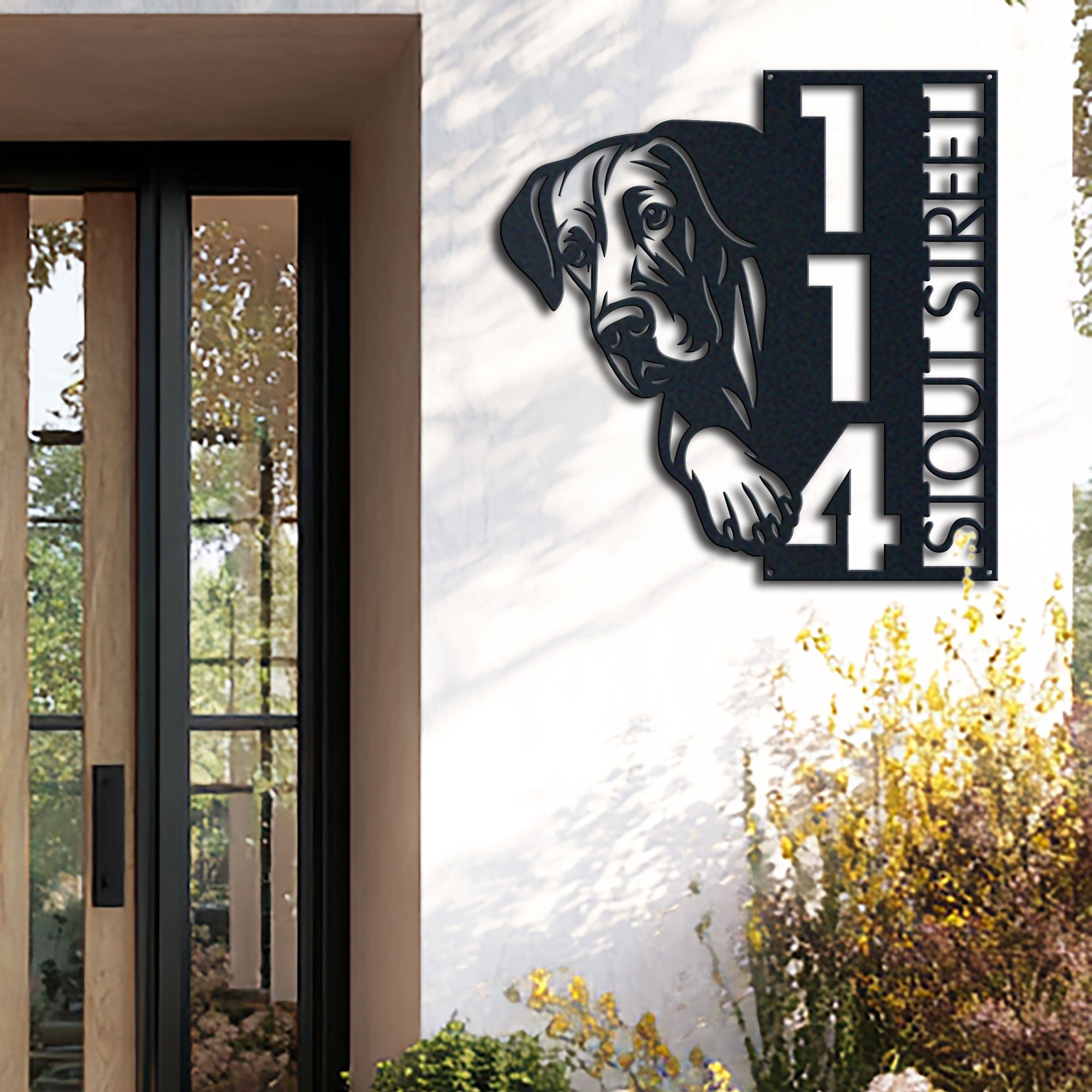 Great Dane Floppy Eared Address Sign | Custom Metal Vertical House Number Plaque | Pet Owner Gift 2