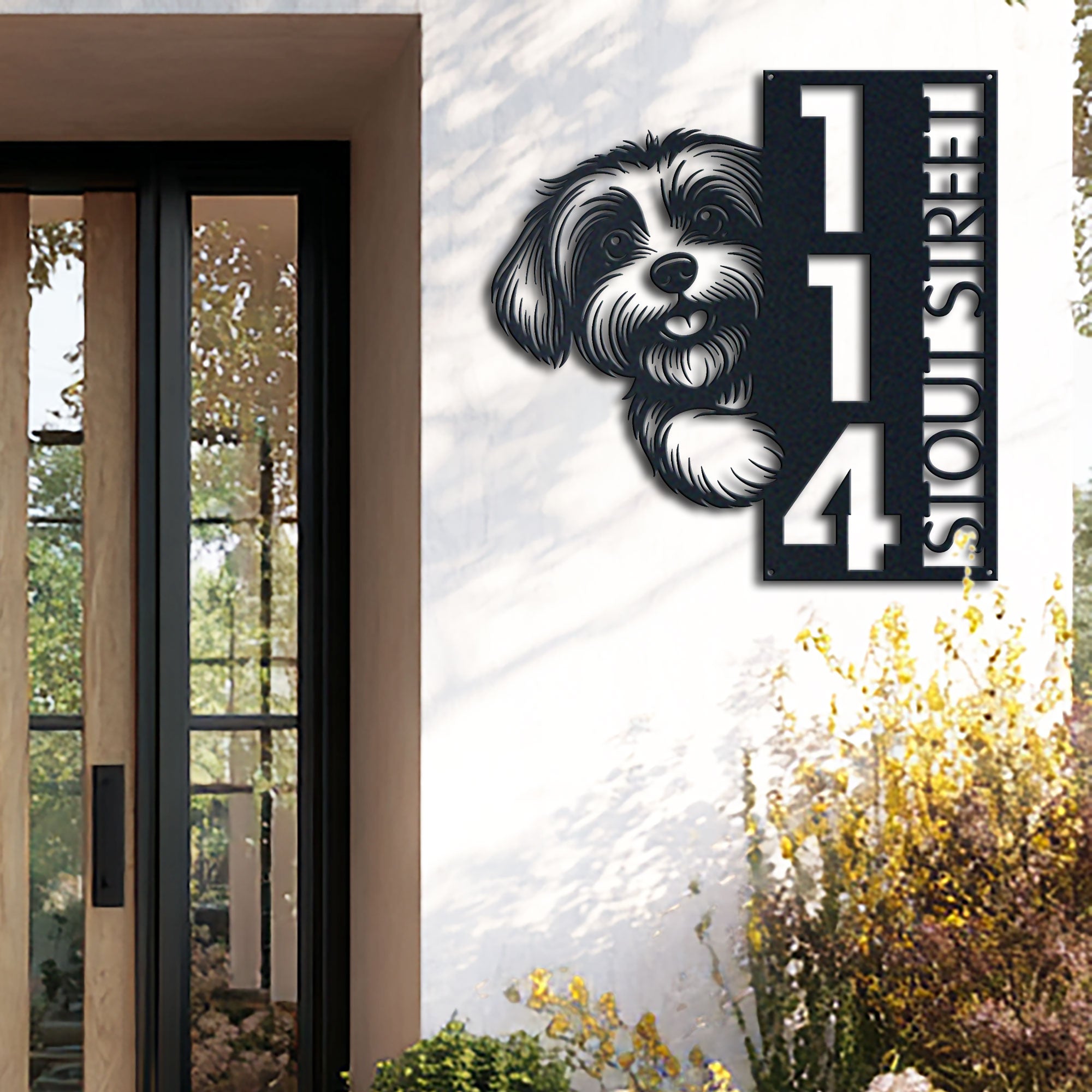 Havanese Address Sign | Custom Metal Vertical House Number Plaque | Pet Owner Gift 2