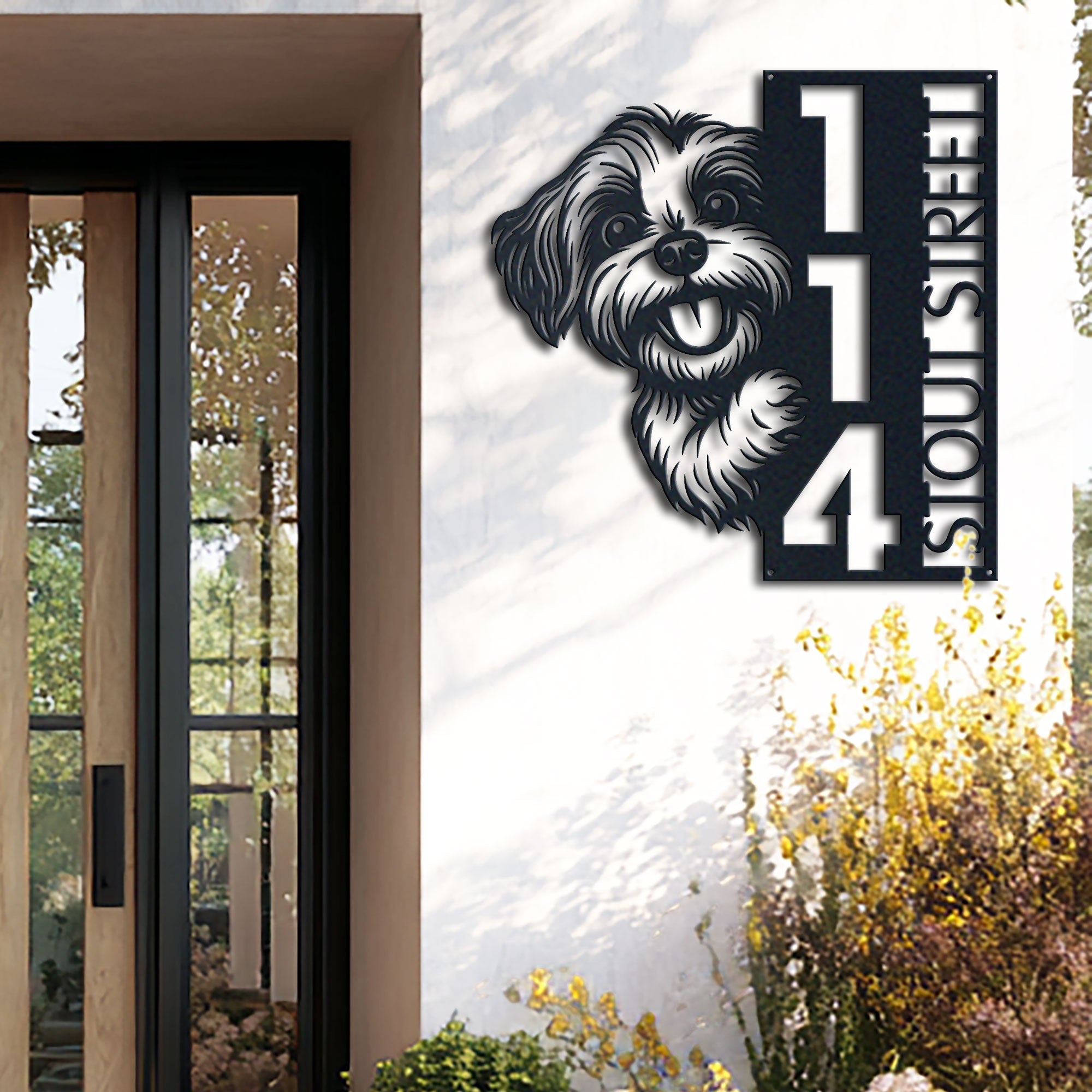 Havanese Address Sign | Custom Metal Vertical House Number Plaque | Pet Owner Gift