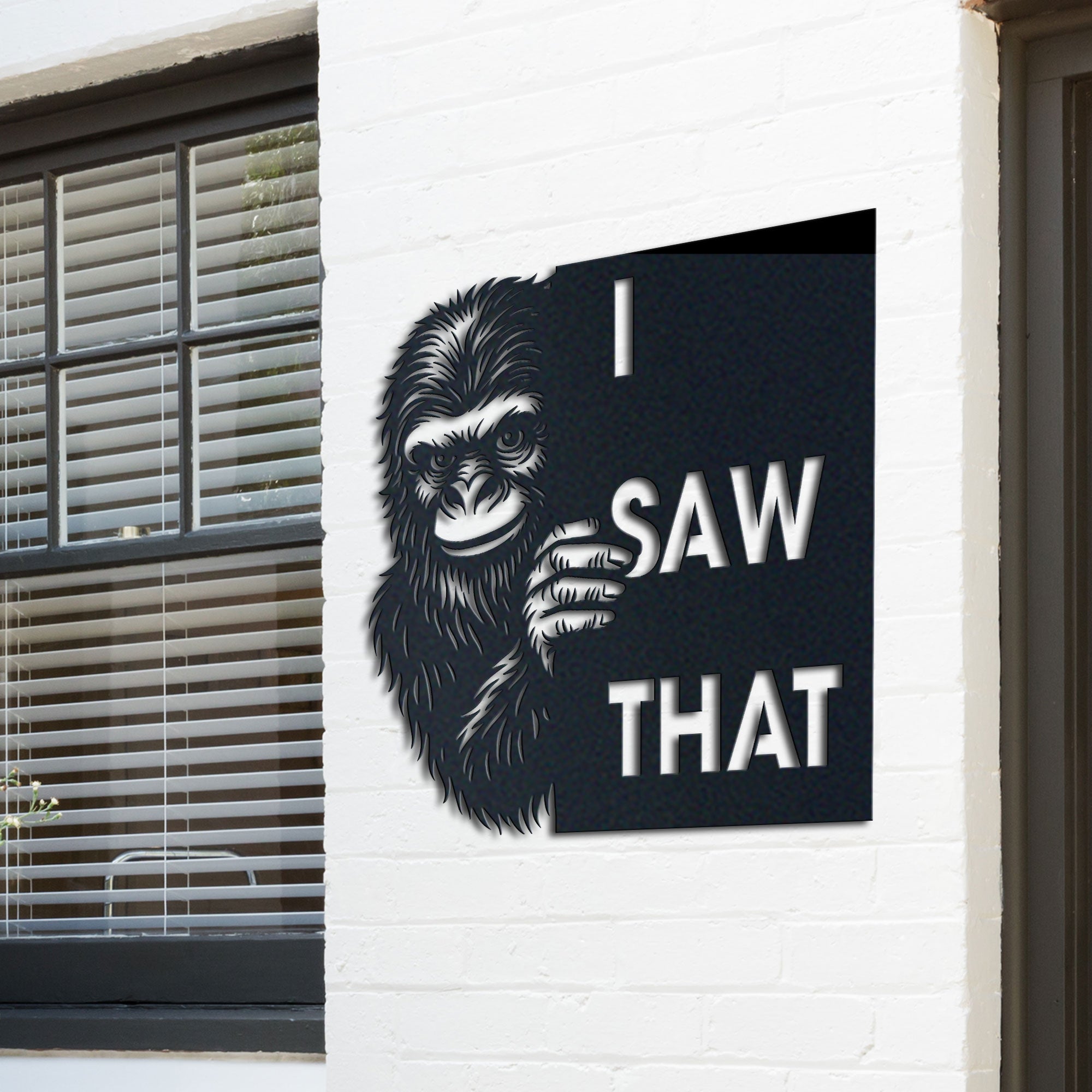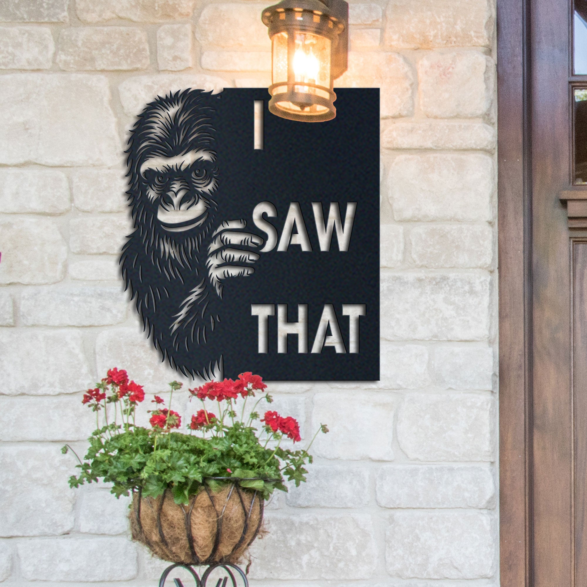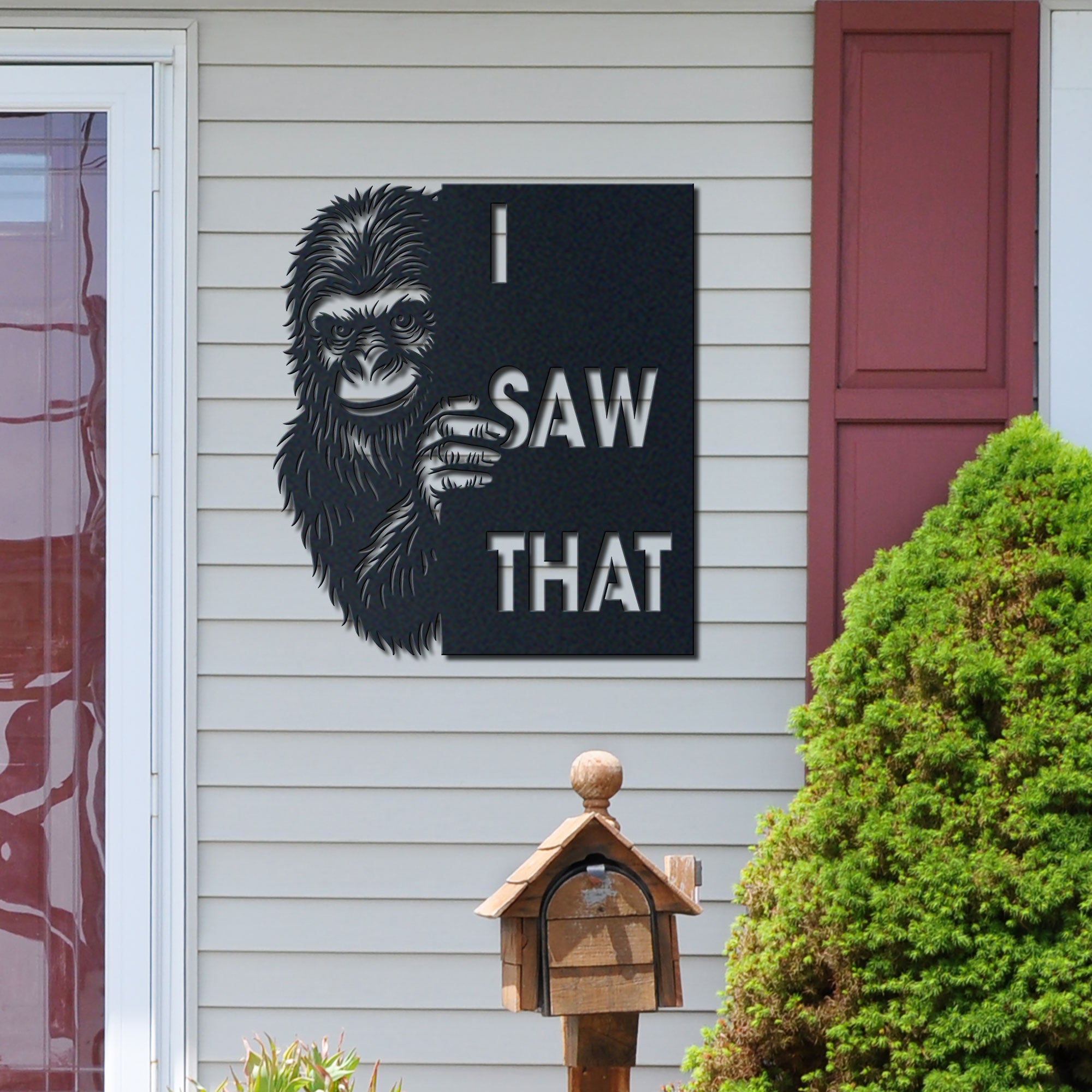 Humorous Bigfoot Sign | “I Saw That” Funny Metal Wall Art for Yard, Porch, or Garage