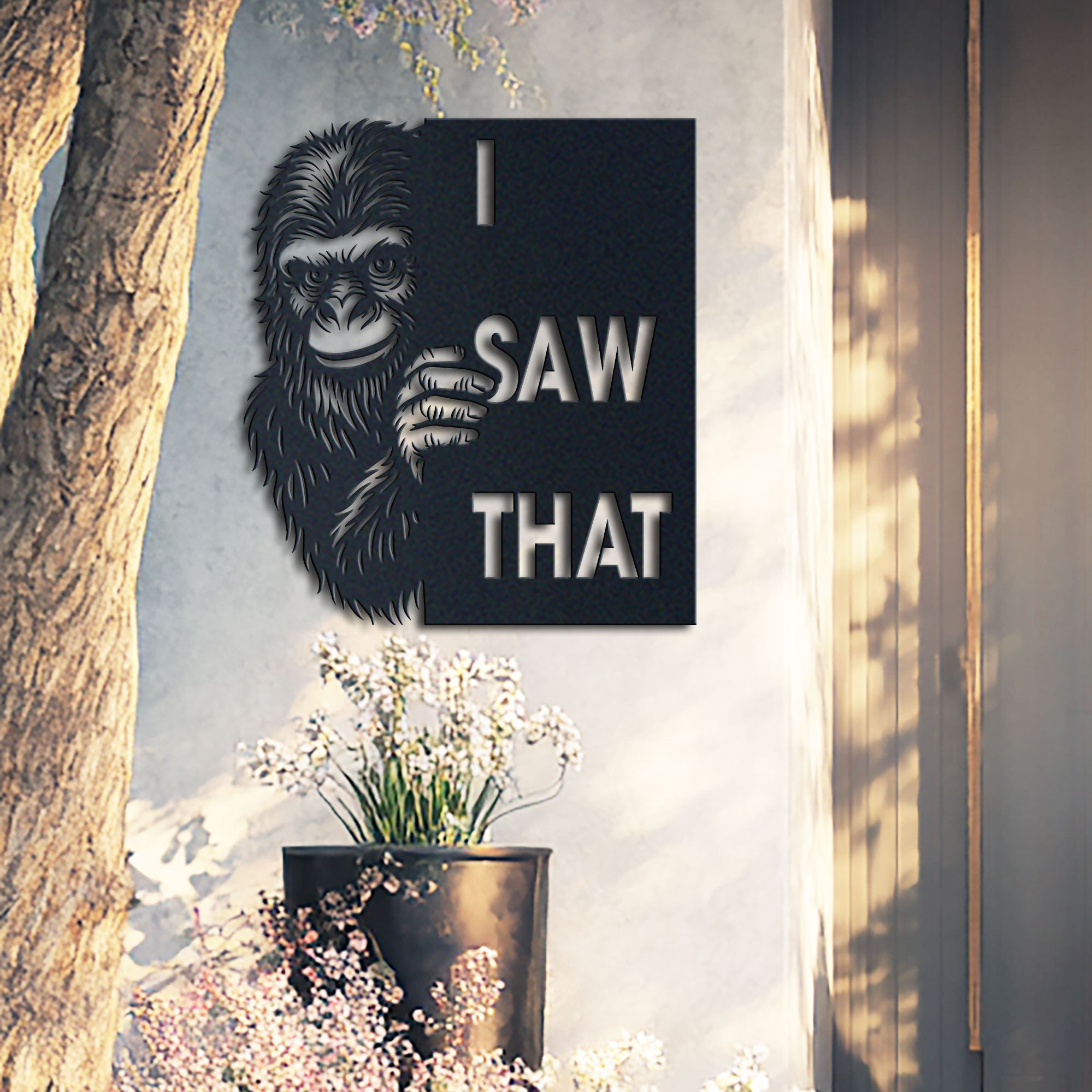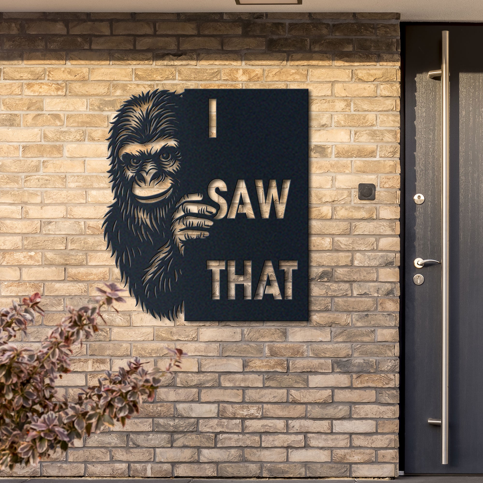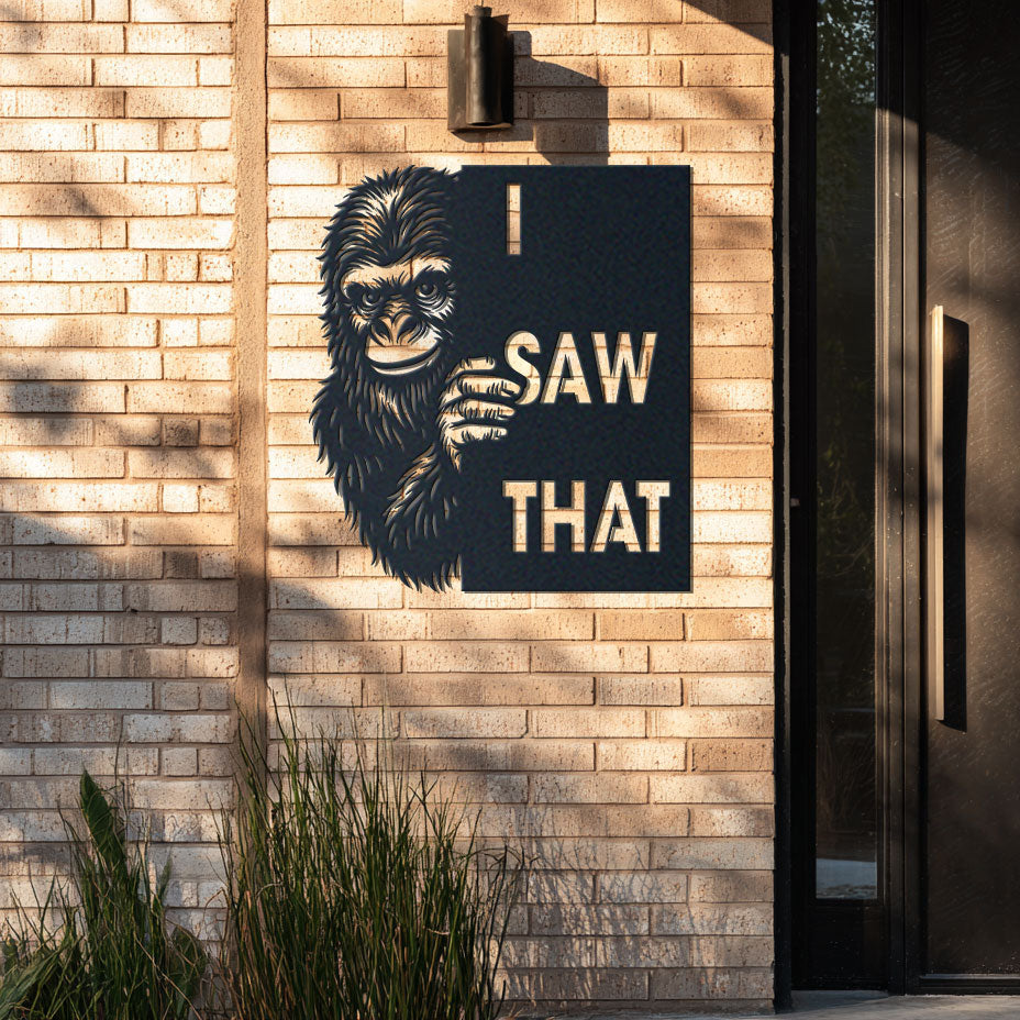 Humorous Bigfoot Sign | “I Saw That” Funny Metal Wall Art for Yard, Porch, or Garage