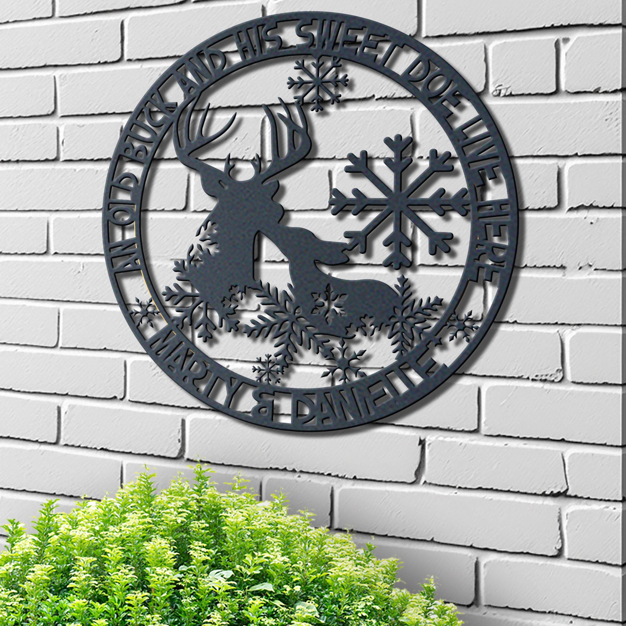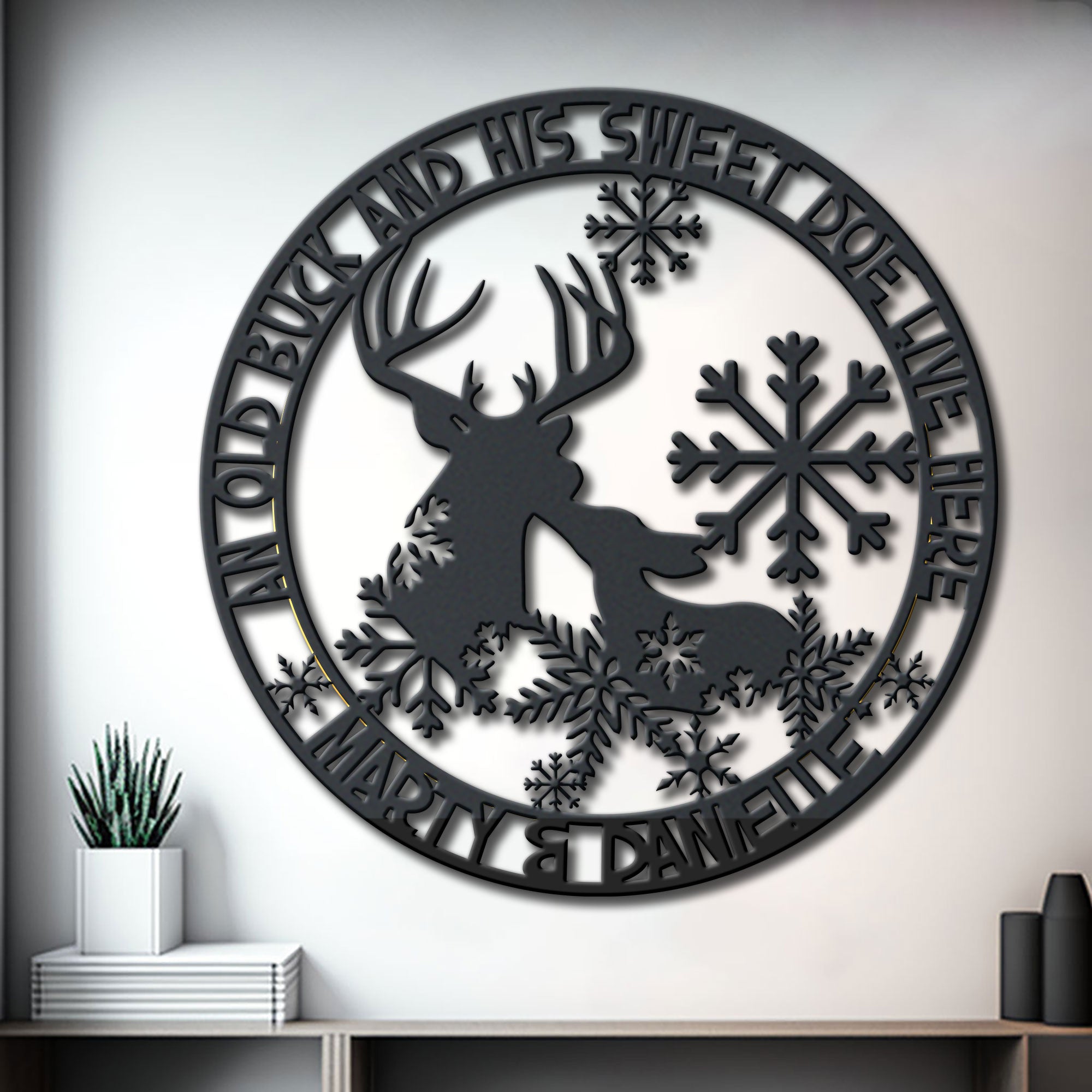 Hunting Lovers Metal Sign The Old Buck And His Sweet Doe Live Here Personalized 1