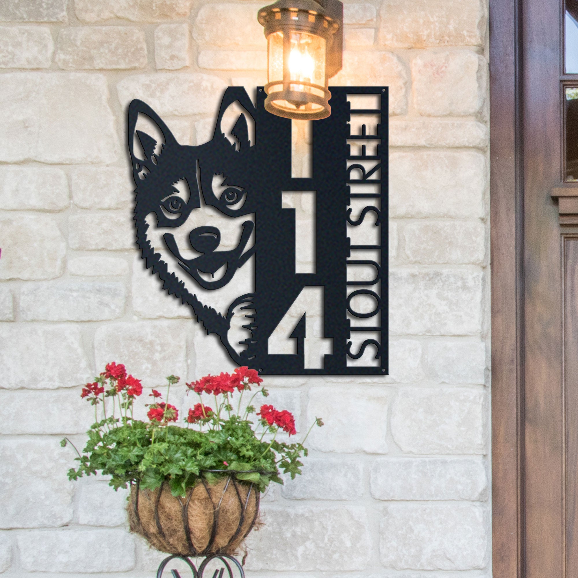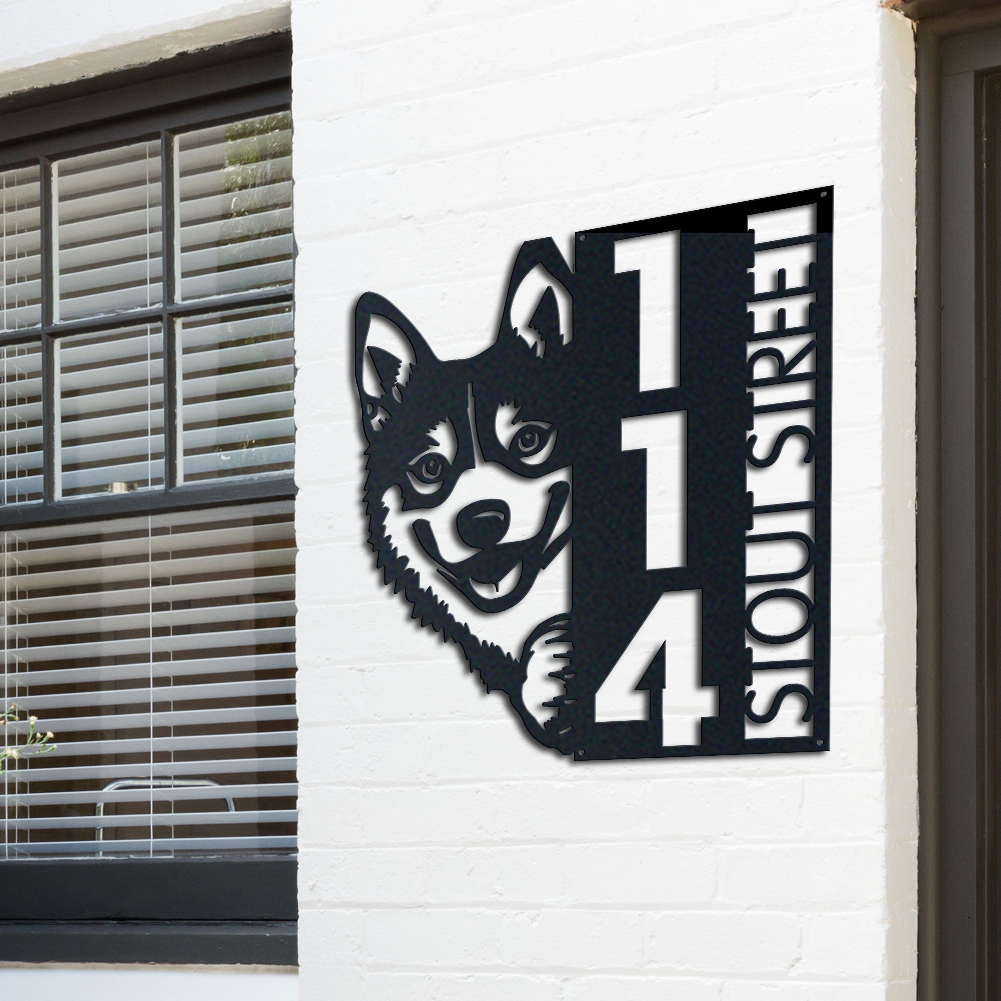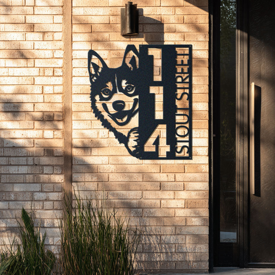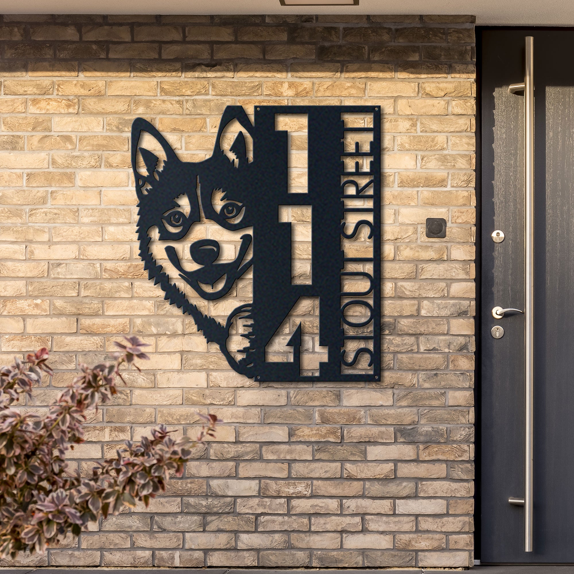 Husky Address Sign | Custom Metal Vertical House Number Plaque | Pet Owner Gift