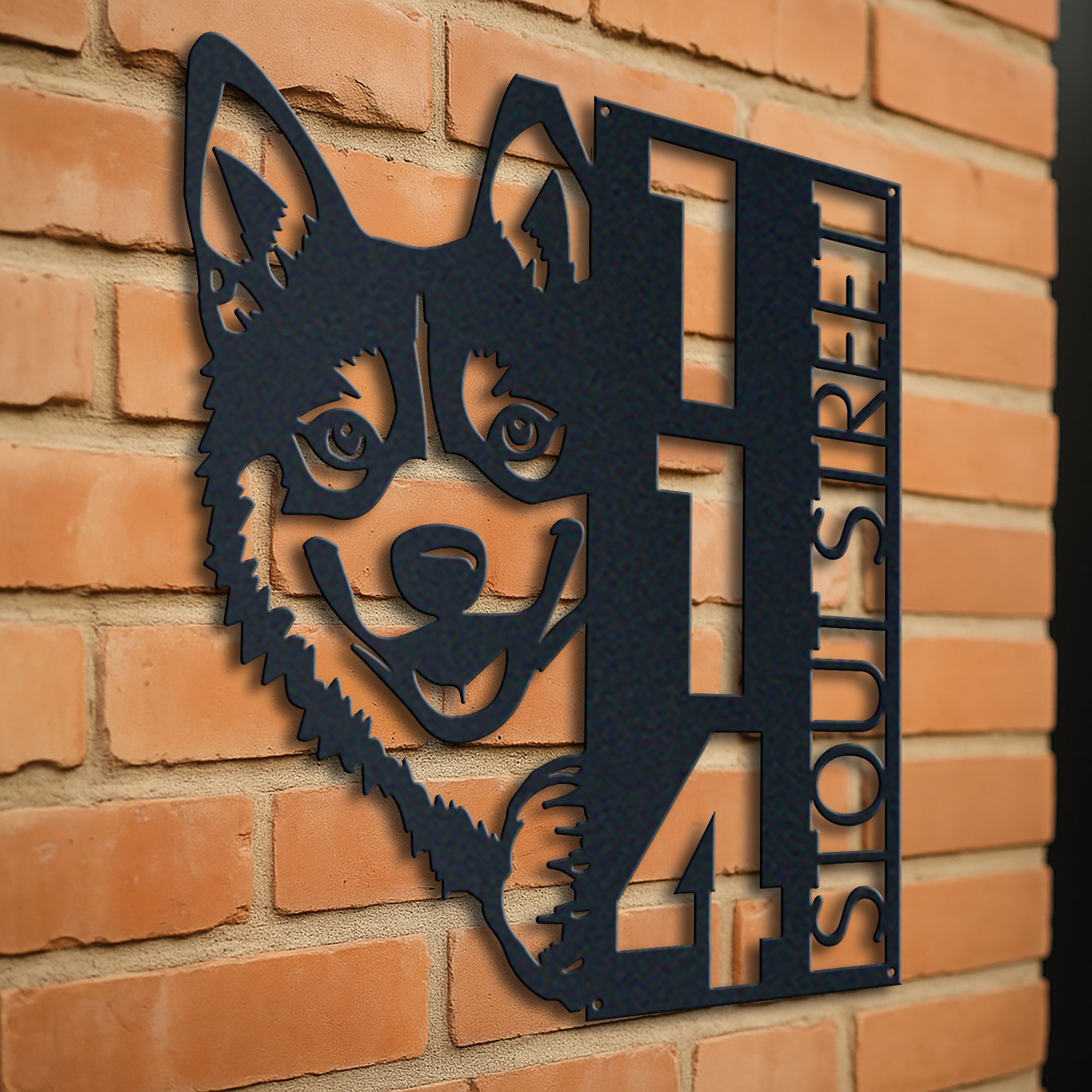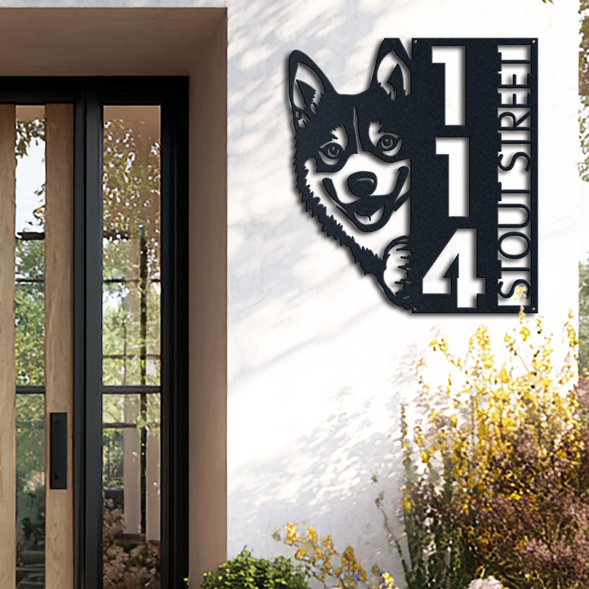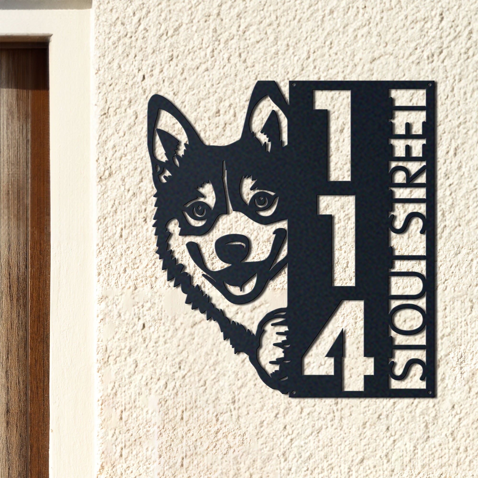 Husky Address Sign | Custom Metal Vertical House Number Plaque | Pet Owner Gift