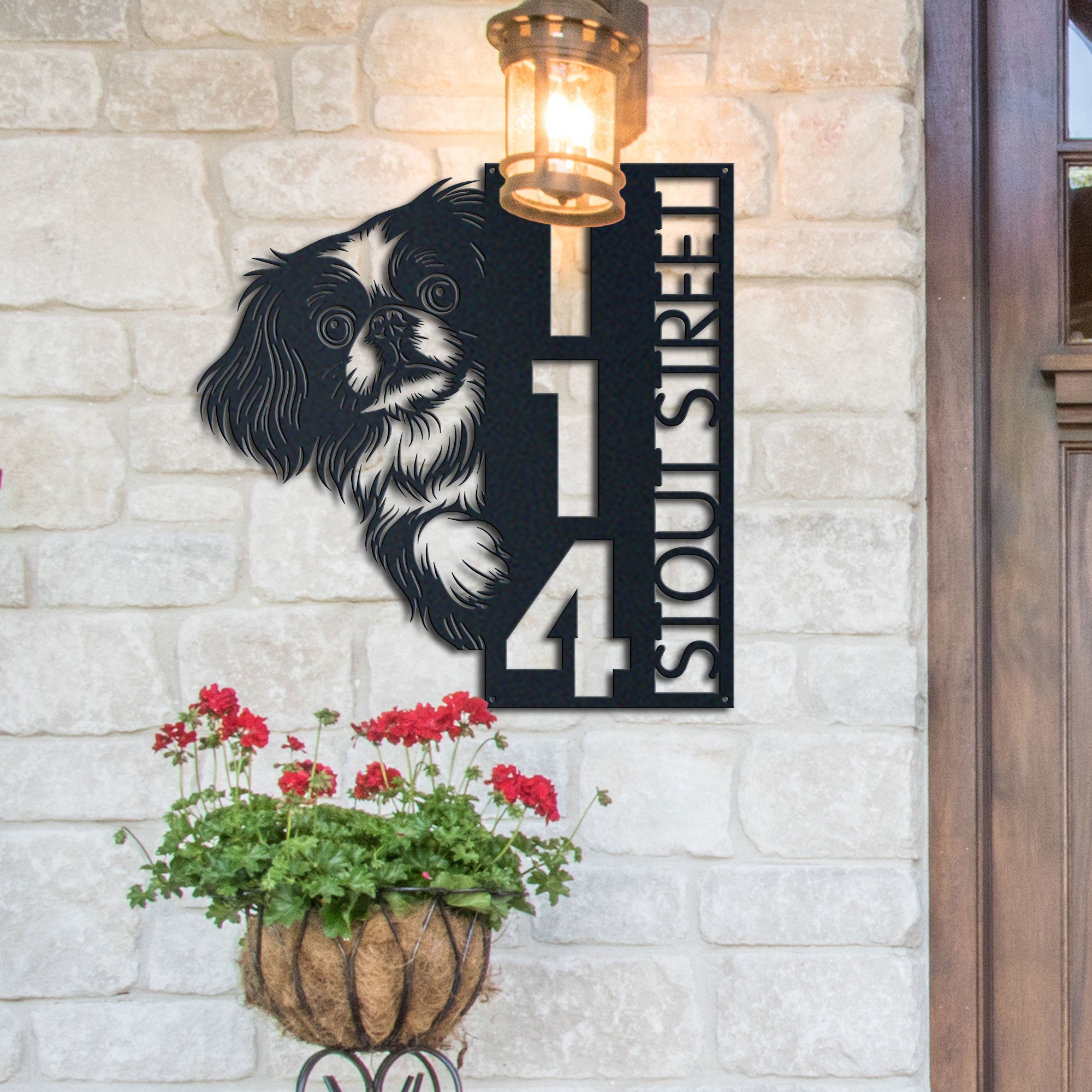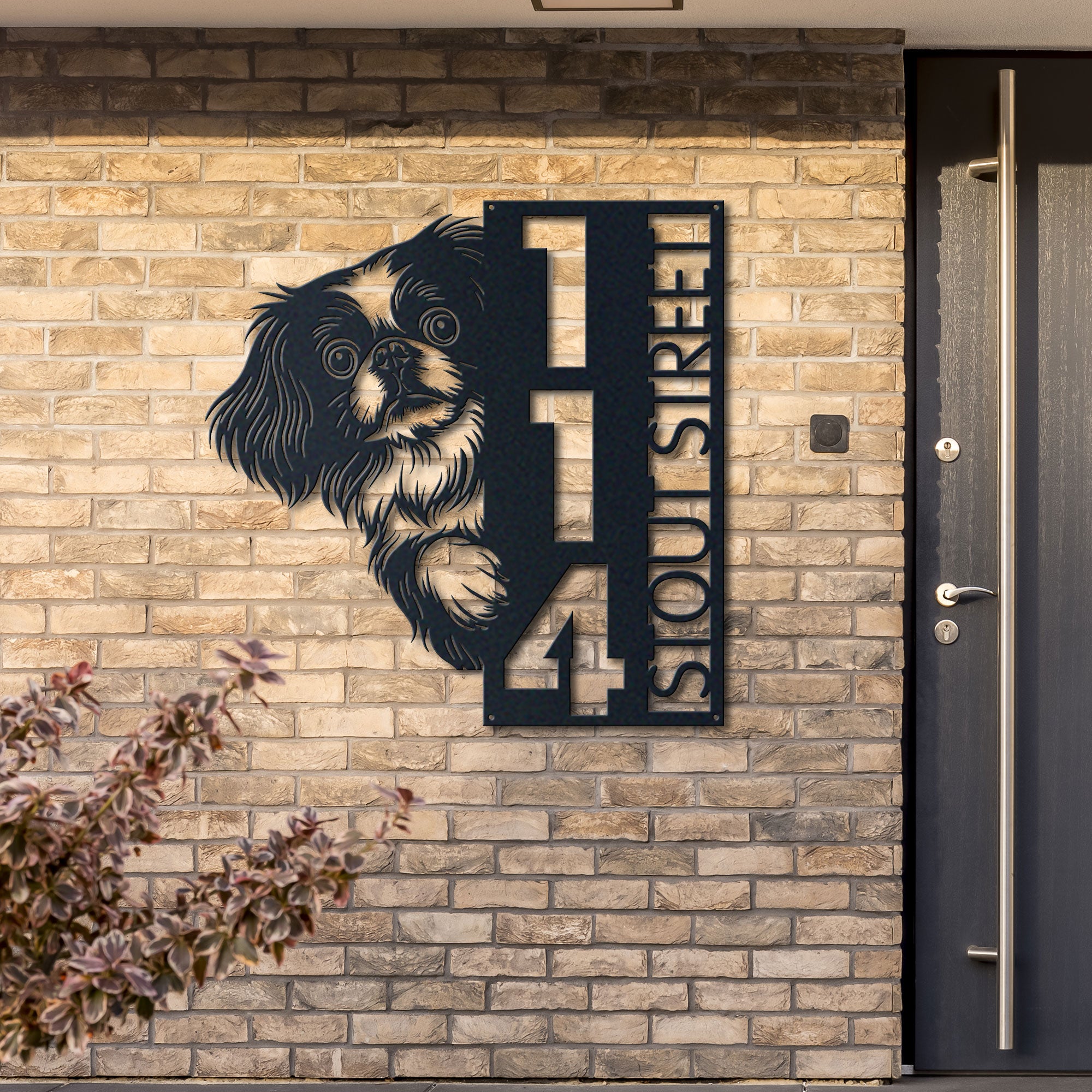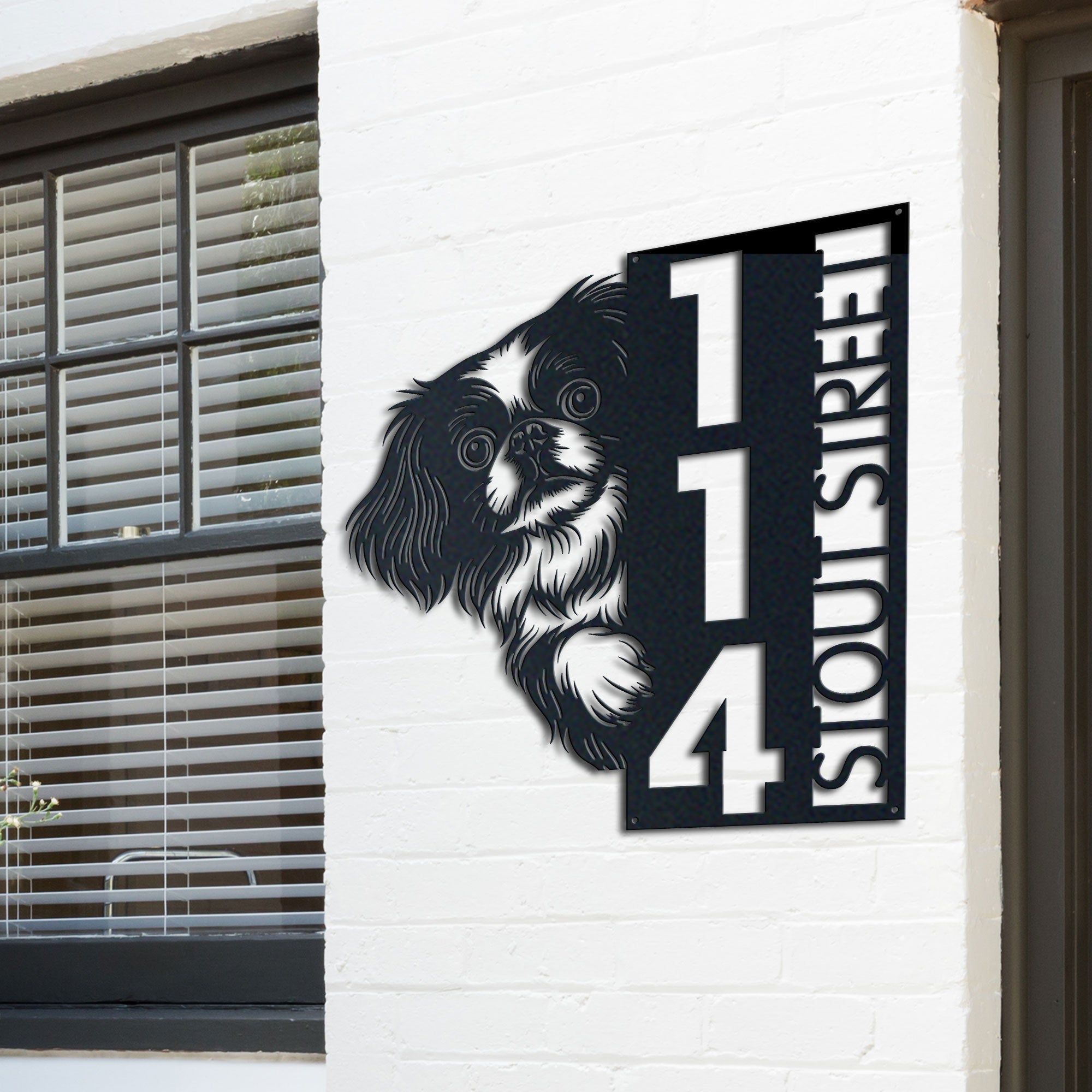 Japanese Chin 2Address Sign | Custom Metal Vertical House Number Plaque | Pet Owner Gift