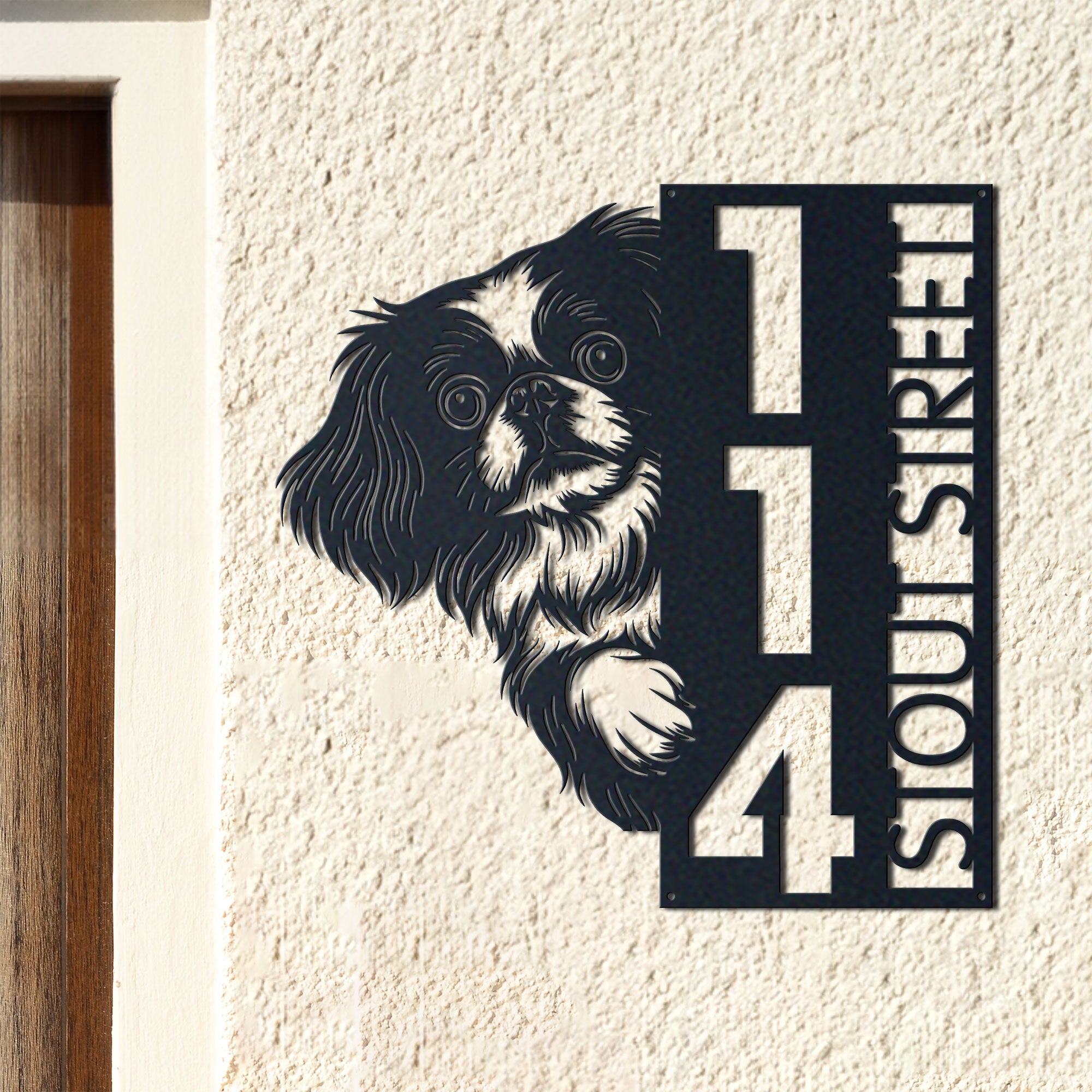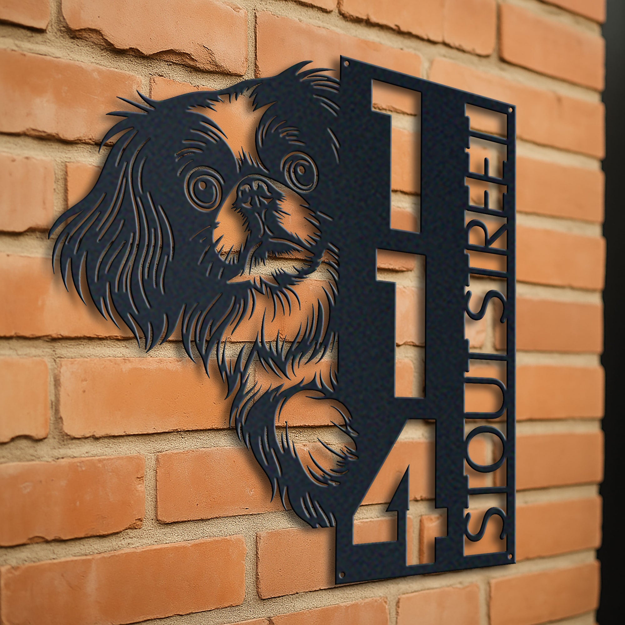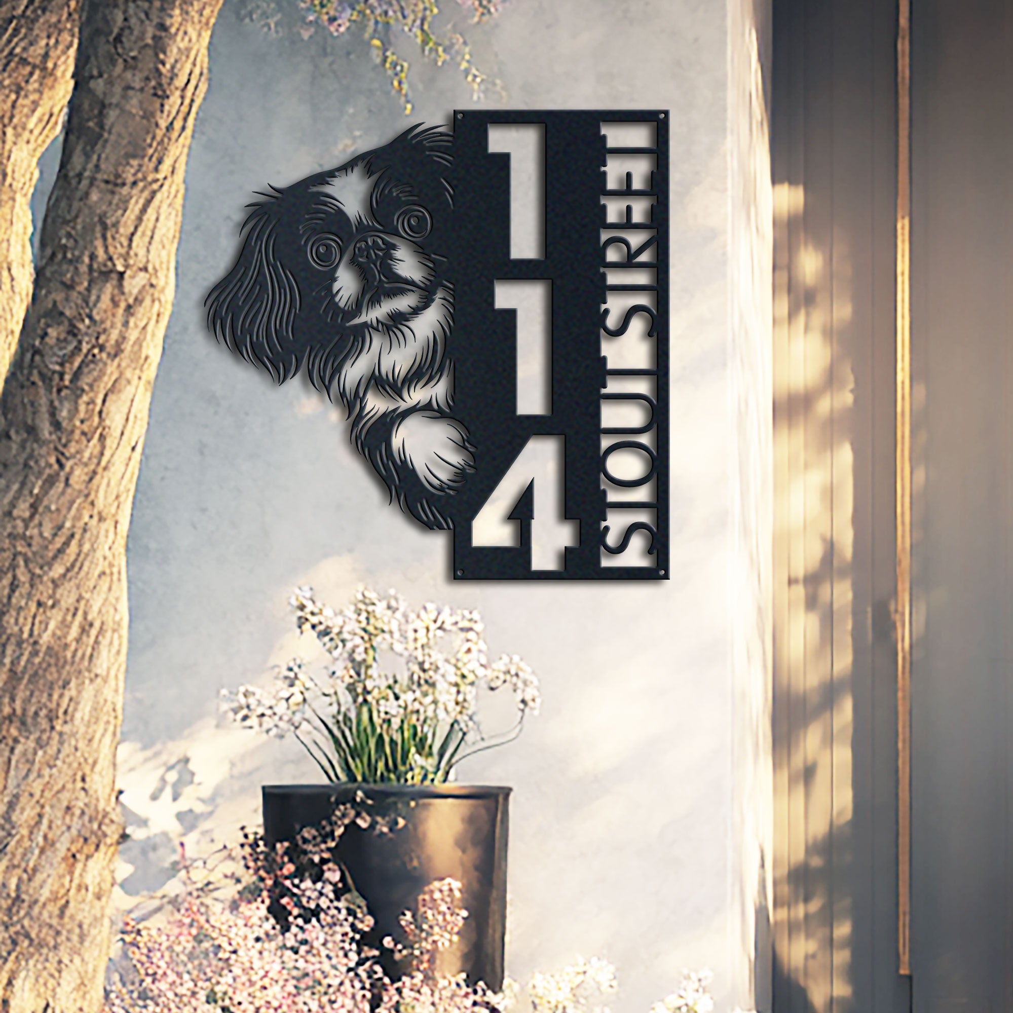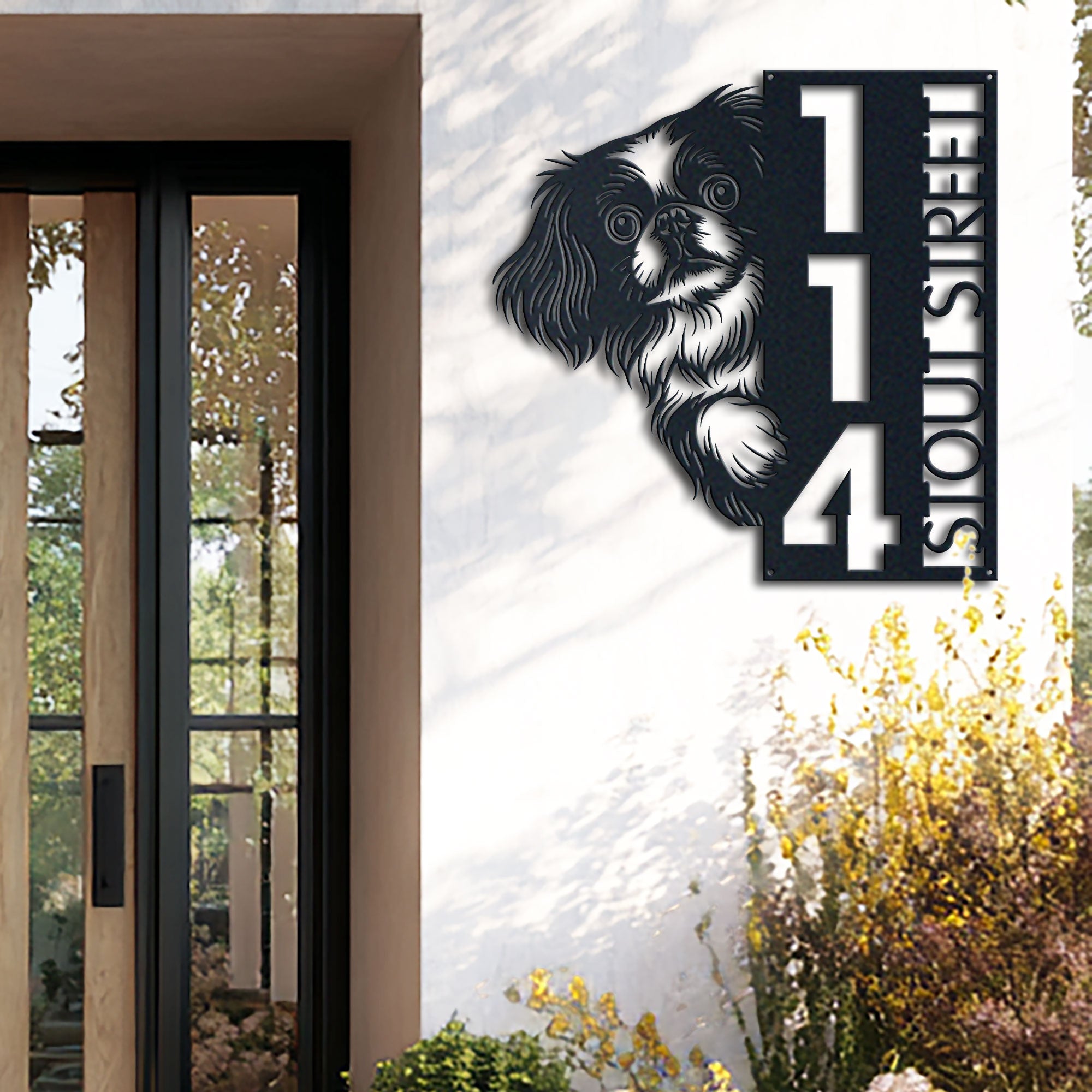 Japanese Chin 2Address Sign | Custom Metal Vertical House Number Plaque | Pet Owner Gift