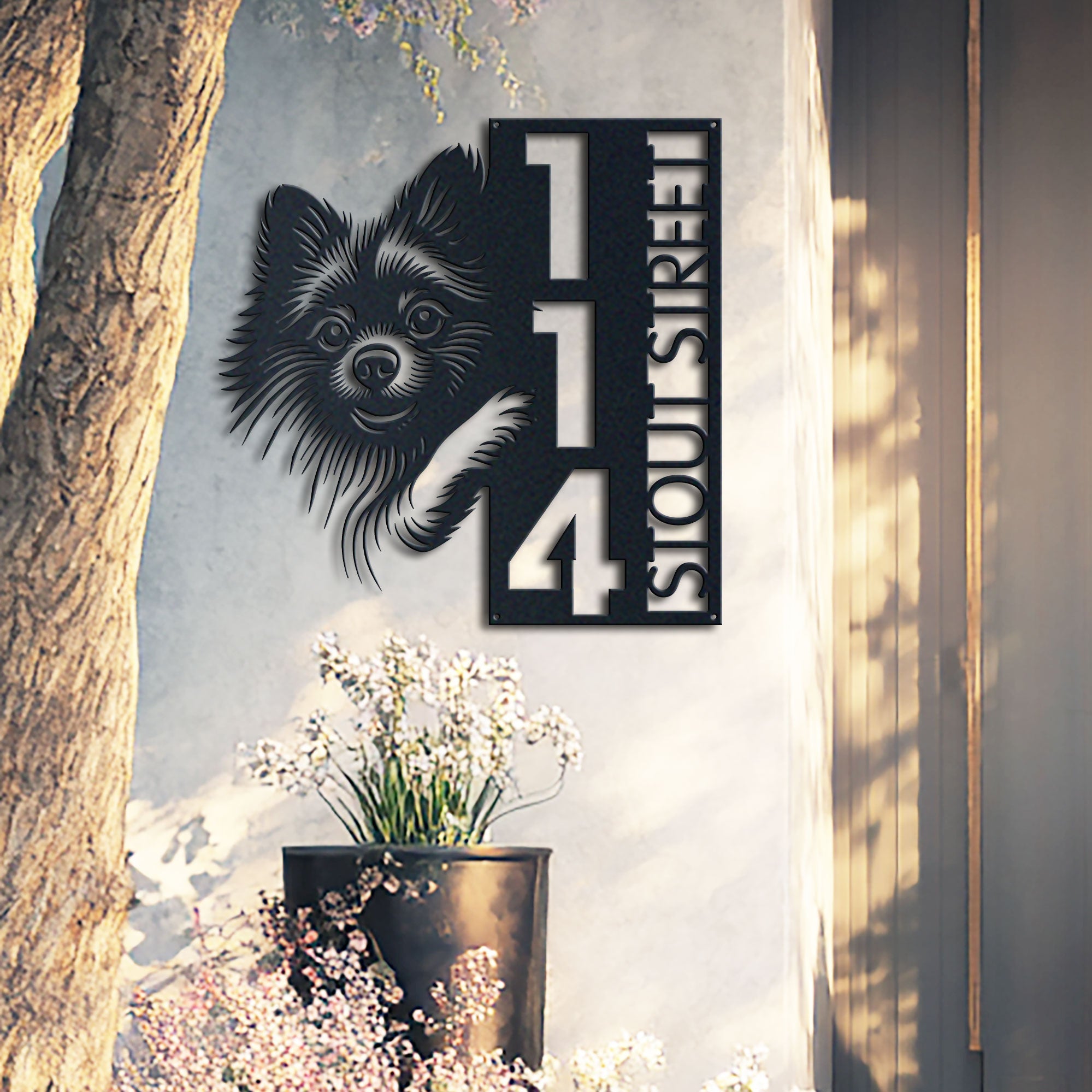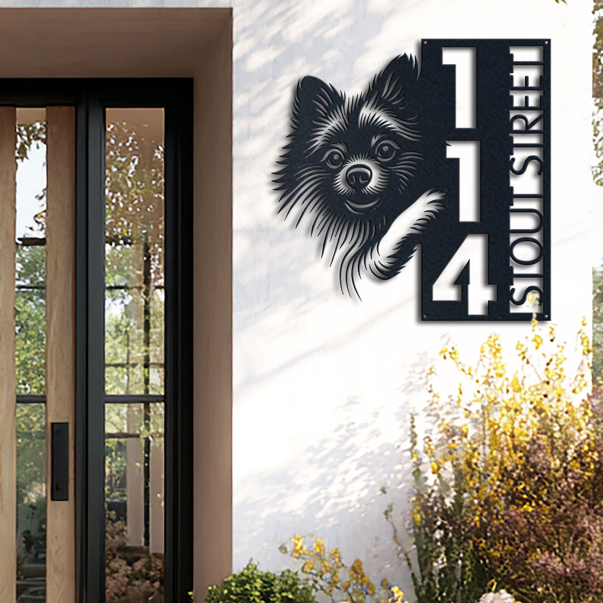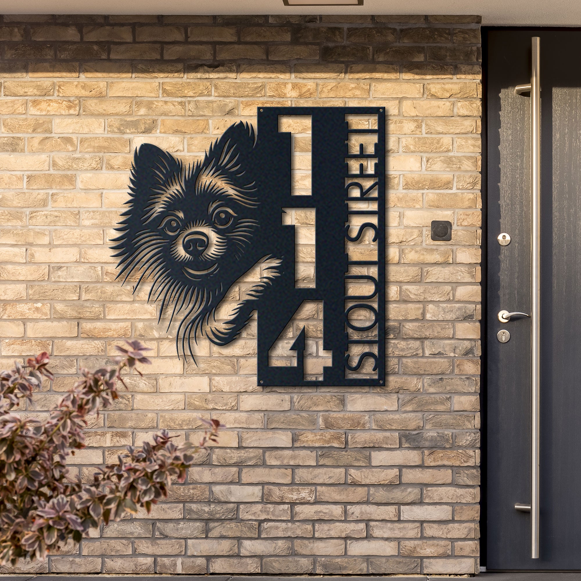 Keeshond Address Sign | Custom Metal Vertical House Number Plaque | Pet Owner Gift