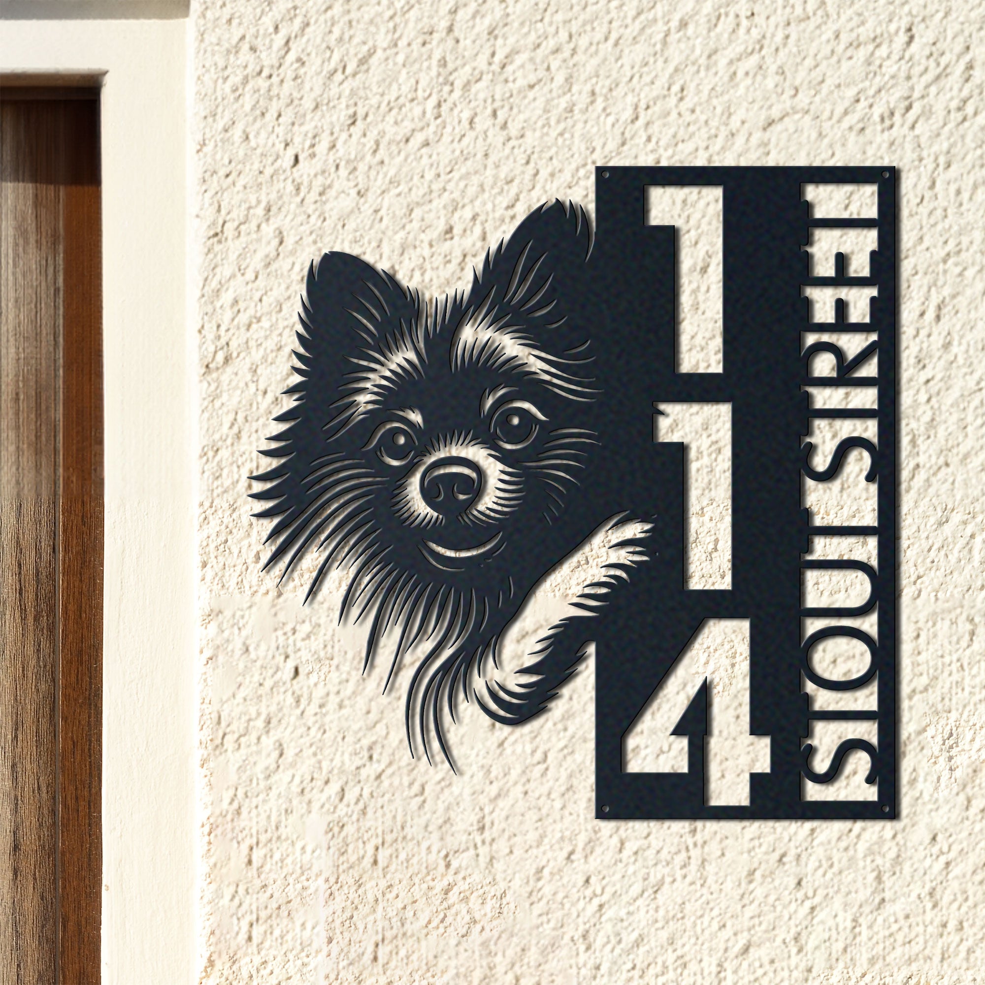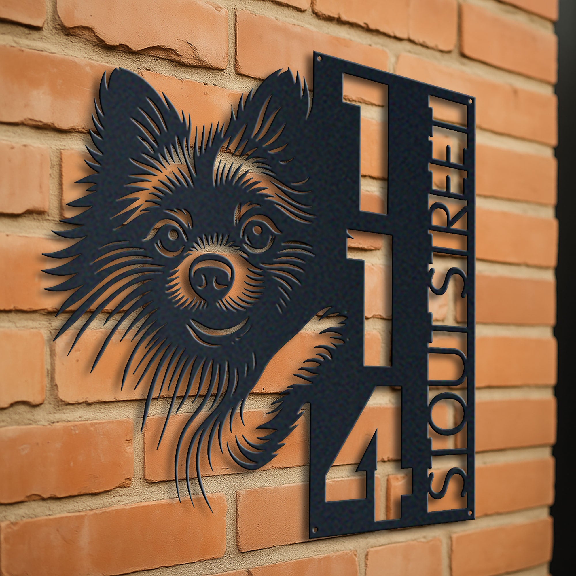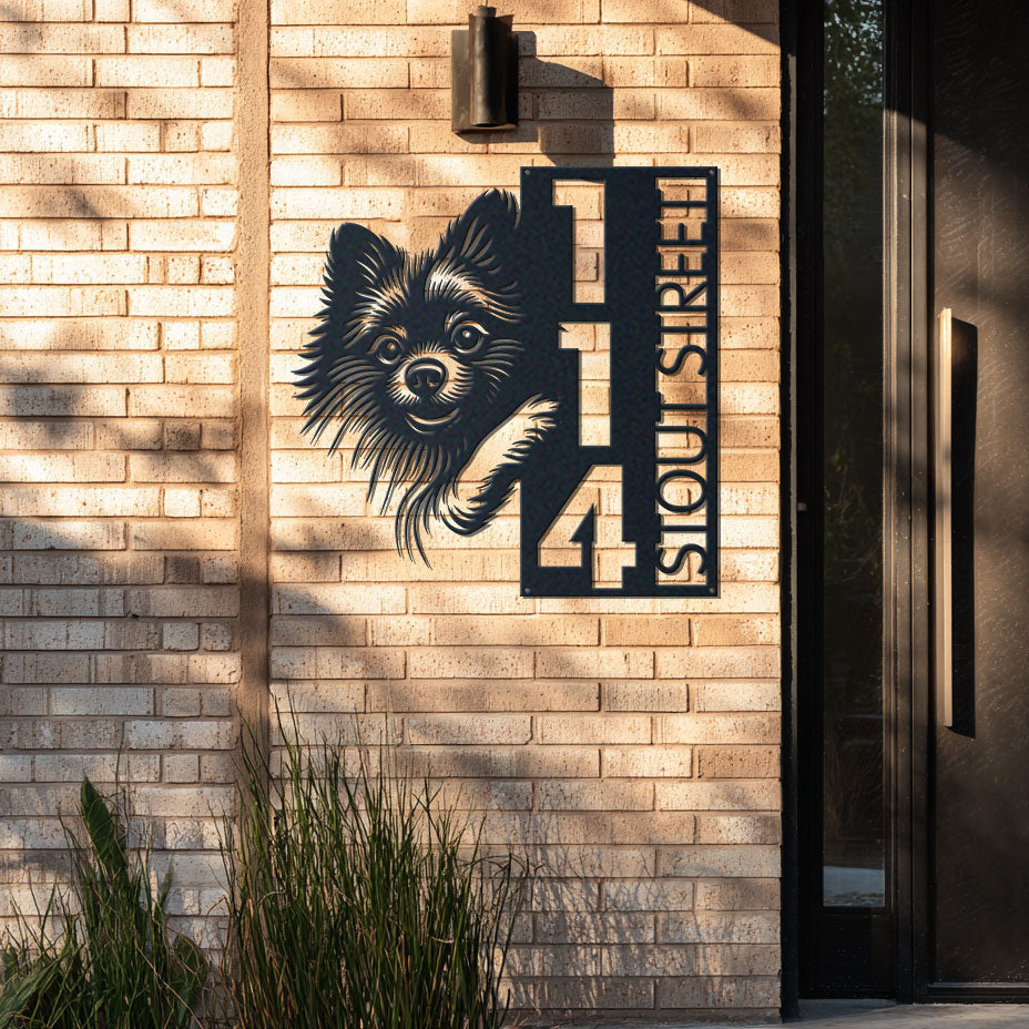 Keeshond Address Sign | Custom Metal Vertical House Number Plaque | Pet Owner Gift