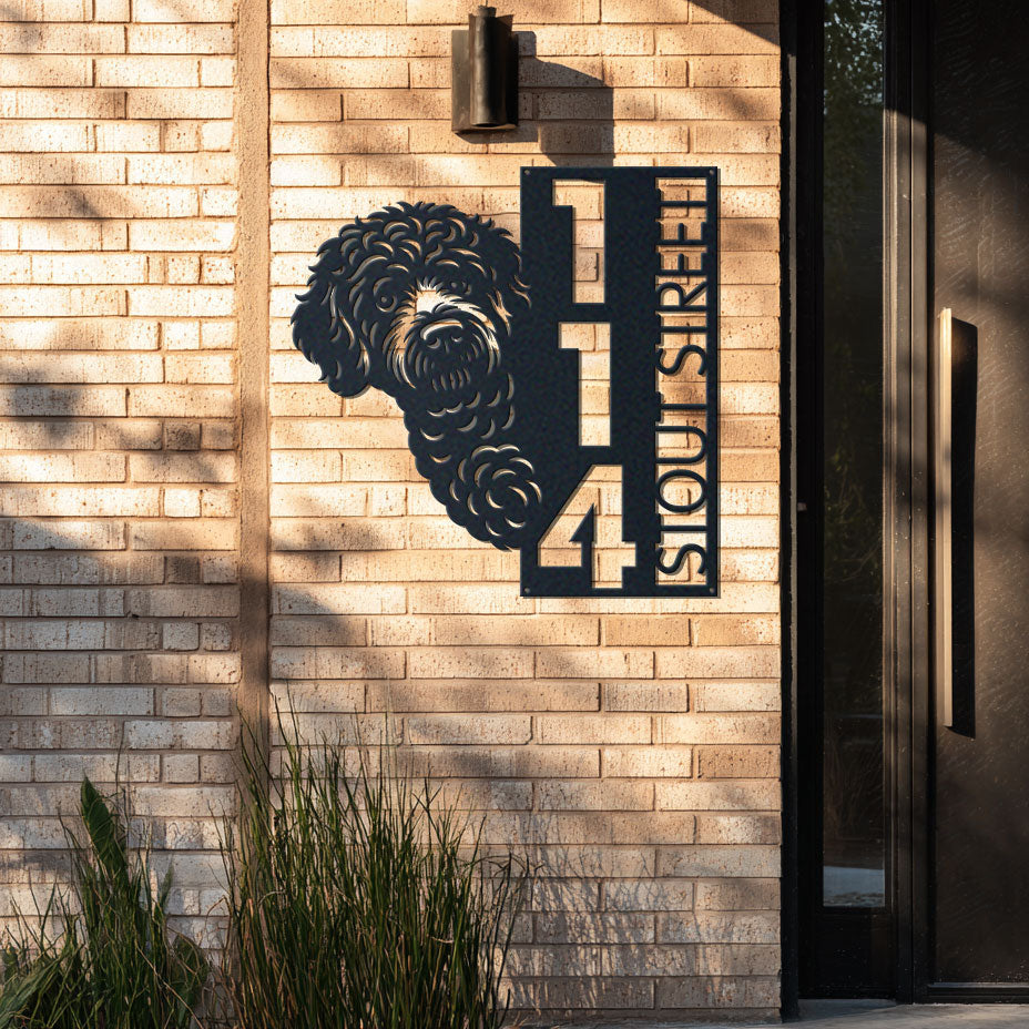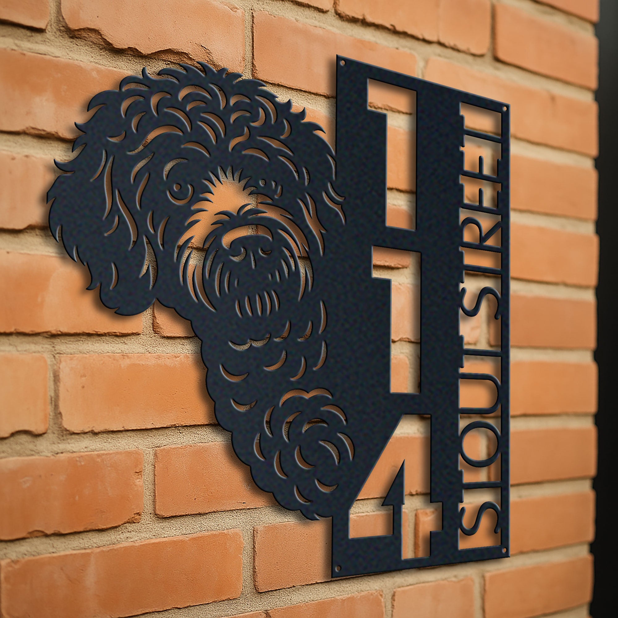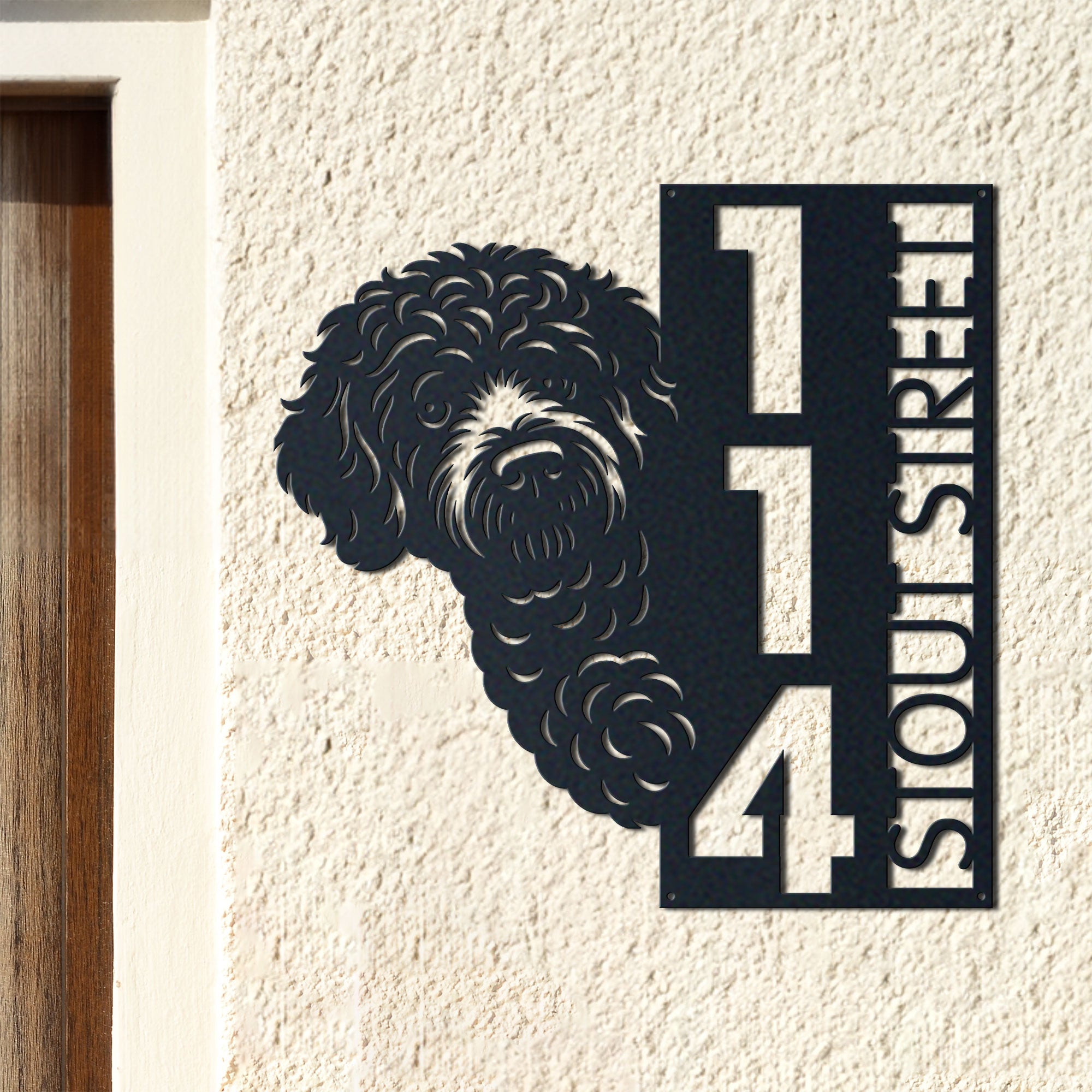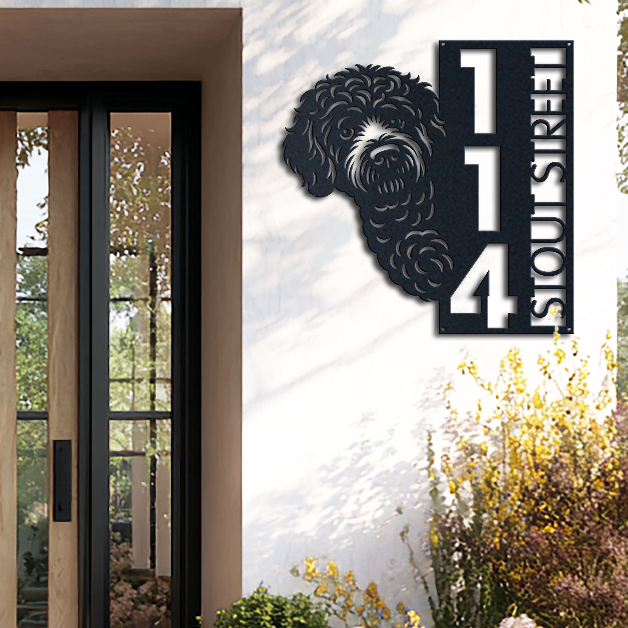Lagotto Romagnolo Address Sign | Custom Metal Vertical House Number Plaque | Pet Owner Gift
