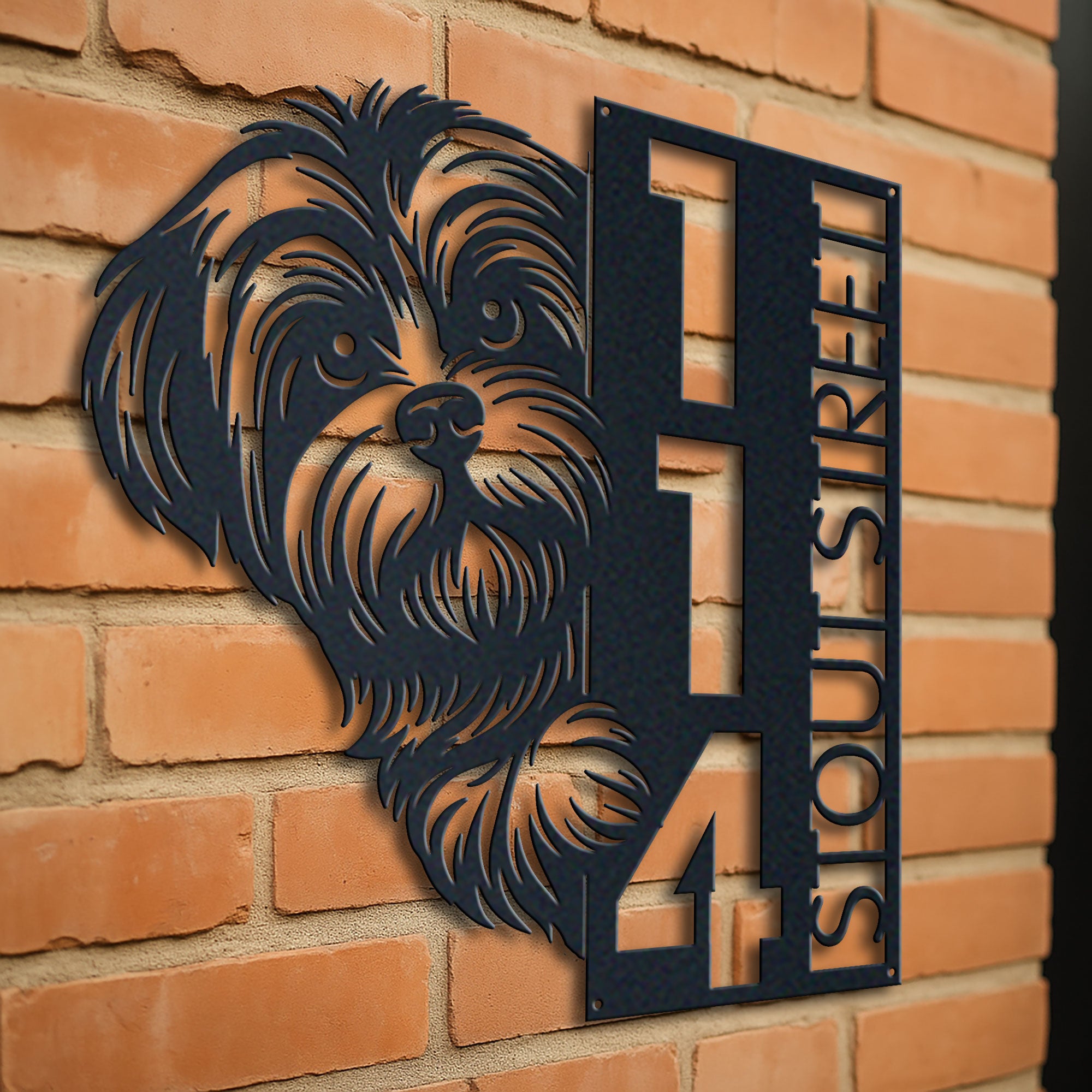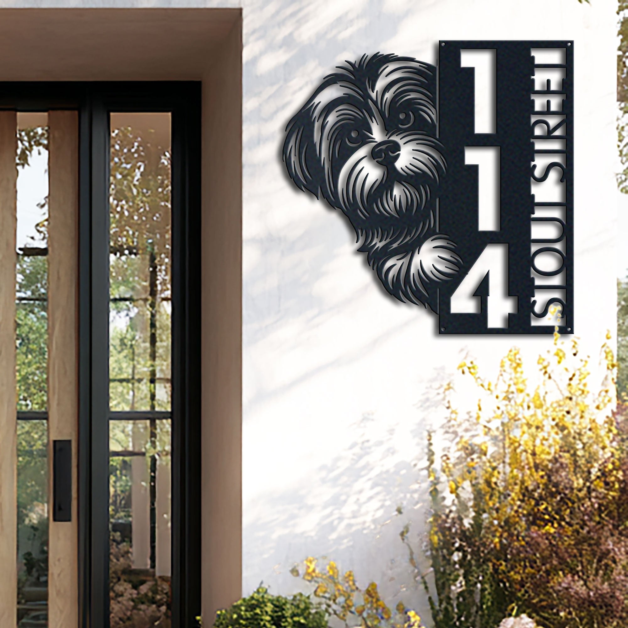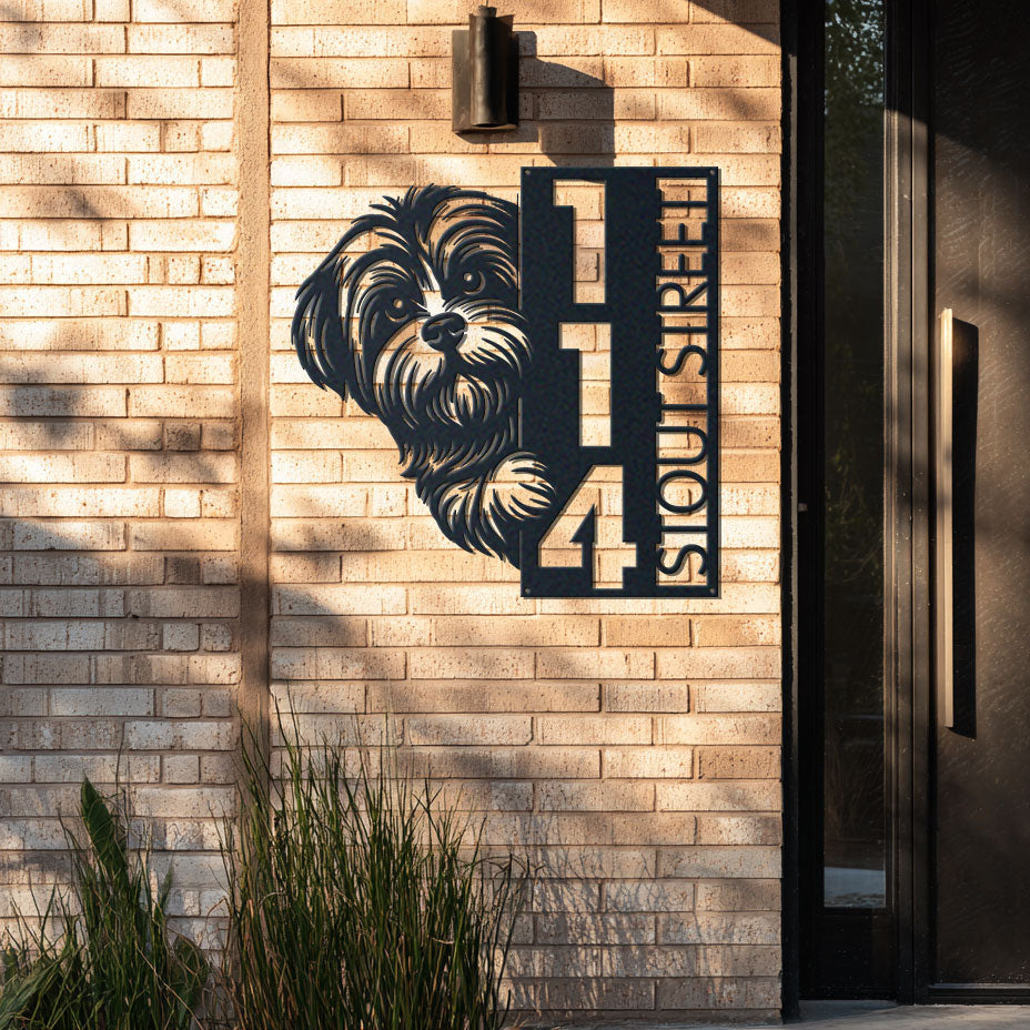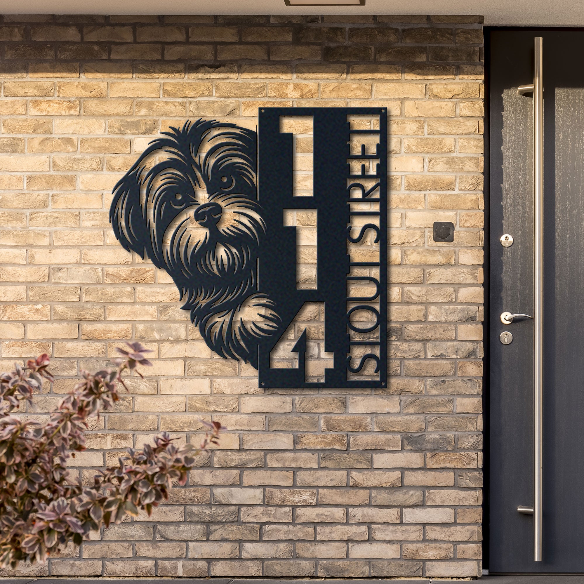 Lhasa Apso Address Sign | Custom Metal Vertical House Number Plaque | Pet Owner Gift