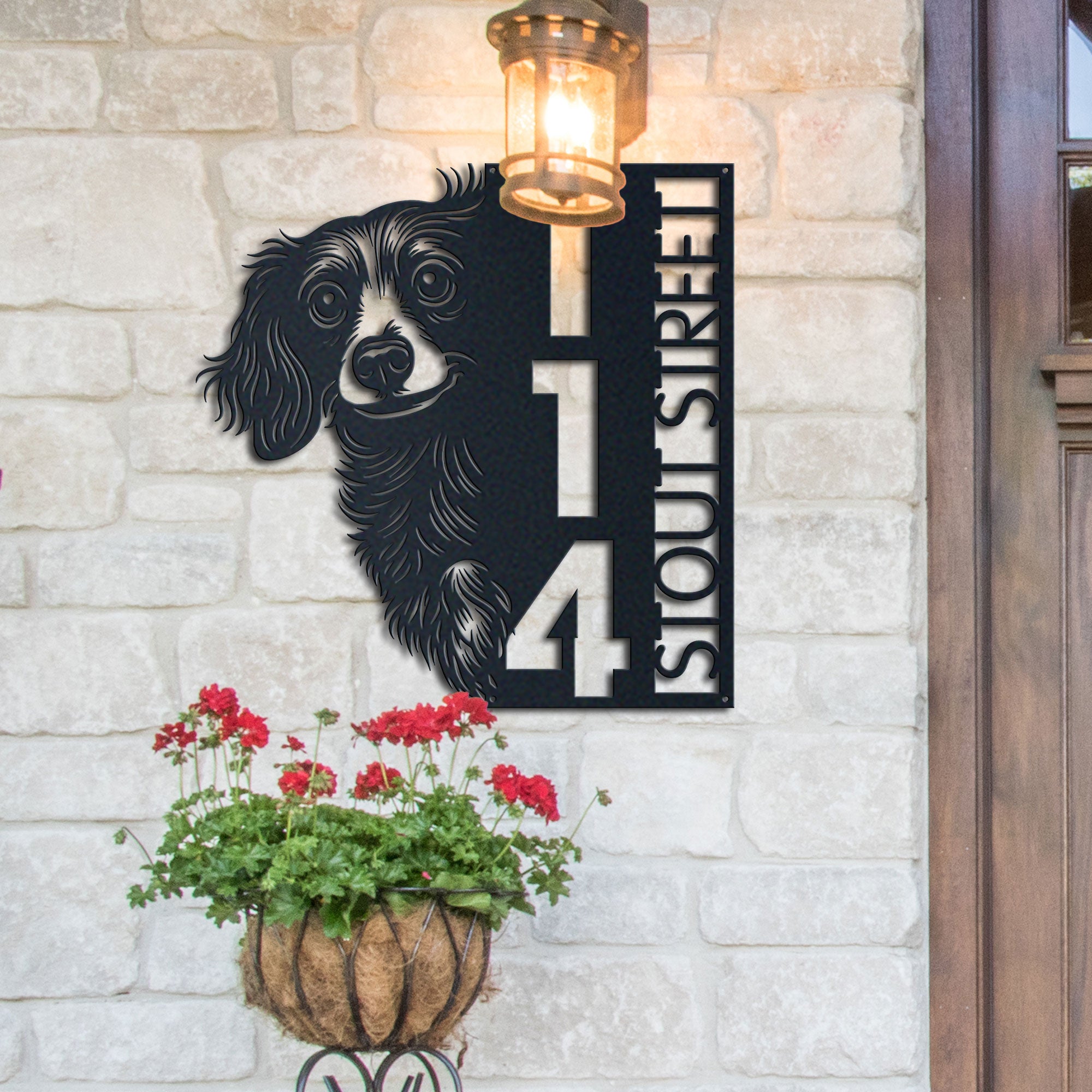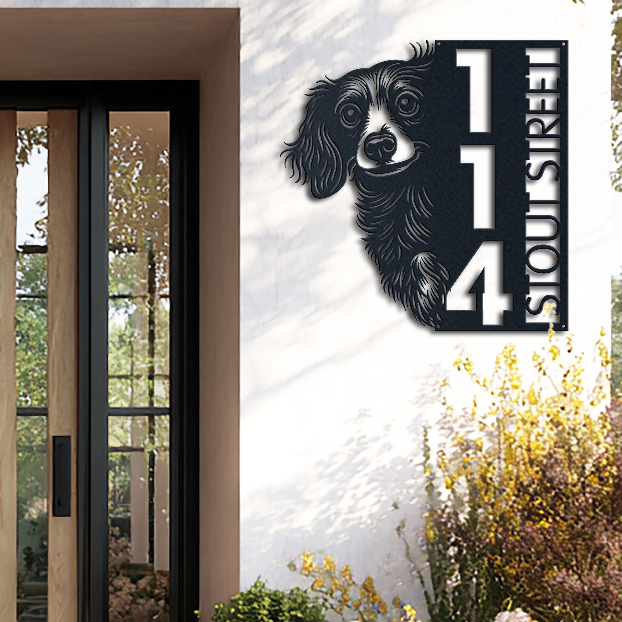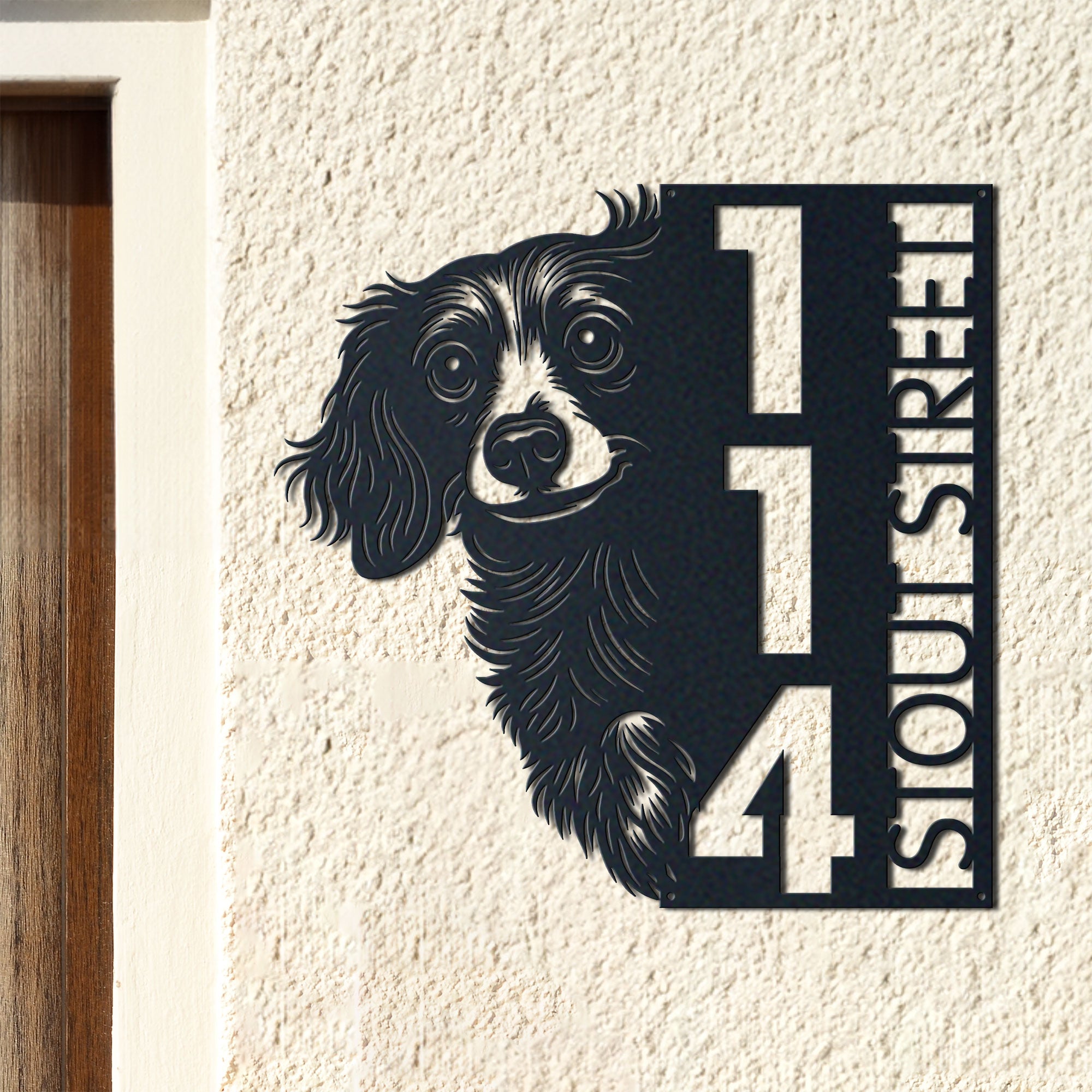 Dachshund Long Haired Address Sign | Custom Metal Vertical House Number Plaque | Pet Owner Gift 2
