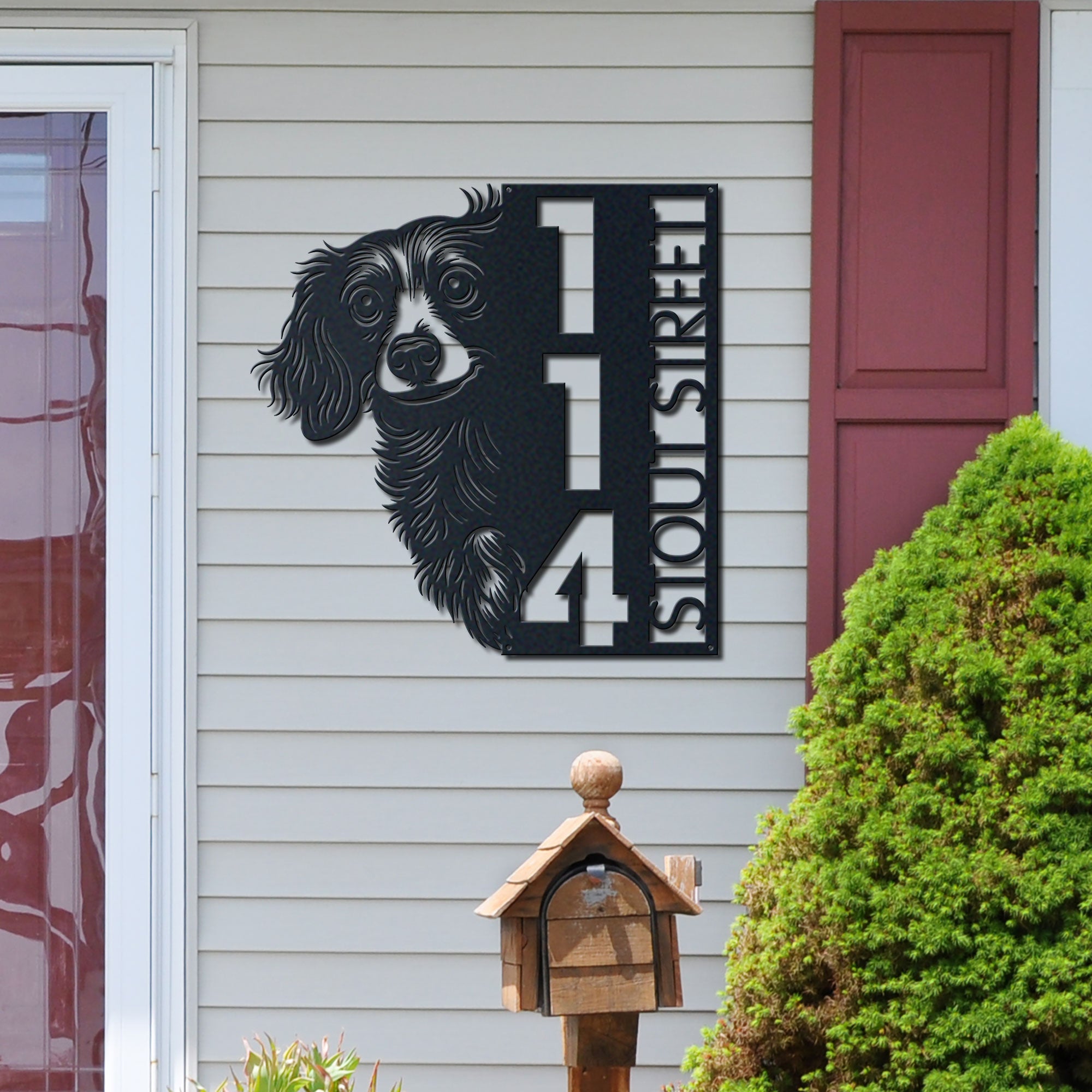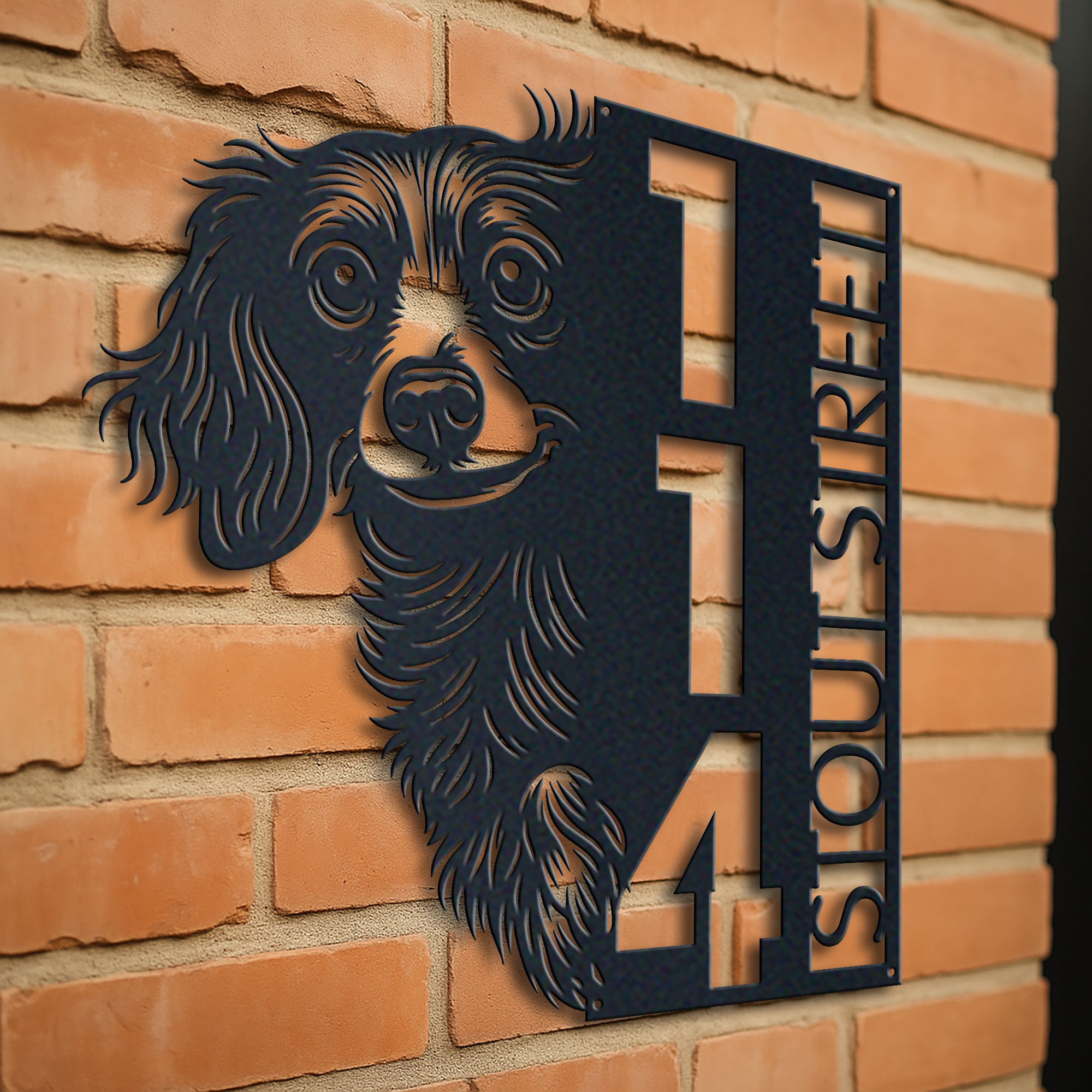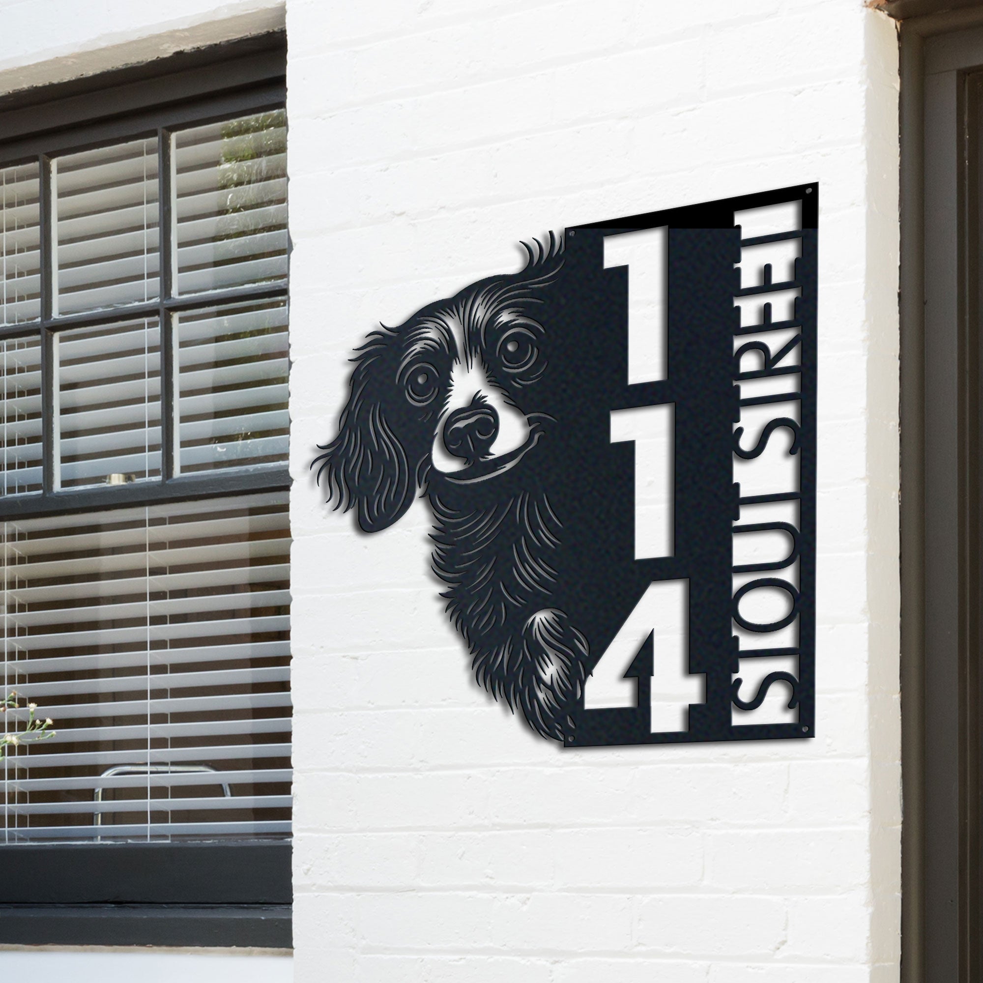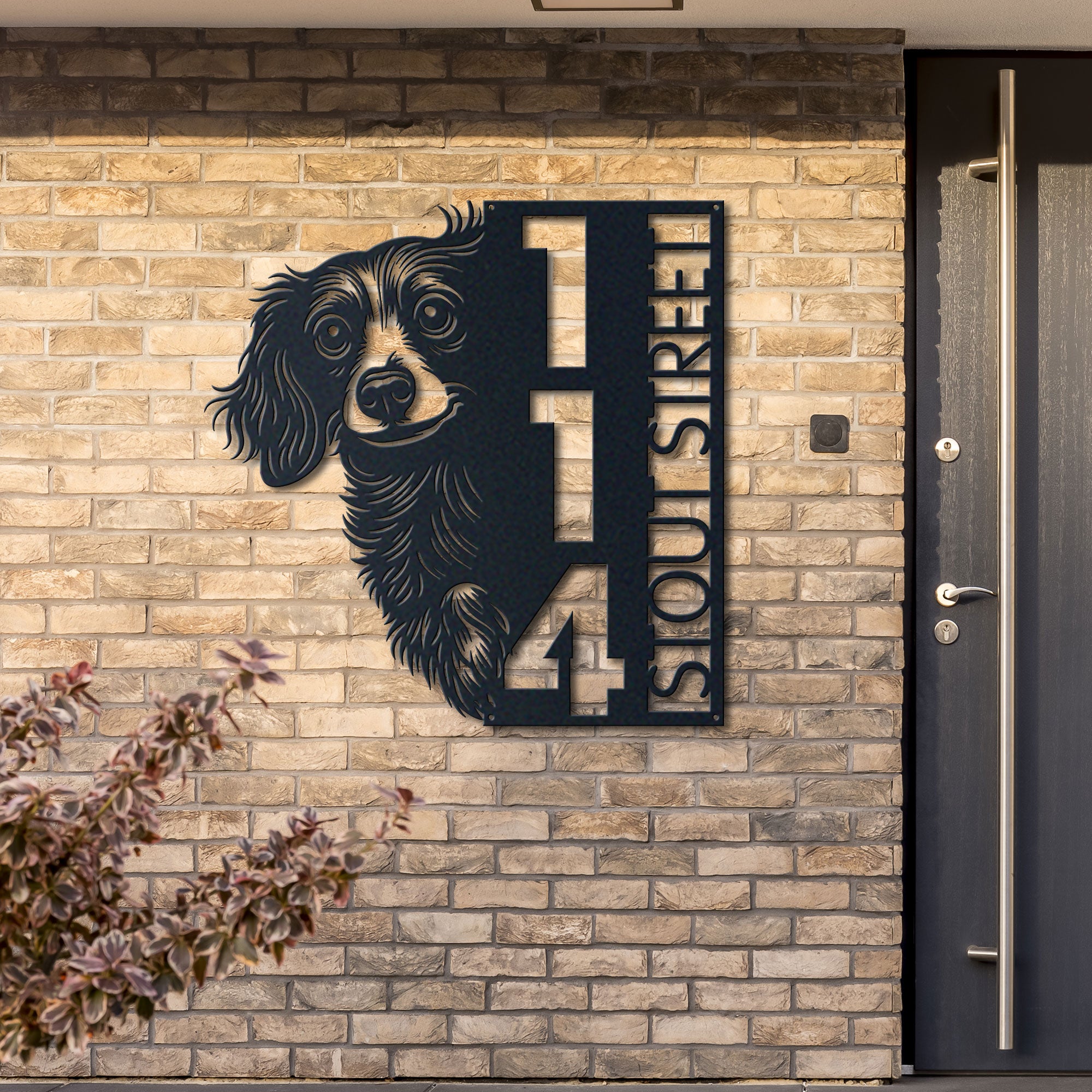 Dachshund Long Haired Address Sign | Custom Metal Vertical House Number Plaque | Pet Owner Gift 2